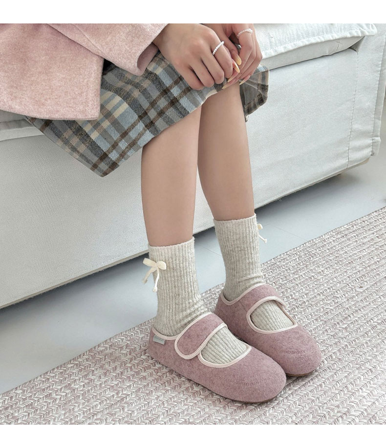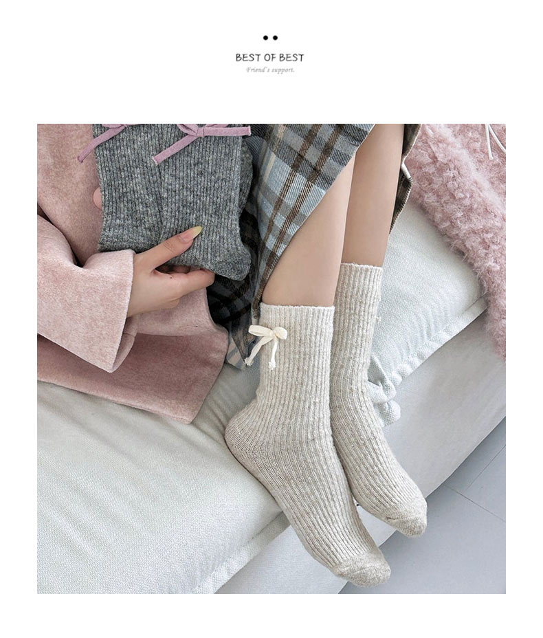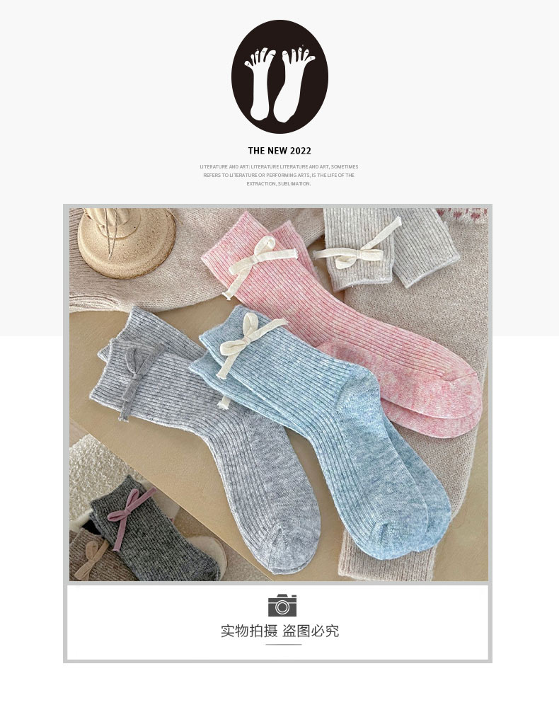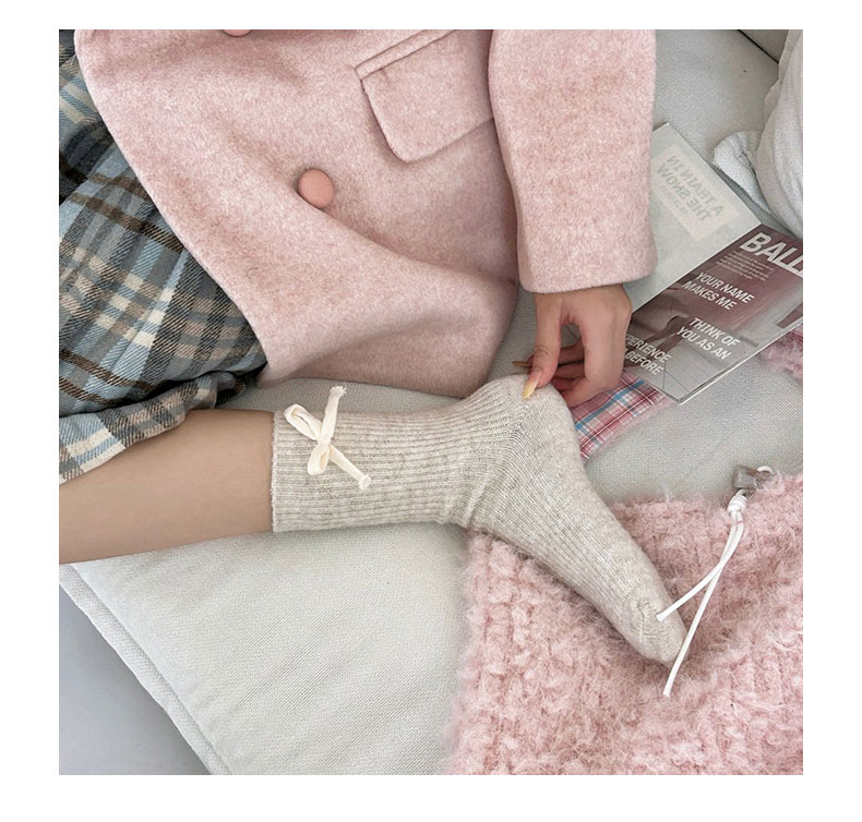 甜美蝴蝶结羊毛绒绒暖阳中筒女袜袜子-纪念日百货门店同款167596029