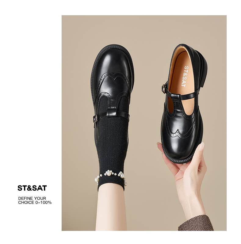星期六26春新款法式镂空T带乐福鞋SSE1111C2N