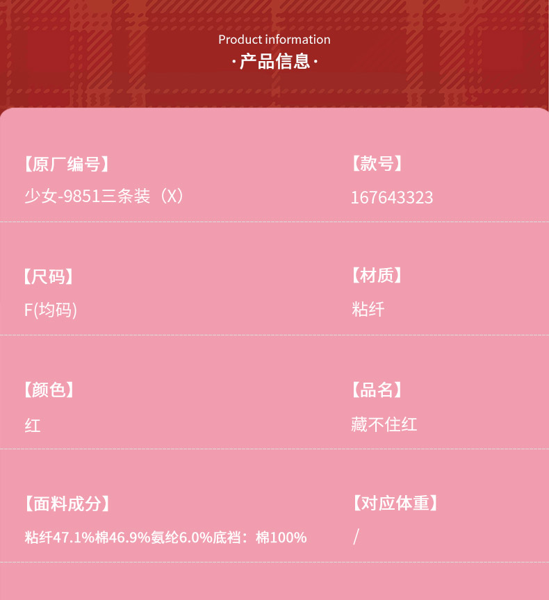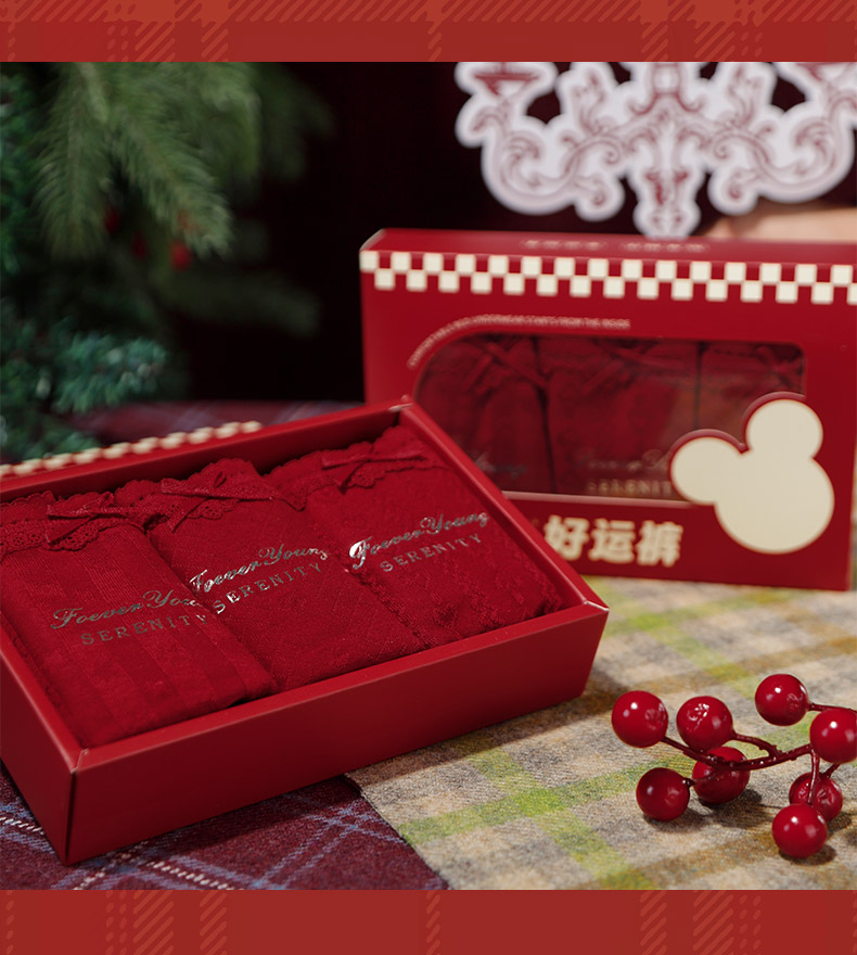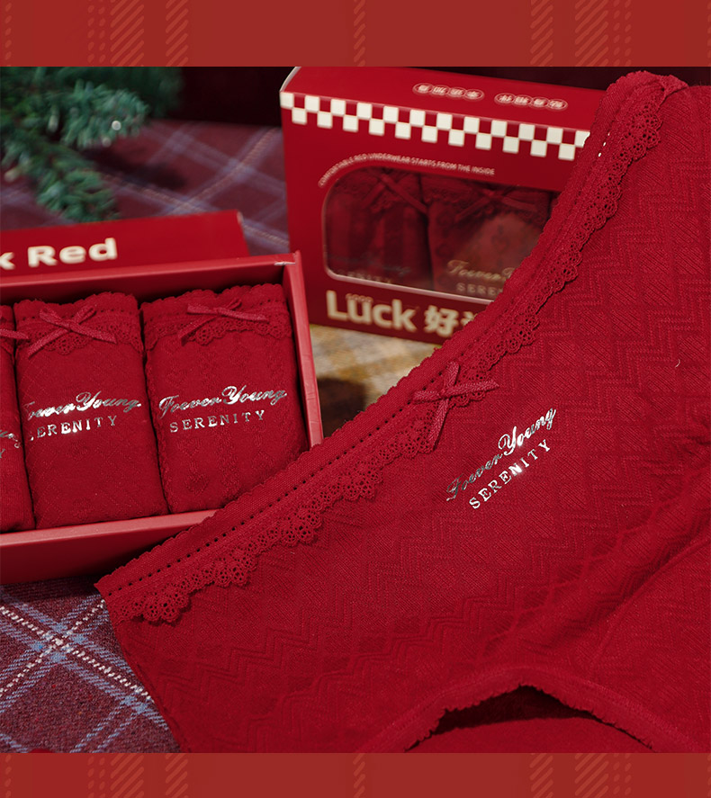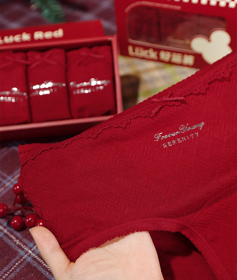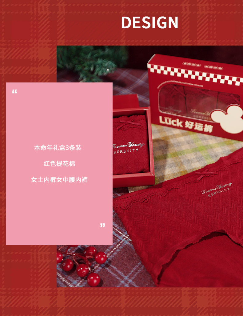 红色提花棉中腰本命年礼盒3条装女士内裤-纪念日百货门店同款167643323