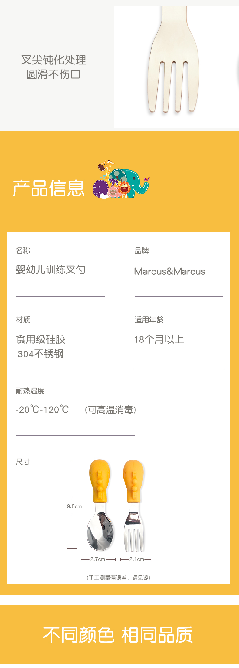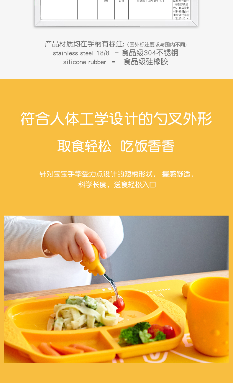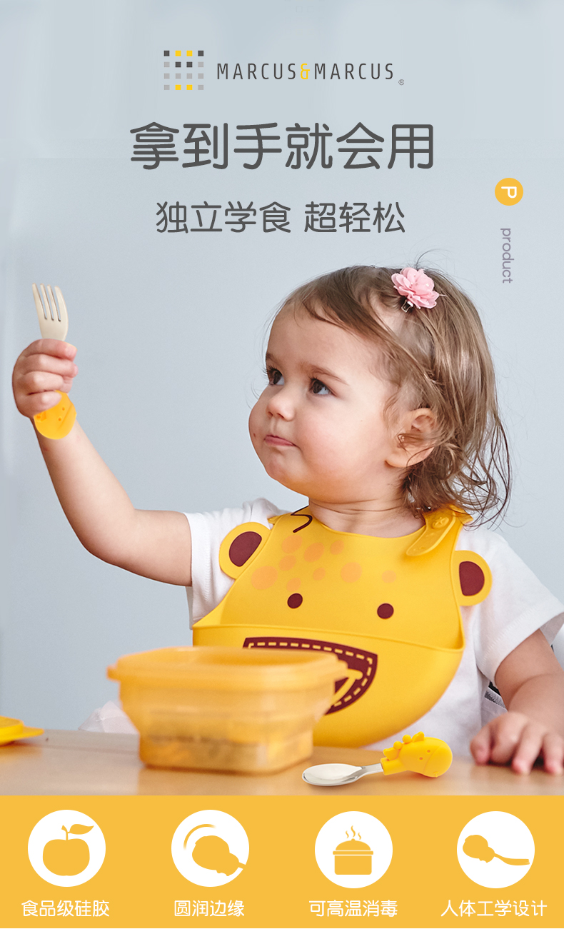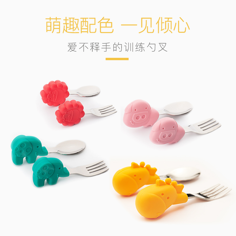 marcus叉勺宝宝学吃饭短柄勺子婴儿训练勺叉辅食勺不锈钢儿童餐具