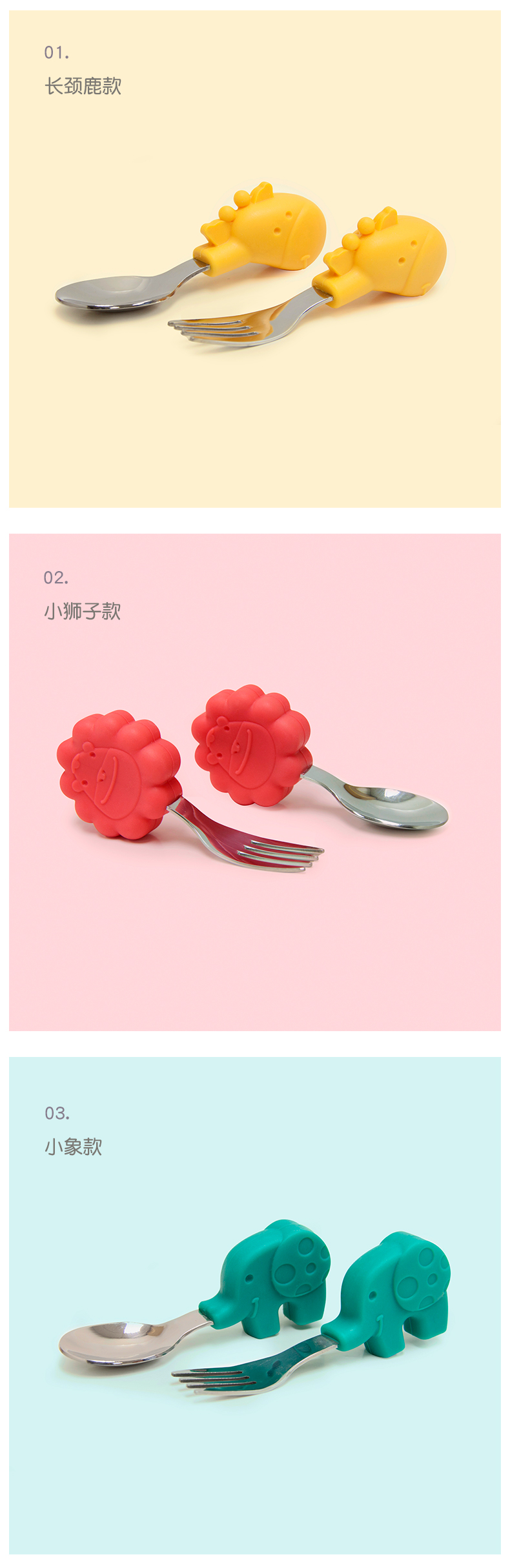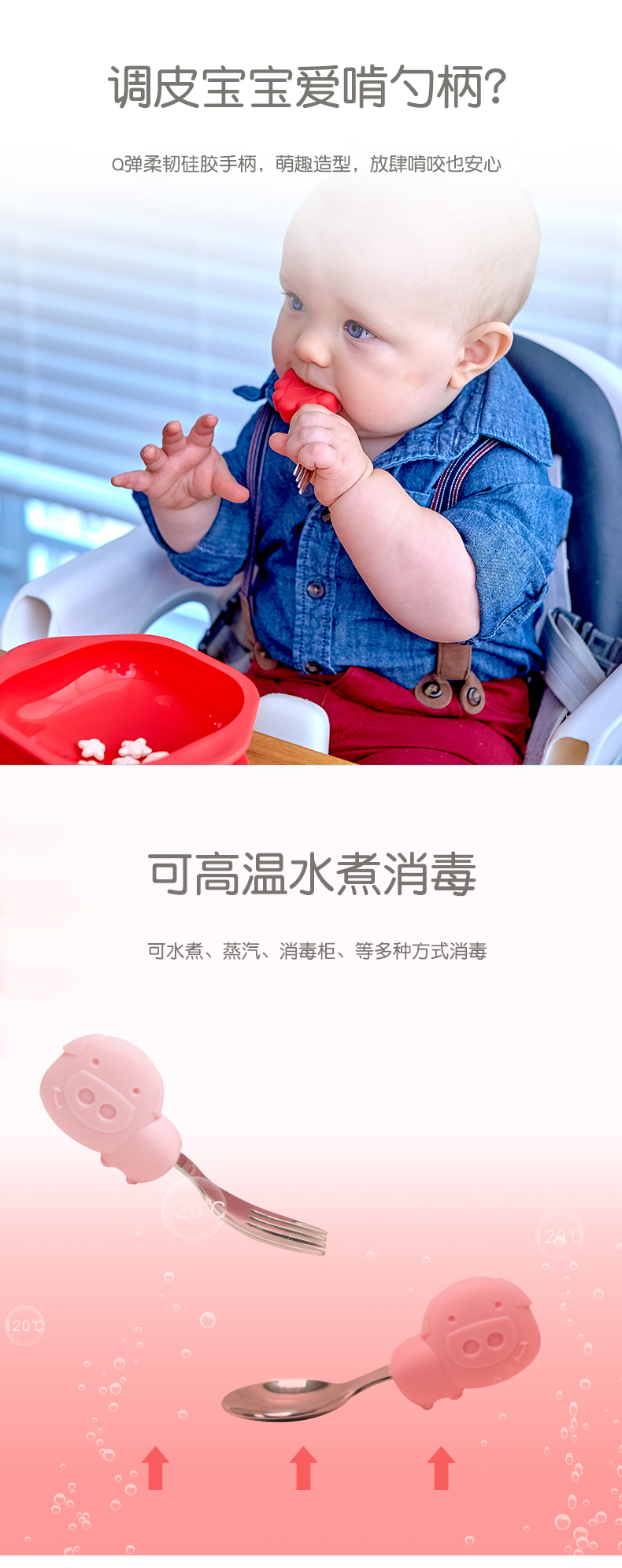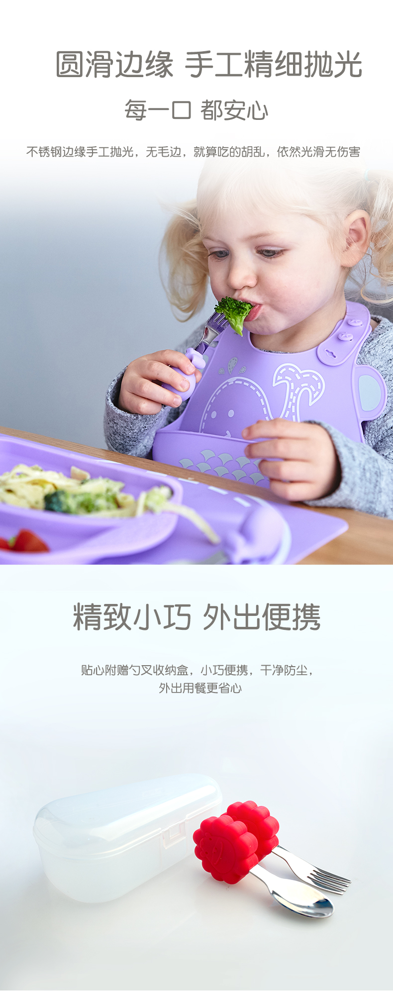 marcus叉勺宝宝学吃饭短柄勺子婴儿训练勺叉辅食勺不锈钢儿童餐具