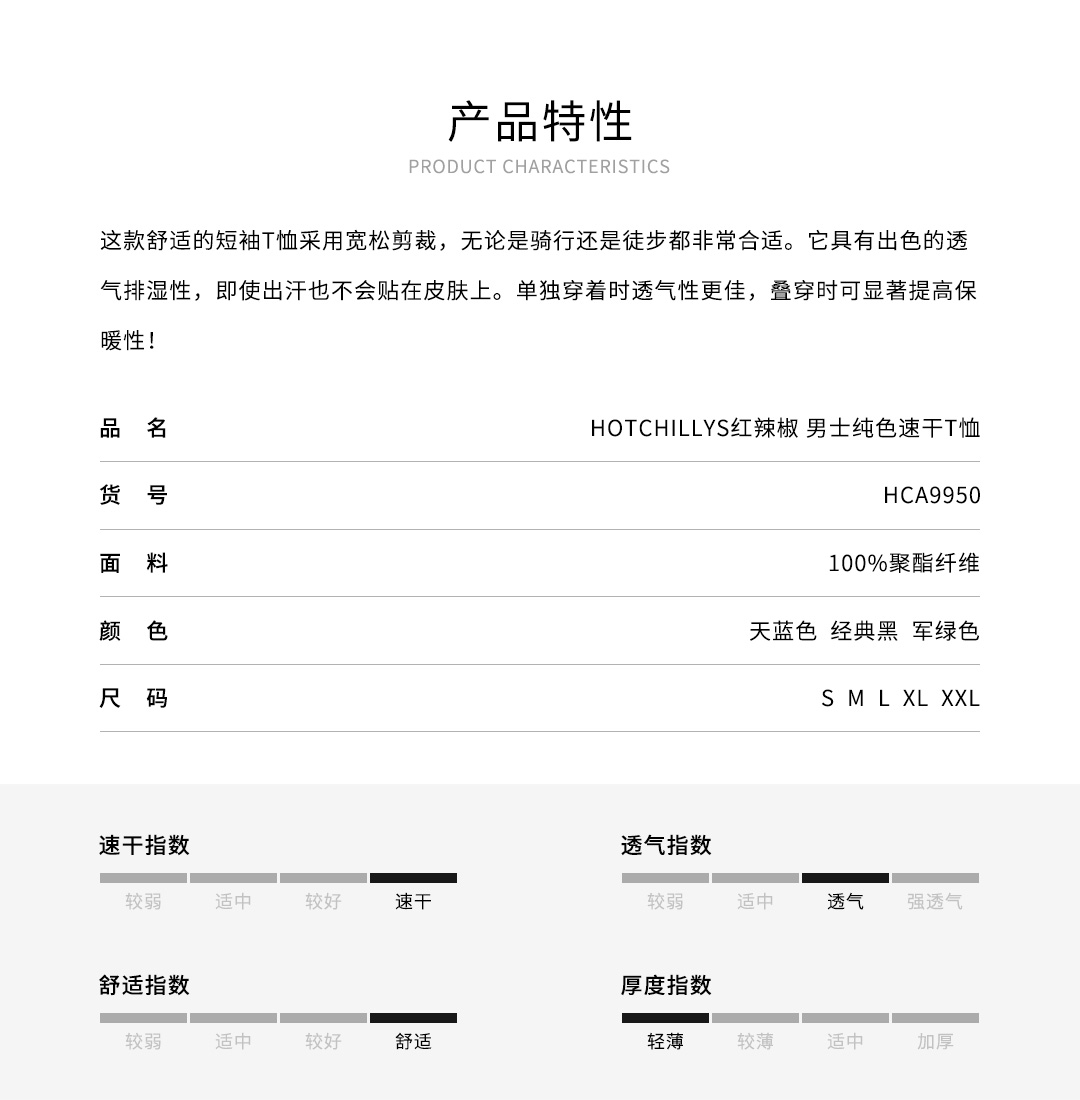 【618提前购】【保价618】HOTCHILLYS热椒男士夏季速干纯色t恤户外运动跑步透气上衣9950