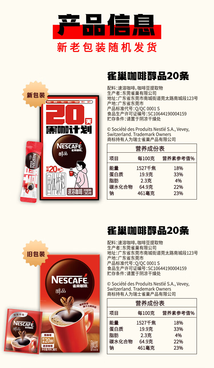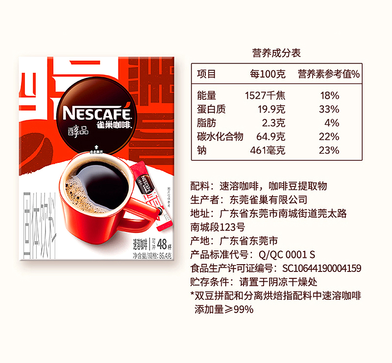 雀巢咖啡醇品速溶咖啡(20x1.8g)*2盒
