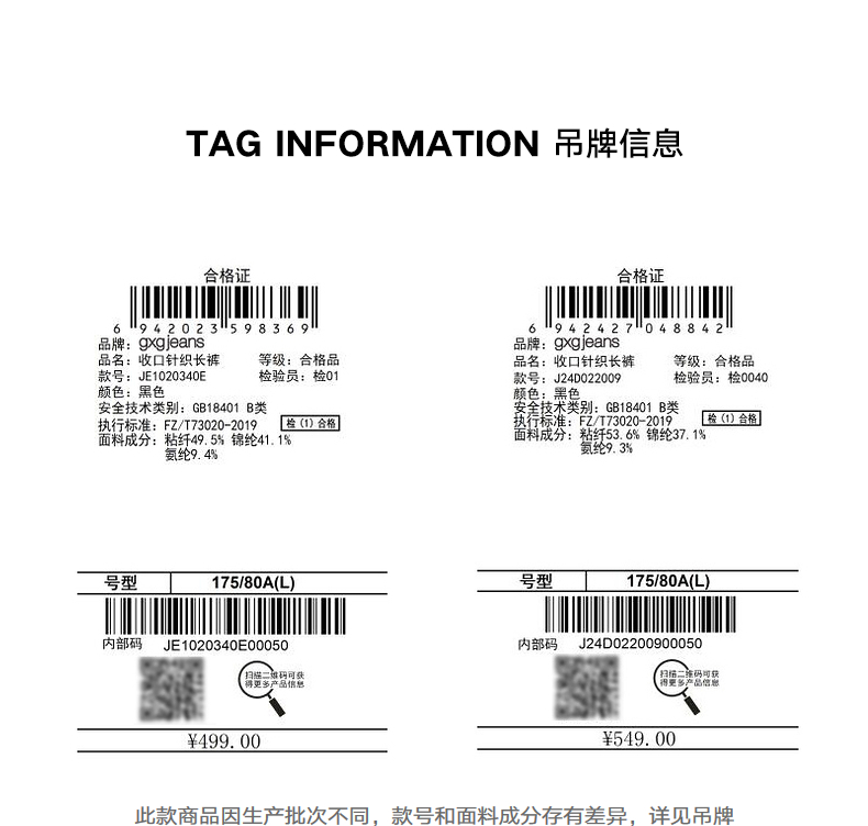 gxg.jeans男装夏季黑色休闲针织收口长裤爆款休闲裤JE1020340E