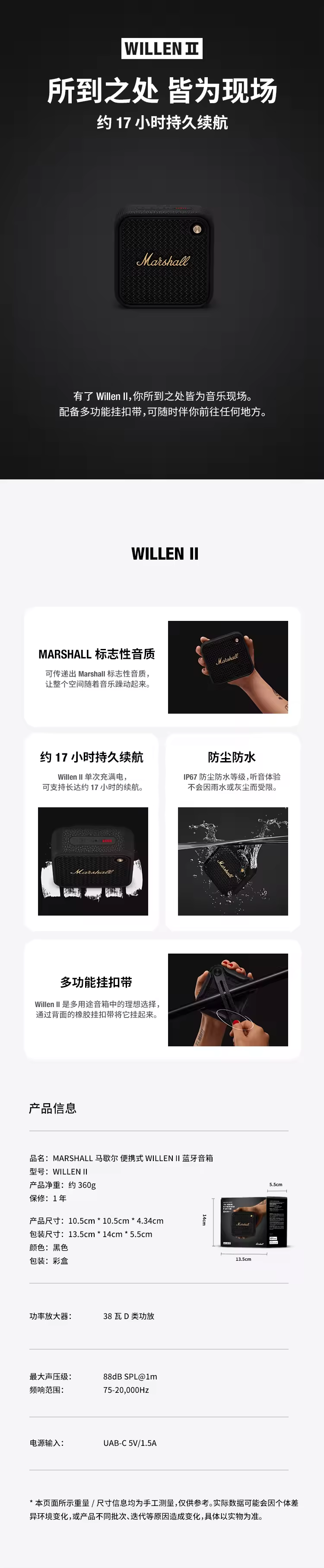 音箱 便携蓝牙 WILLEN II 黑 - 马歇尔
