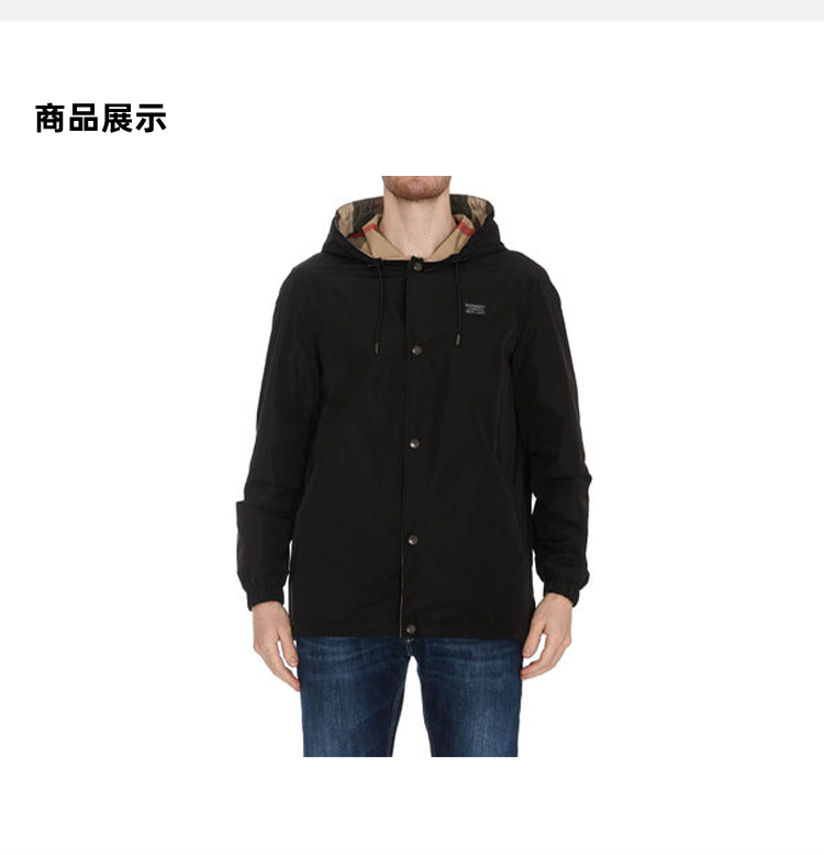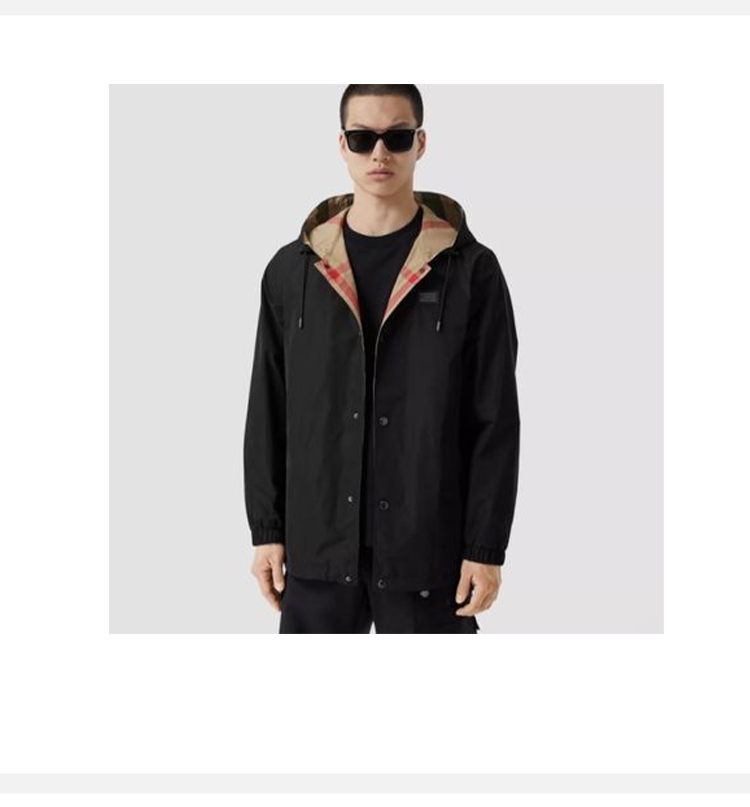 【一】BURBERRY 巴宝莉 男士双面两穿格纹连帽外套 黑色 8043403 A1189