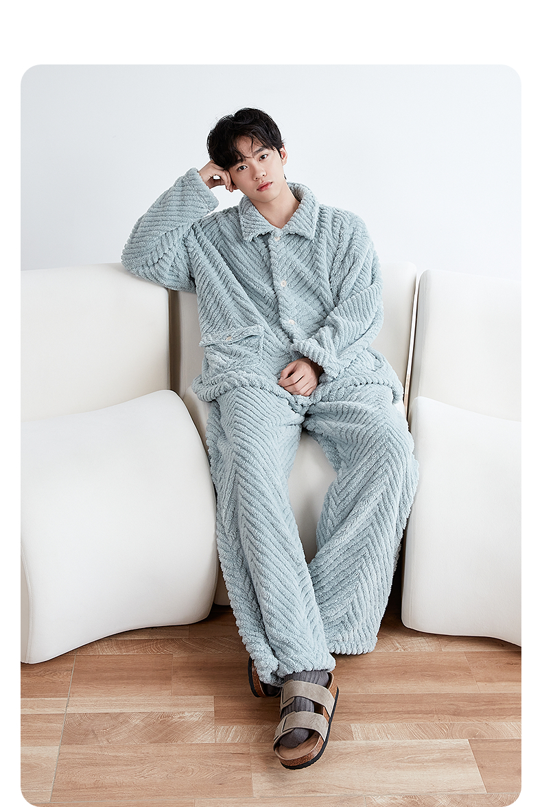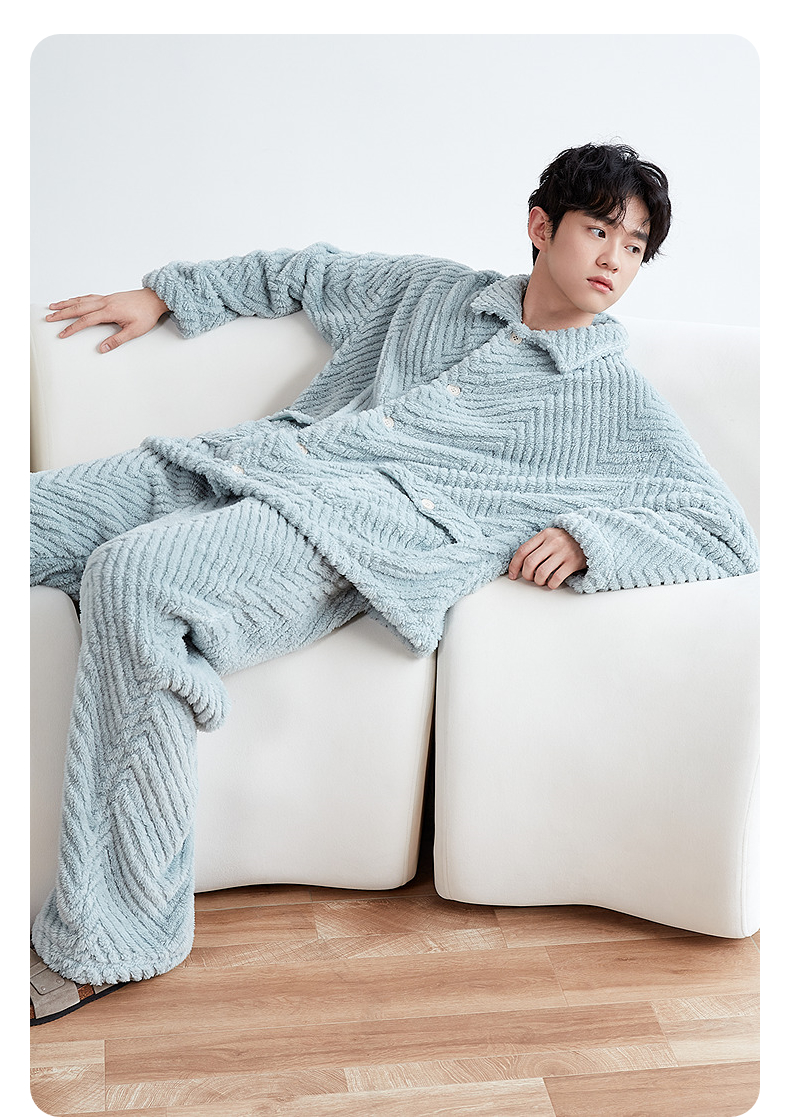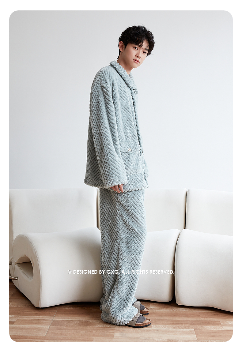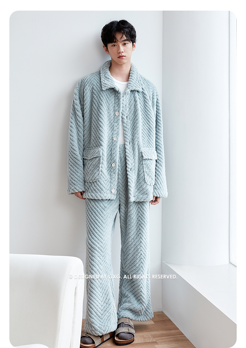 GXG男士家居服 斜纹剪花绒感长袖睡衣纹理柔软舒适睡衣套装冬季款
