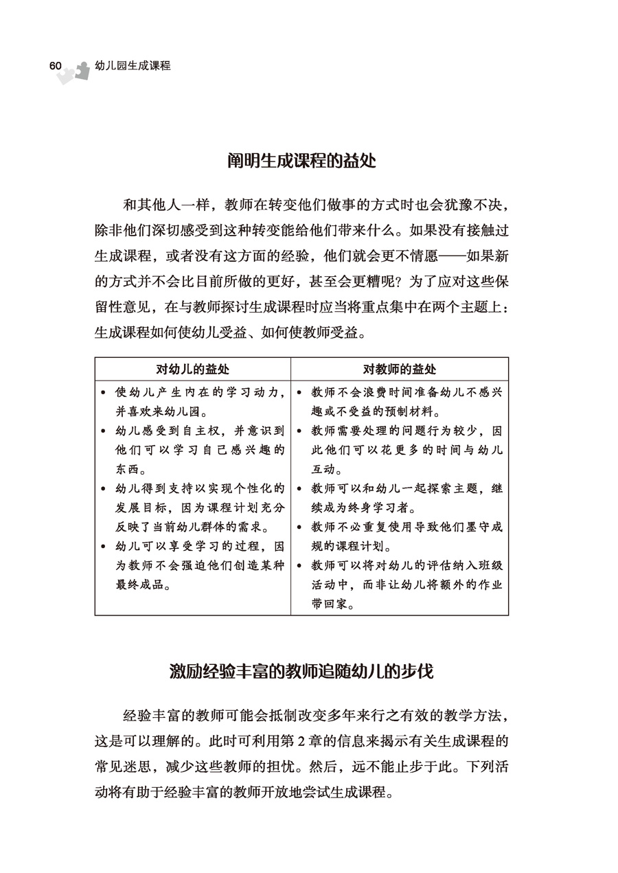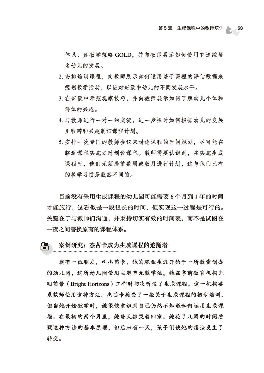 本书作者在学前教育领域深耕20多年,有着丰富的教学与管理经验,提出游戏与学习不是二元对立的,以幼儿的兴趣为基础的生成课程可以通过发展适宜性游戏帮助幼儿做好入学准备。同时,作者用大量的案例阐释了有益的入学准备是什么样的、如何发现和利用游戏中的教育契机、如何培训教师并引导家长参与课程以及培养幼儿社会情绪、书写、问题解决等能力的有效方法,以促进幼儿的深度学习。