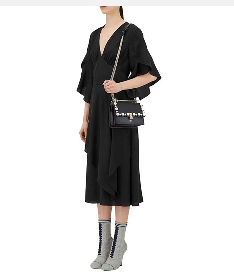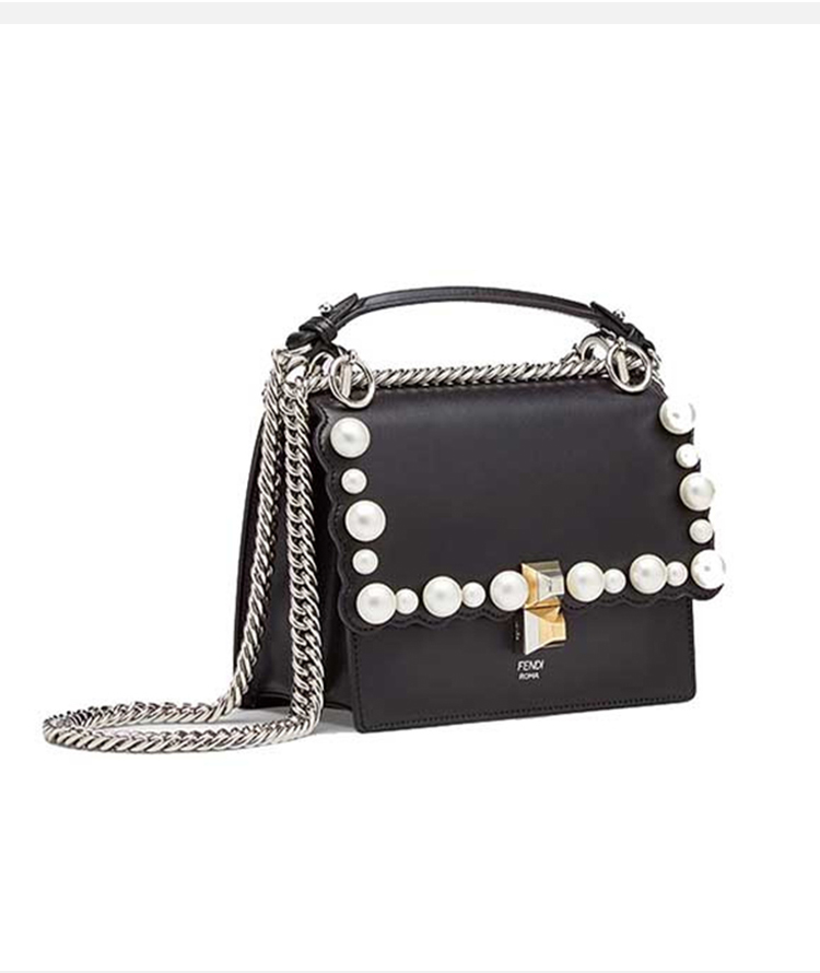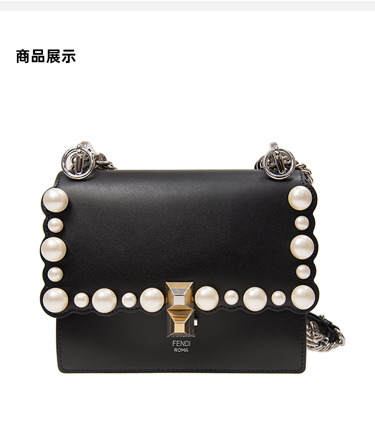 FENDI 芬迪 女士光滑皮革 Kan I系列 迷你斜挎单肩包 黑色 8M0381 A0ZR F0GXN