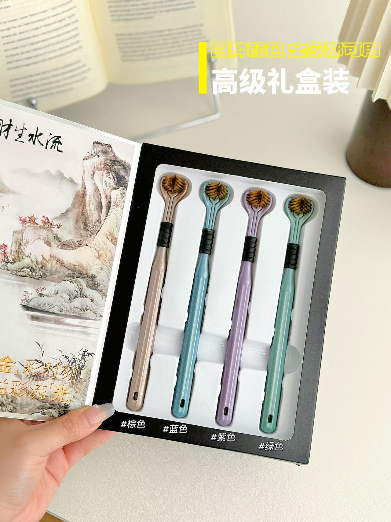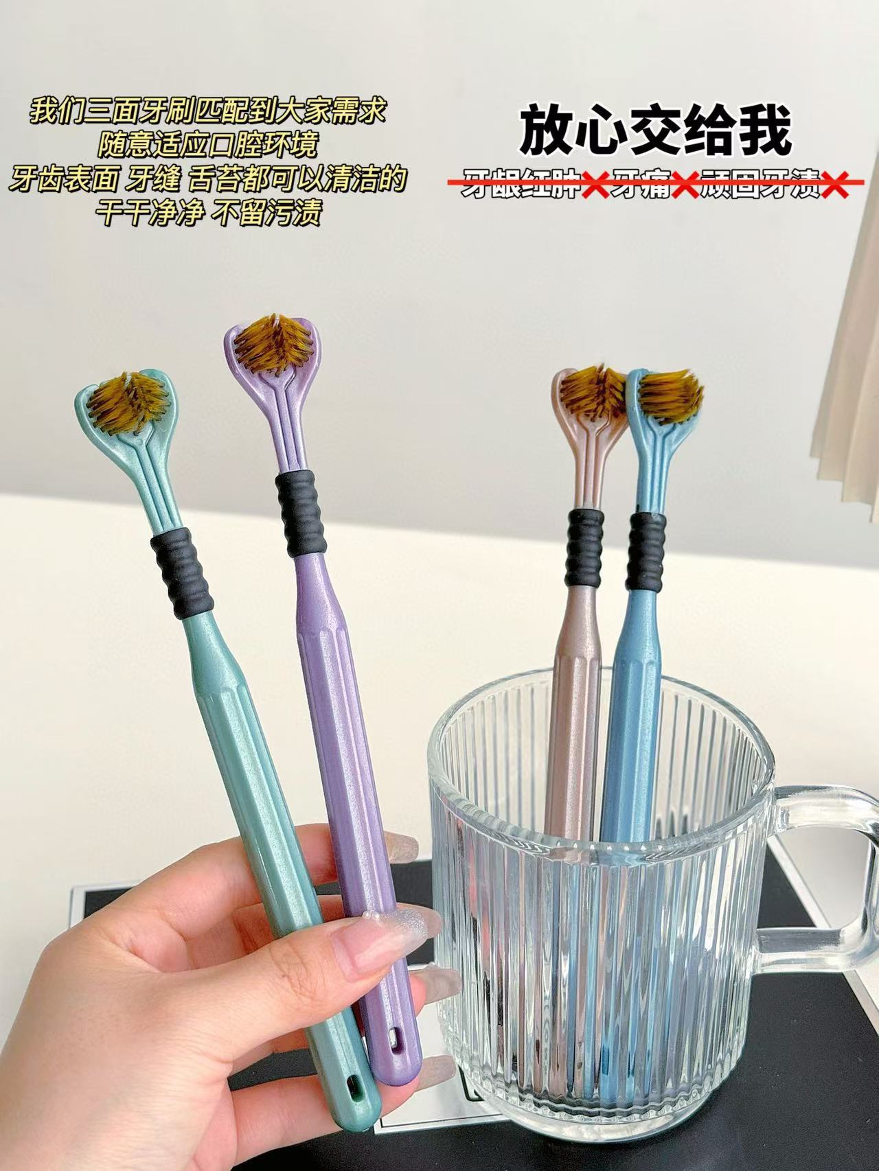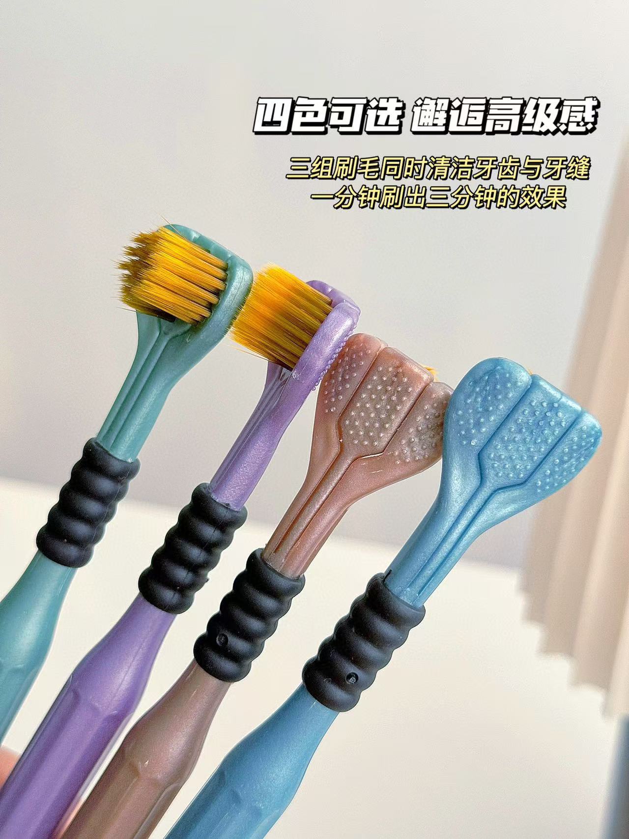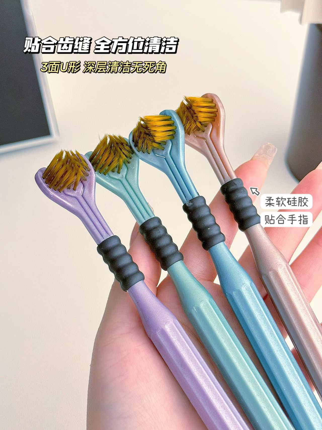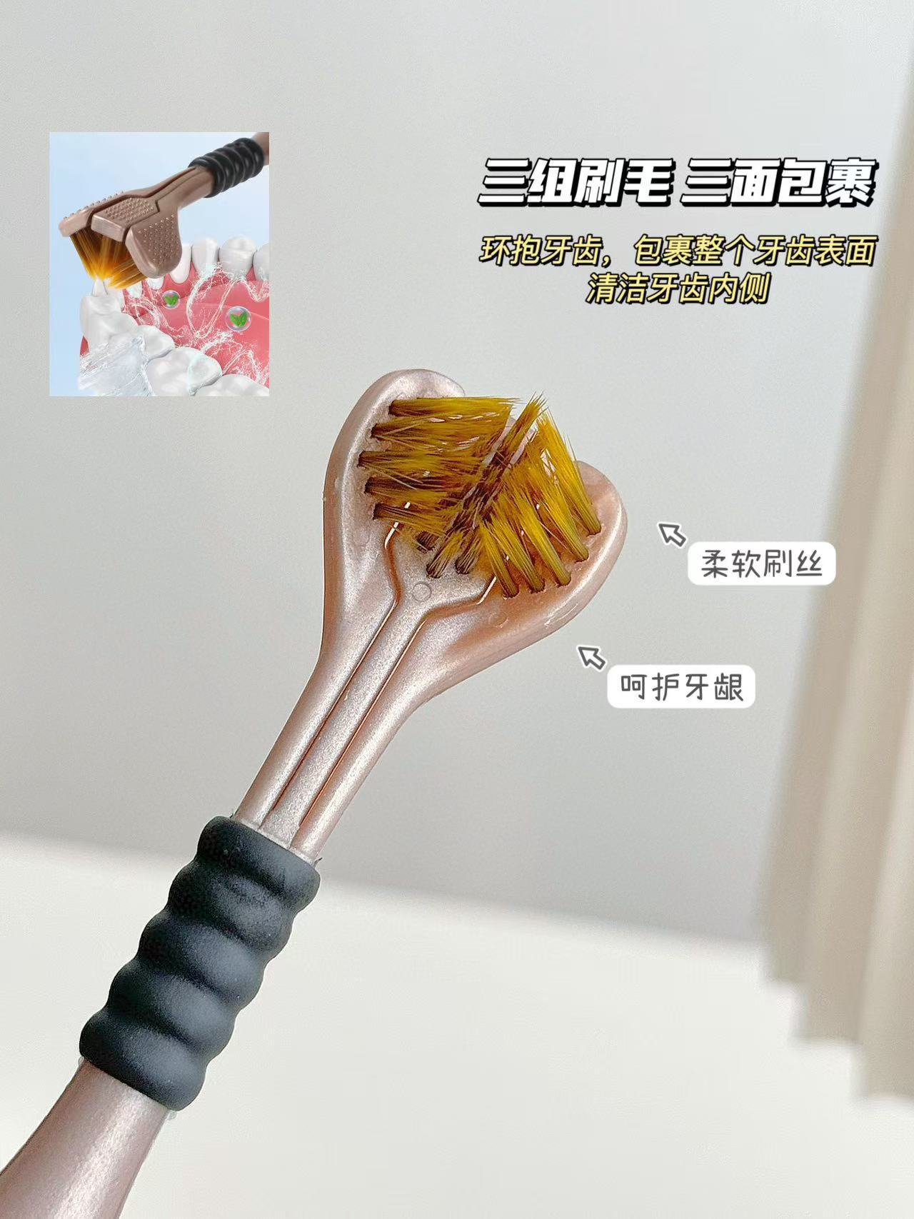 「4支礼盒装!三面牙刷」Sanding ·三面牙刷礼盒装 环抱牙齿碳金软毛包裹清洁口腔护理