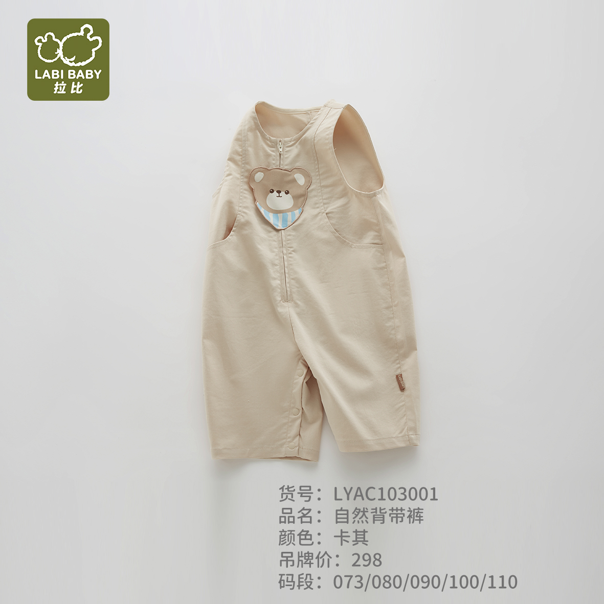 拉比-童衣类(春)I5自然背带裤卡其(PH)