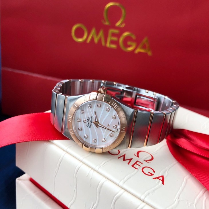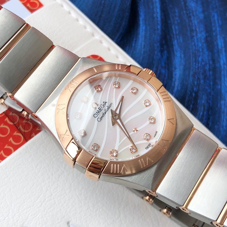 欧米伽/OMEGA 星座系列石英女表 。机芯采用原装机芯同产地瑞士原装石英机芯 镜面采用德国进口蓝宝石高强度防刮花玻璃 纯天然贝母表盘。