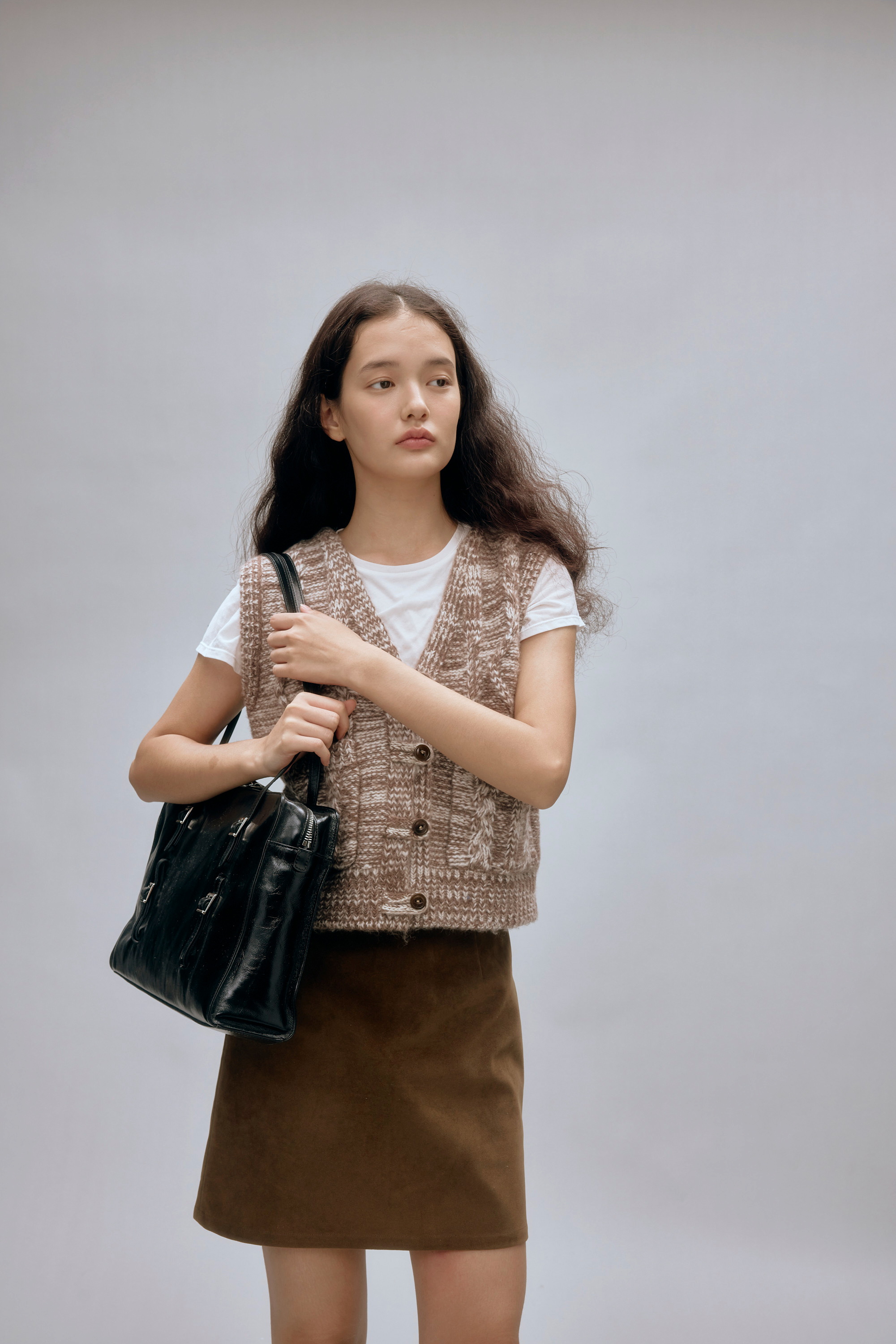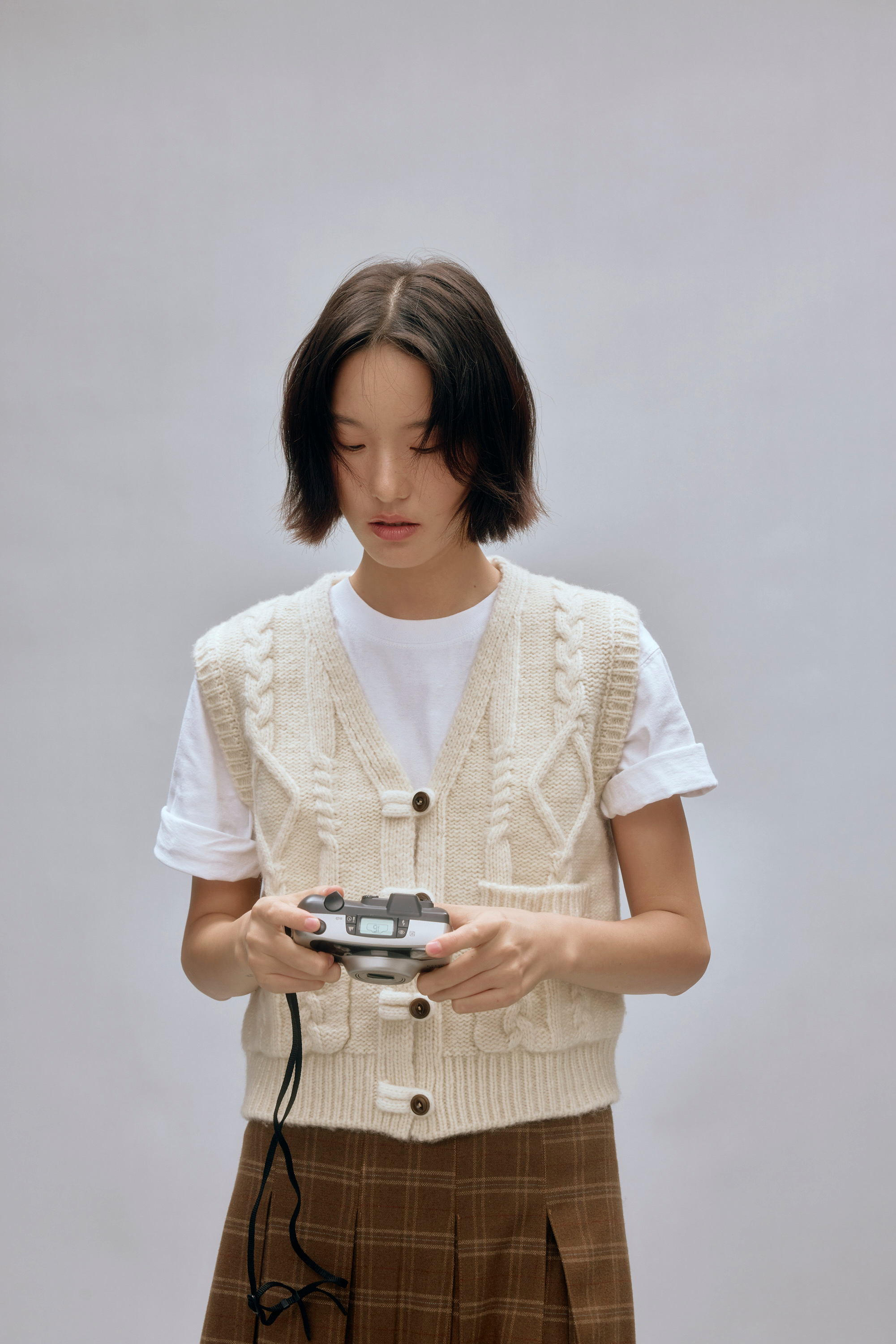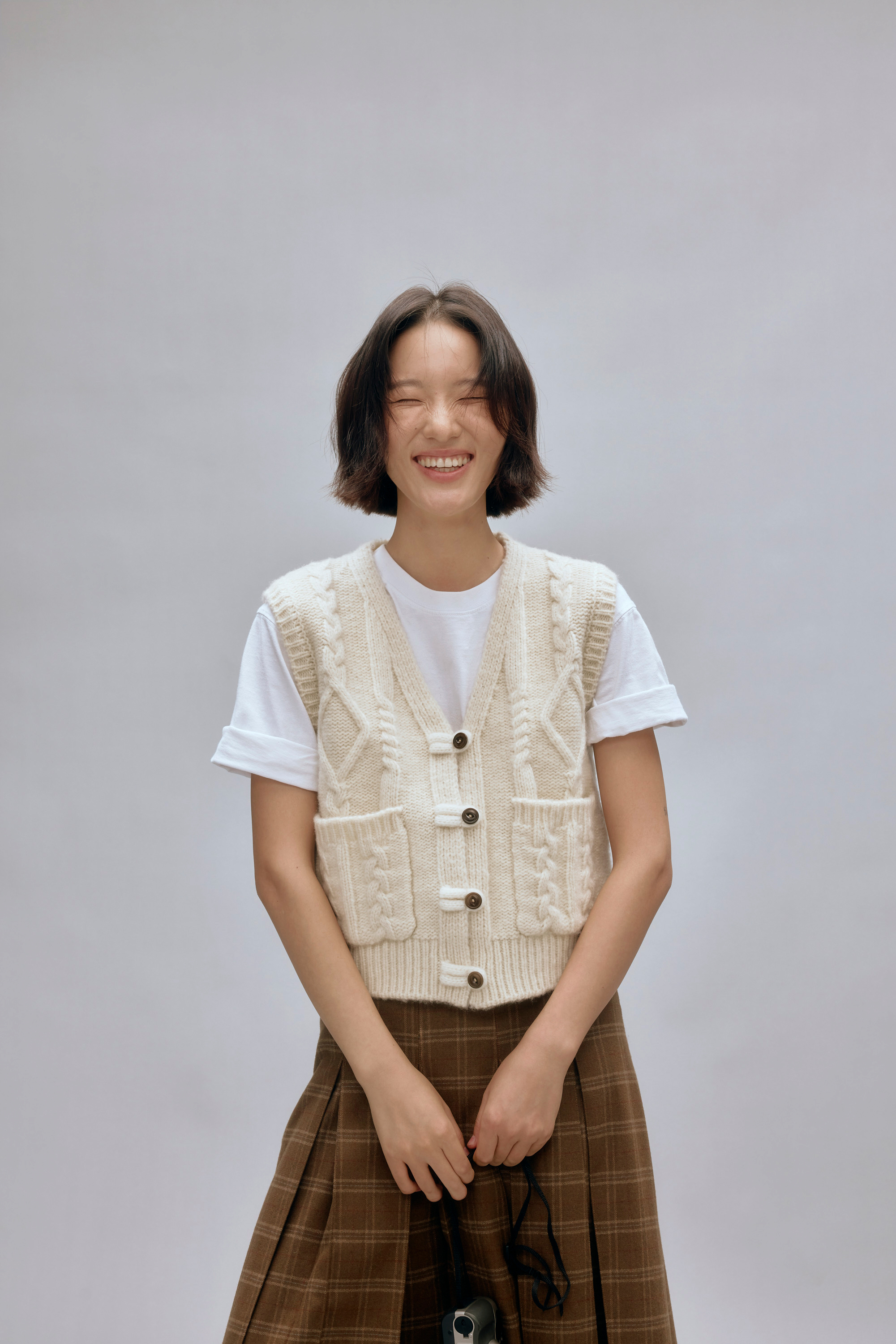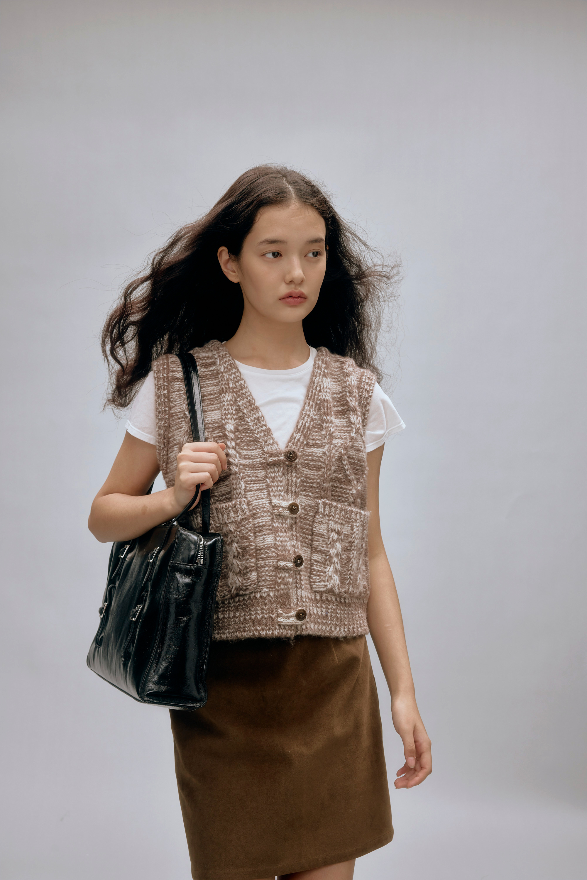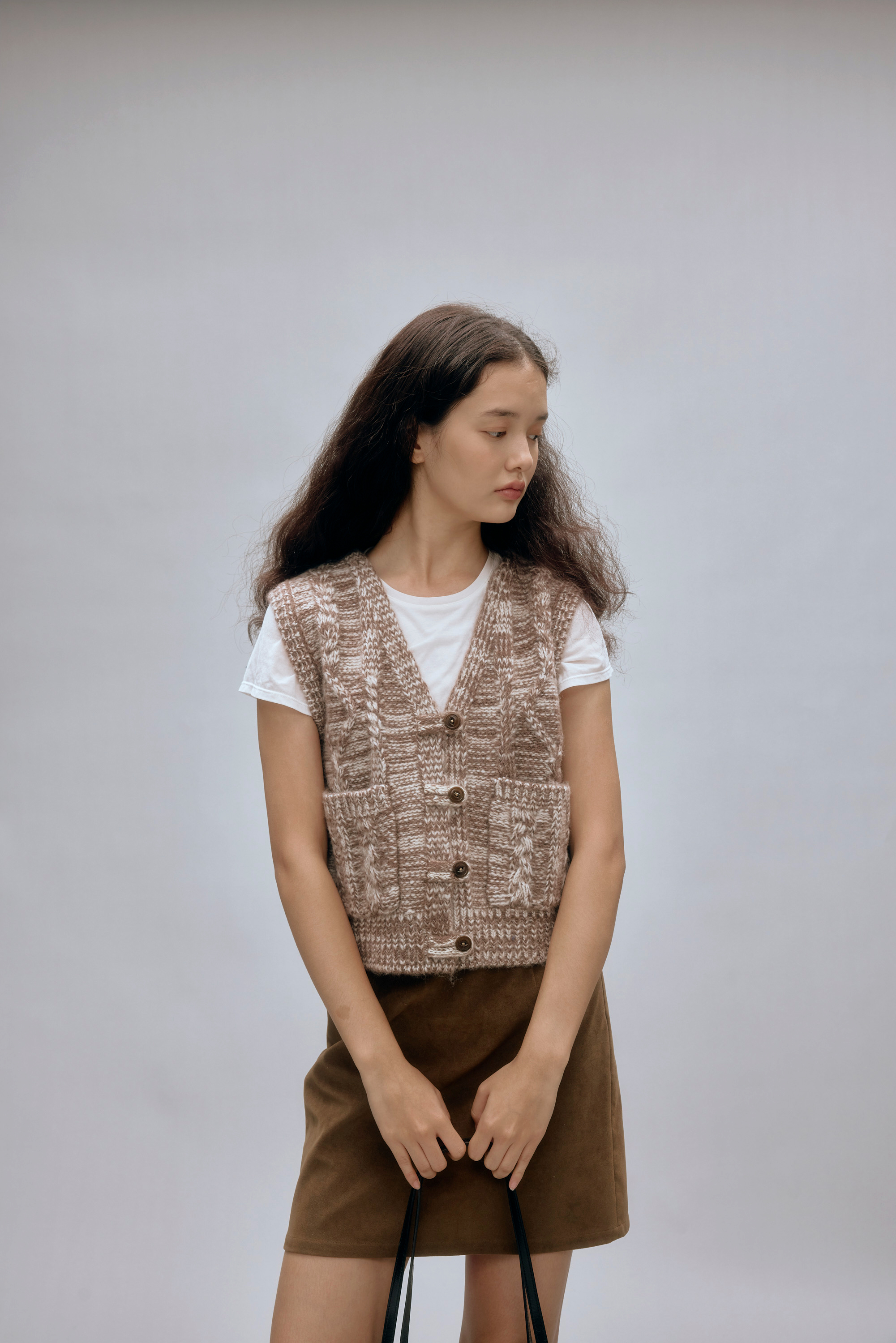 shyshystill/shy202408044/羊毛v领叠穿绞花设计重工小马甲开衫背心