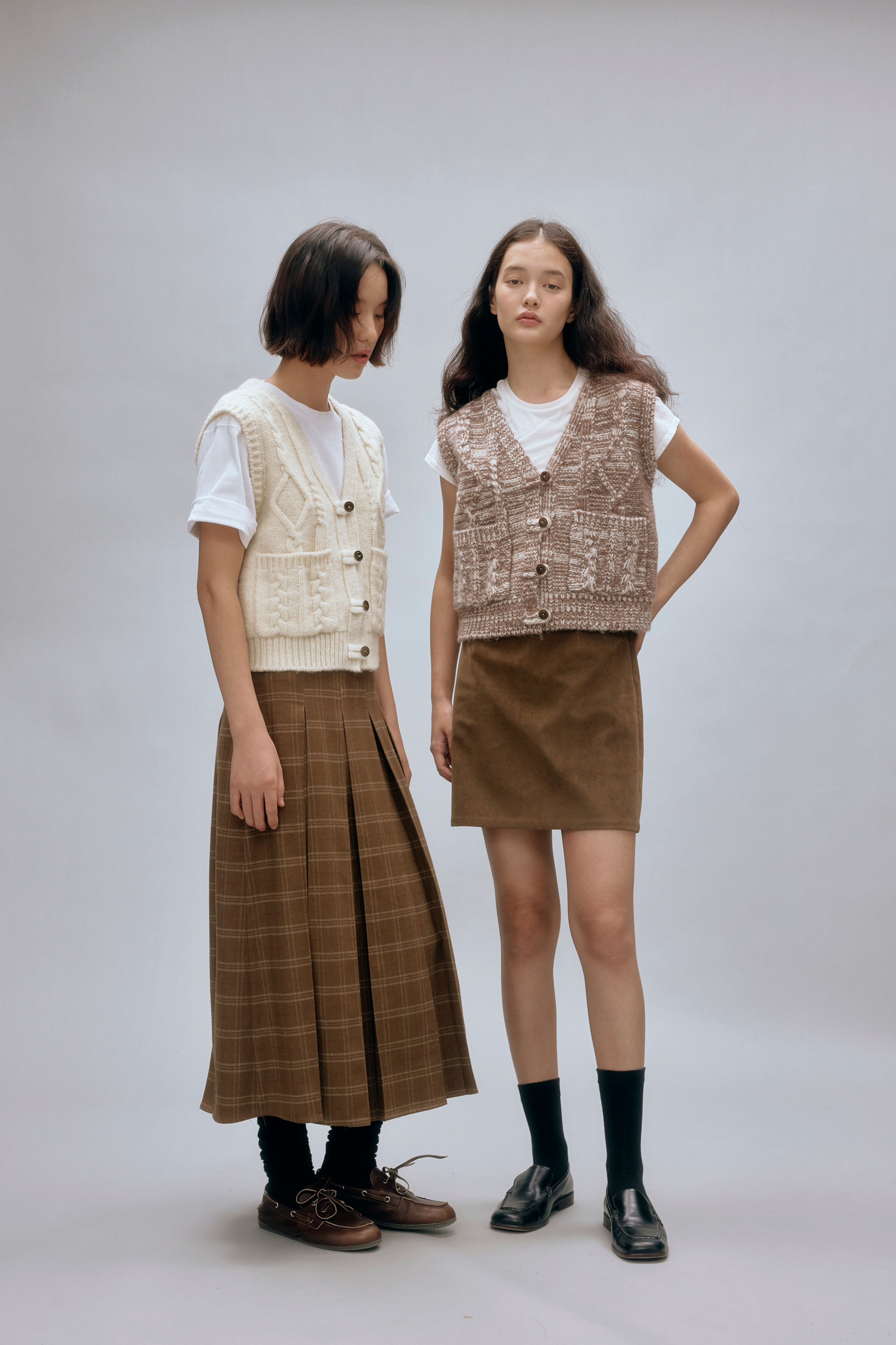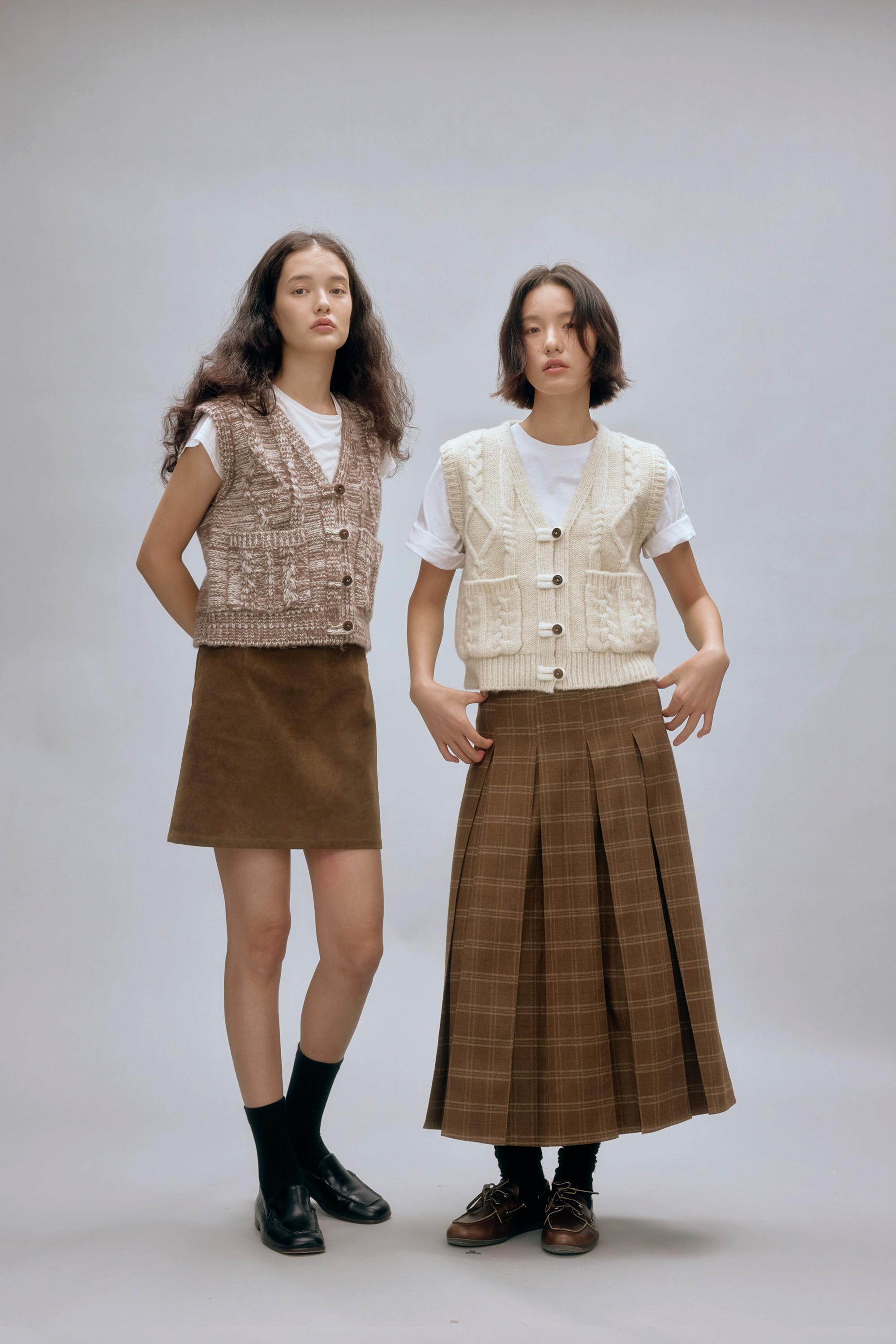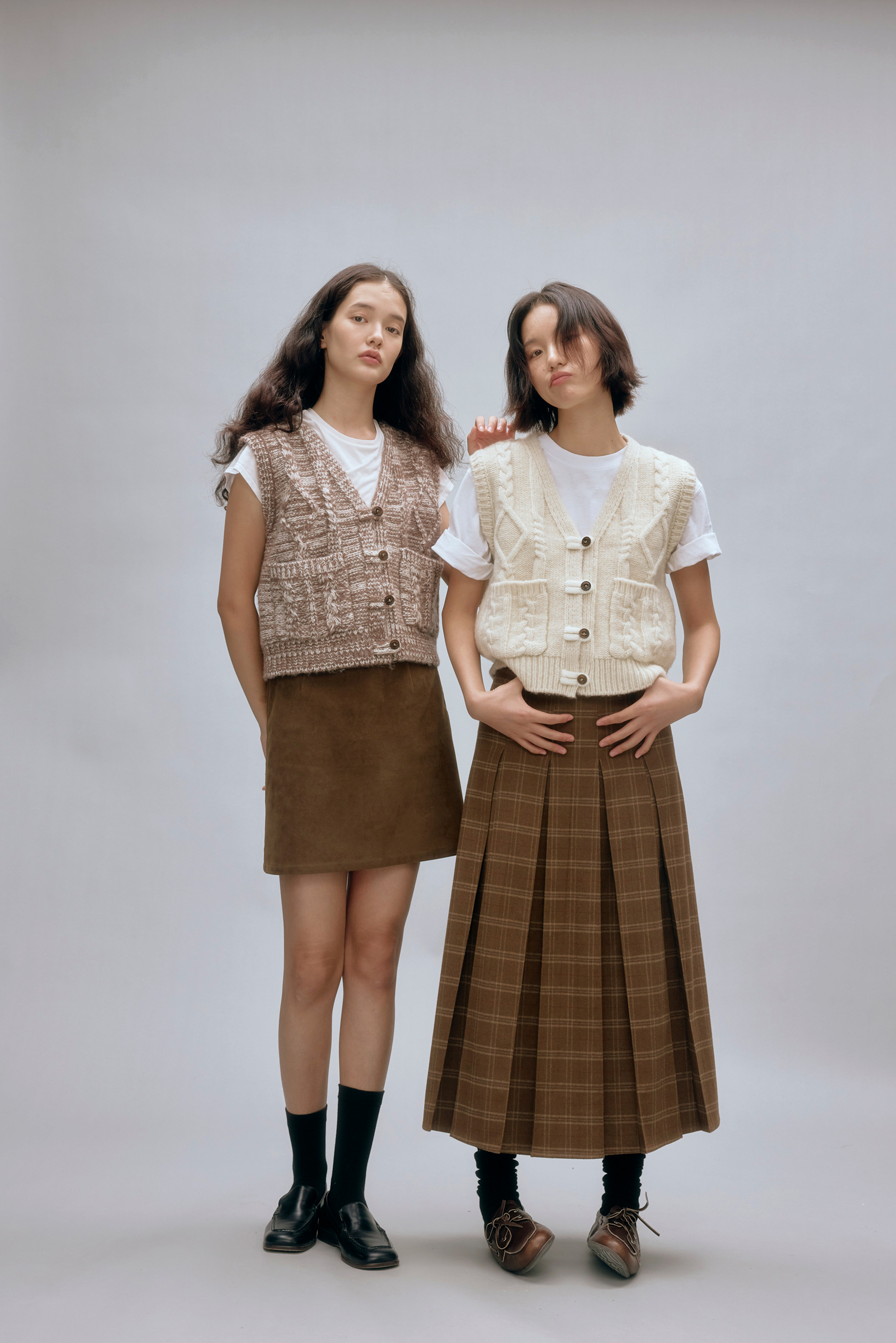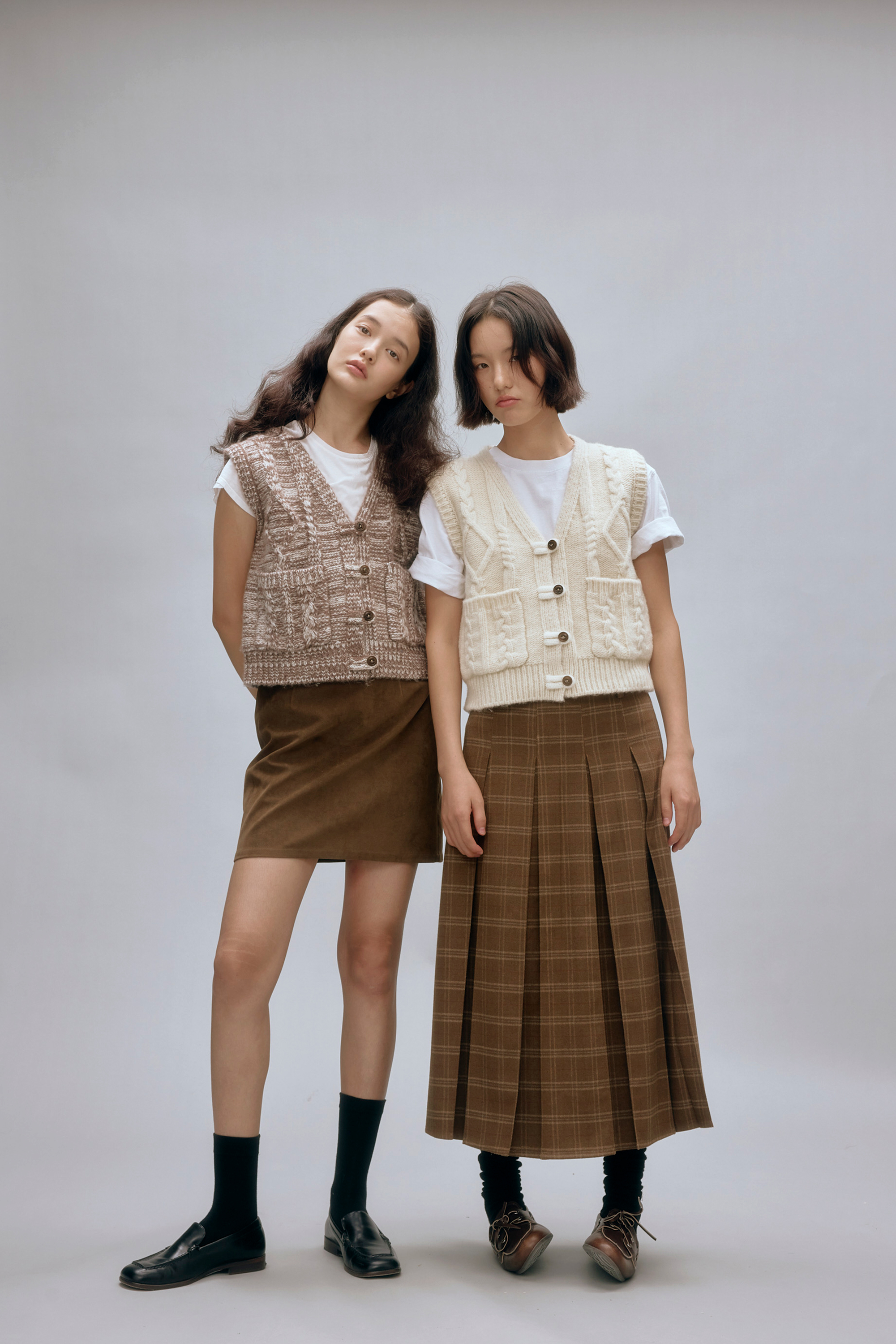 shyshystill/shy202408044/羊毛v领叠穿绞花设计重工小马甲开衫背心