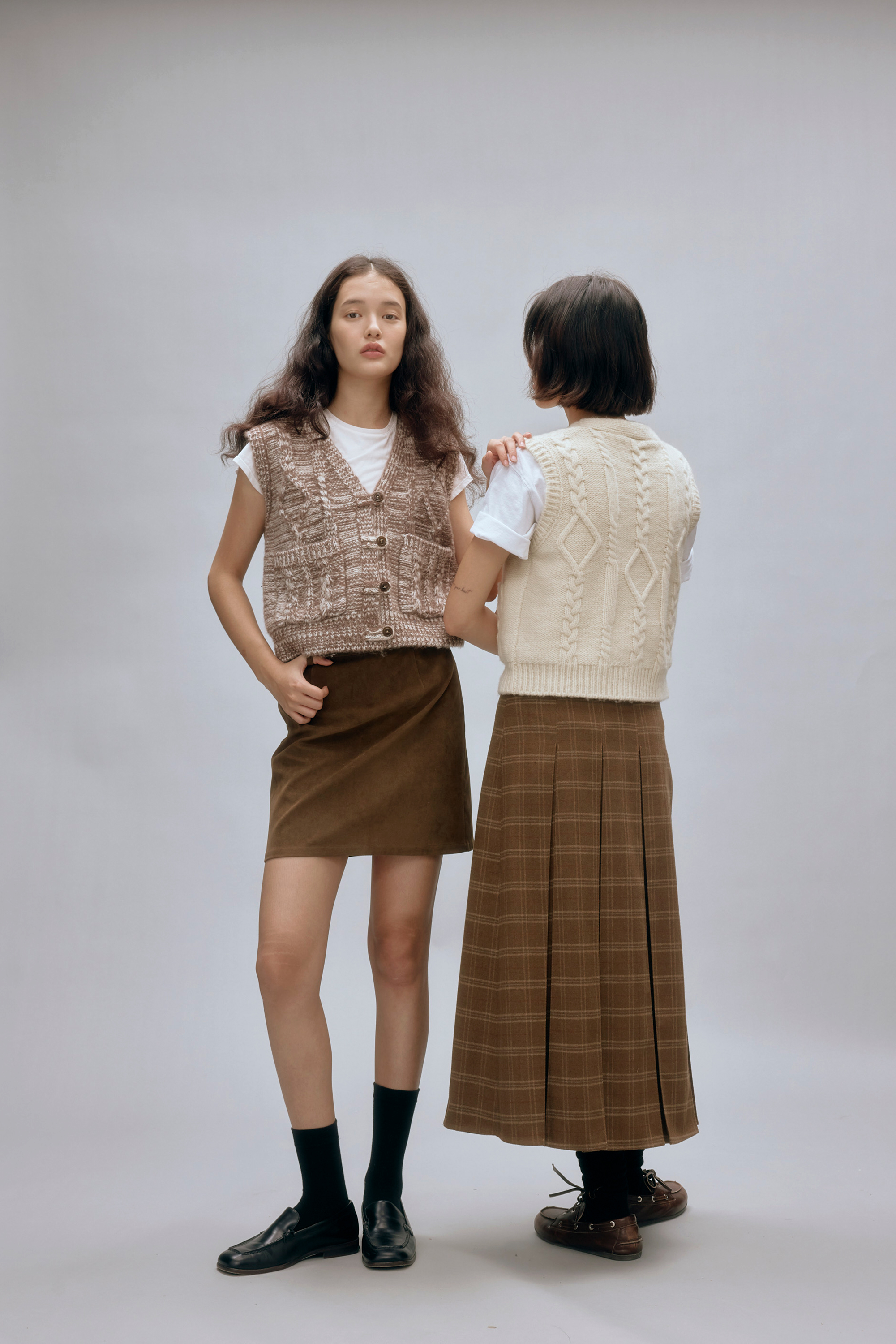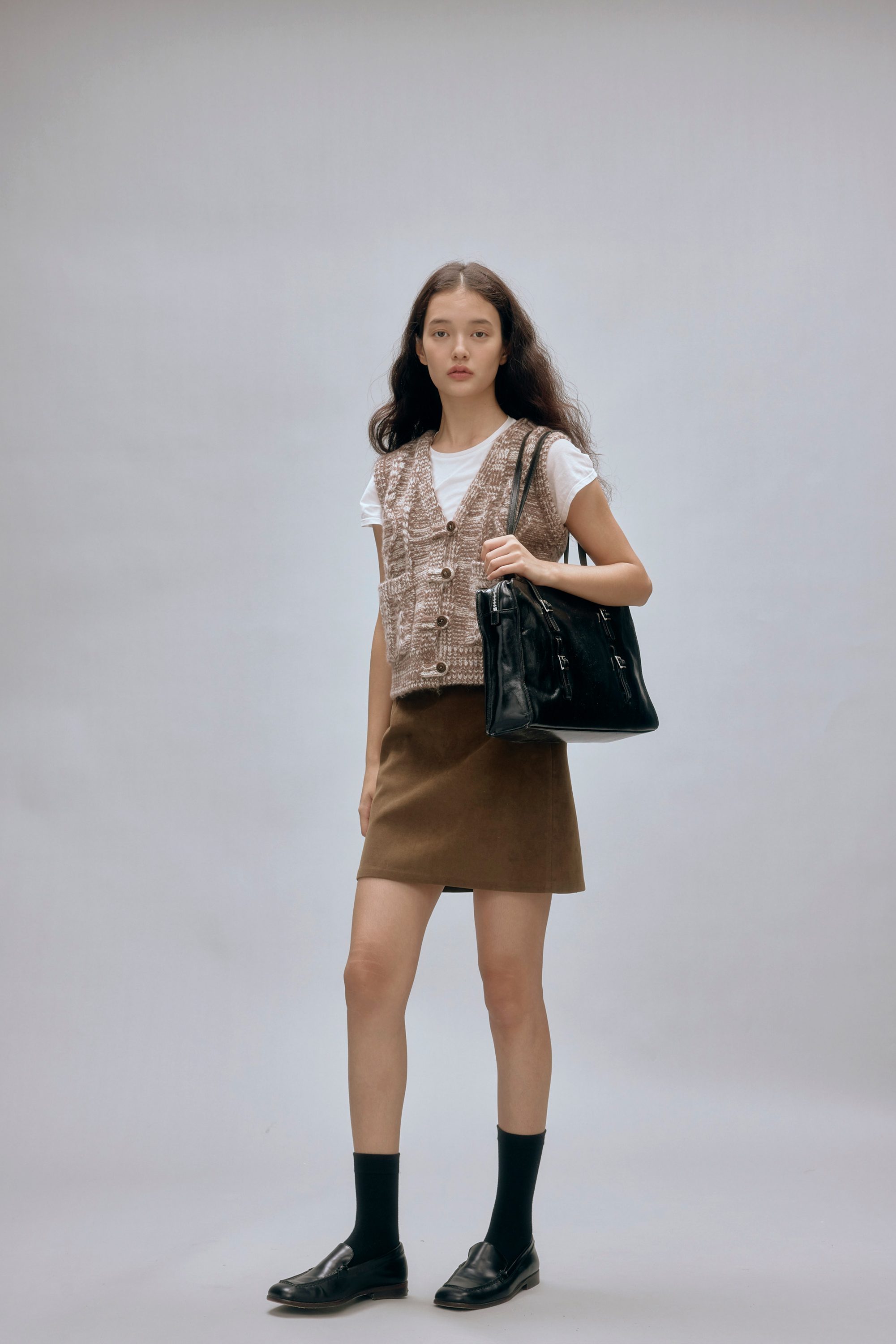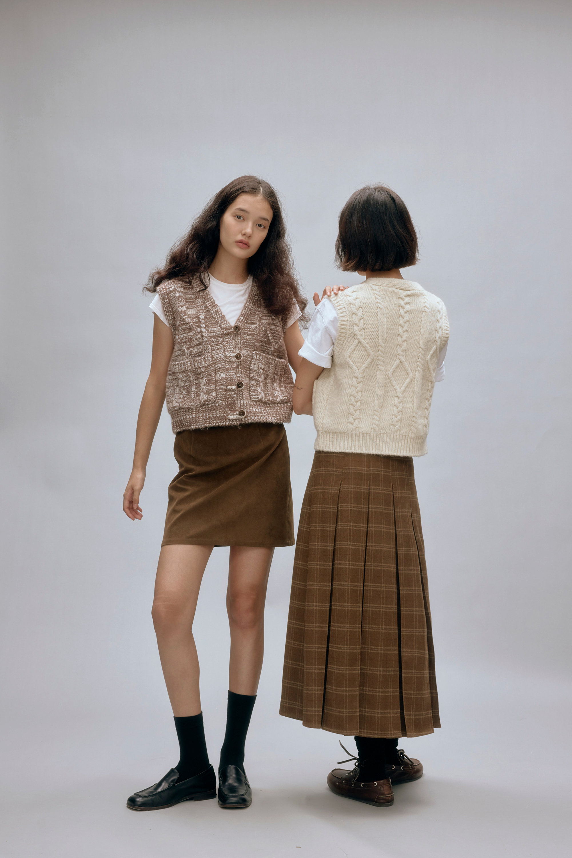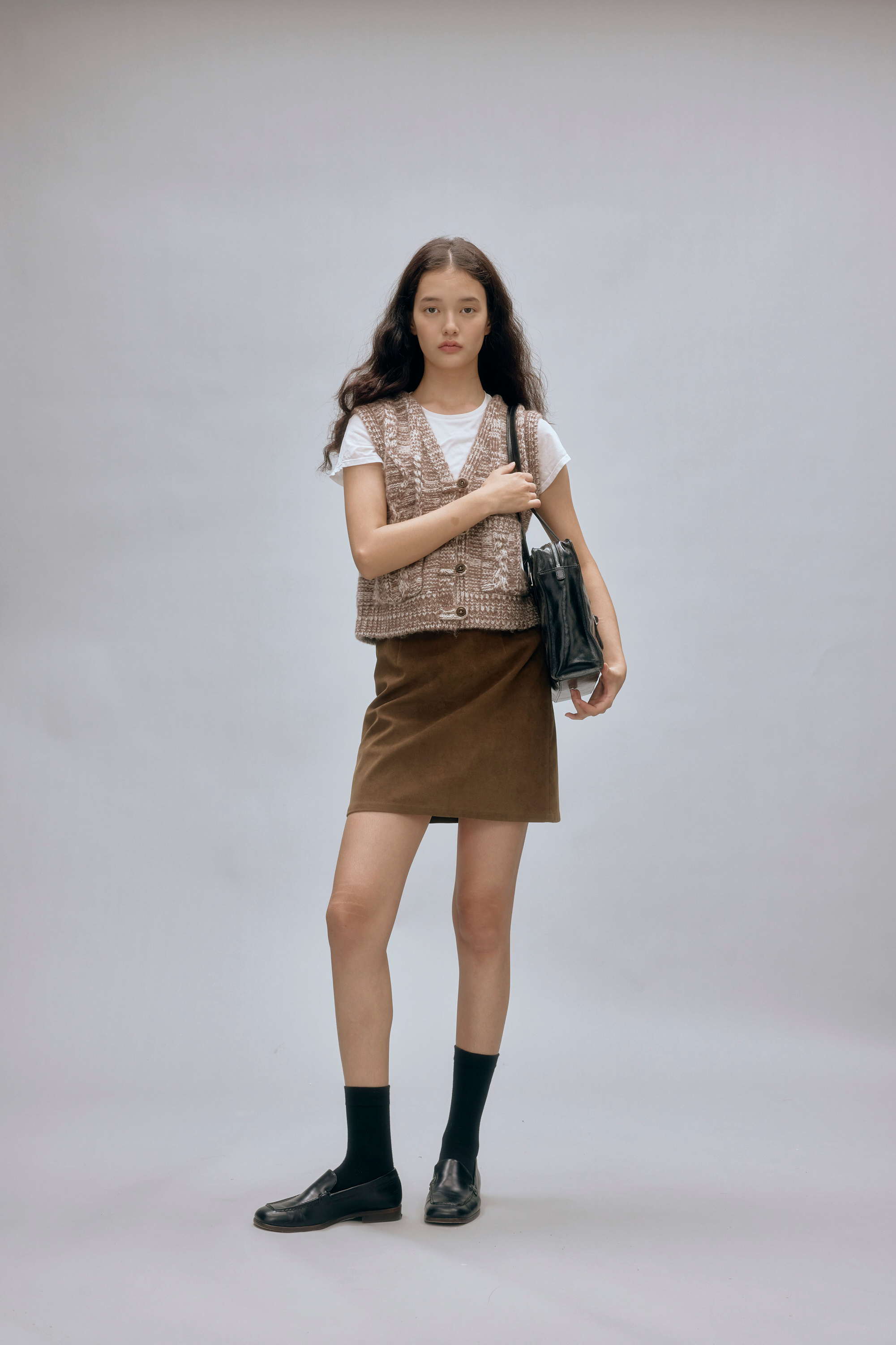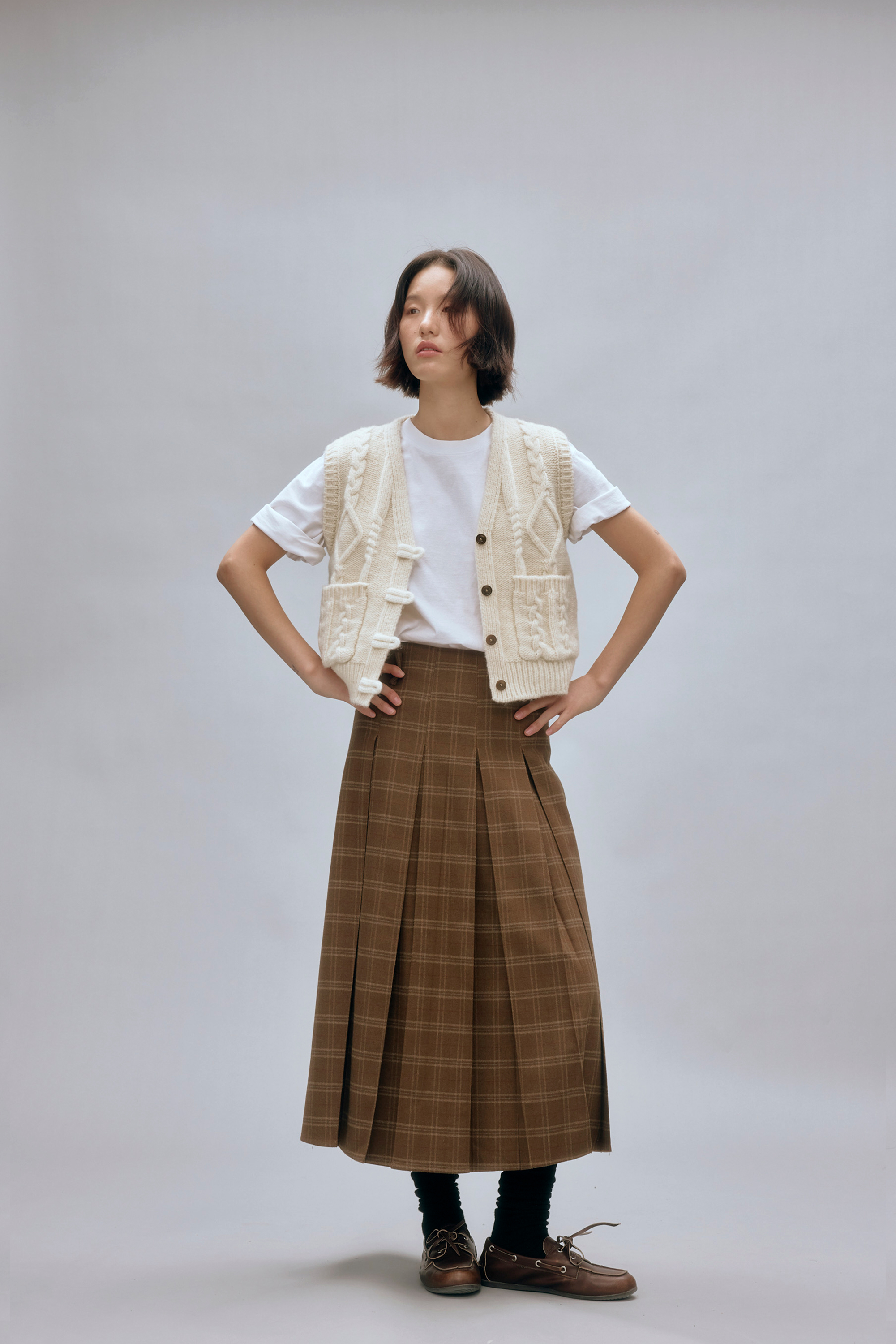 shyshystill/shy202408044/羊毛v领叠穿绞花设计重工小马甲开衫背心