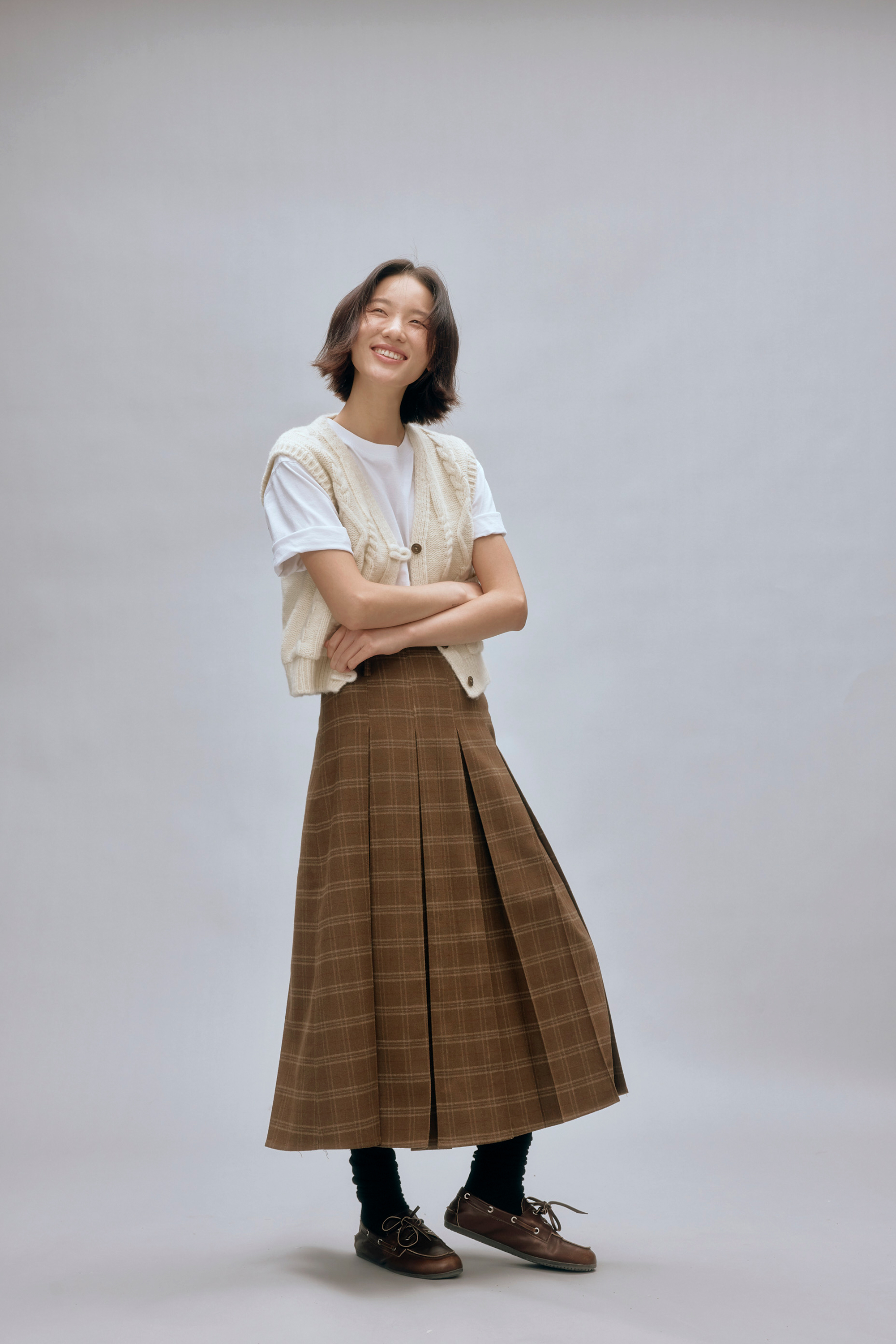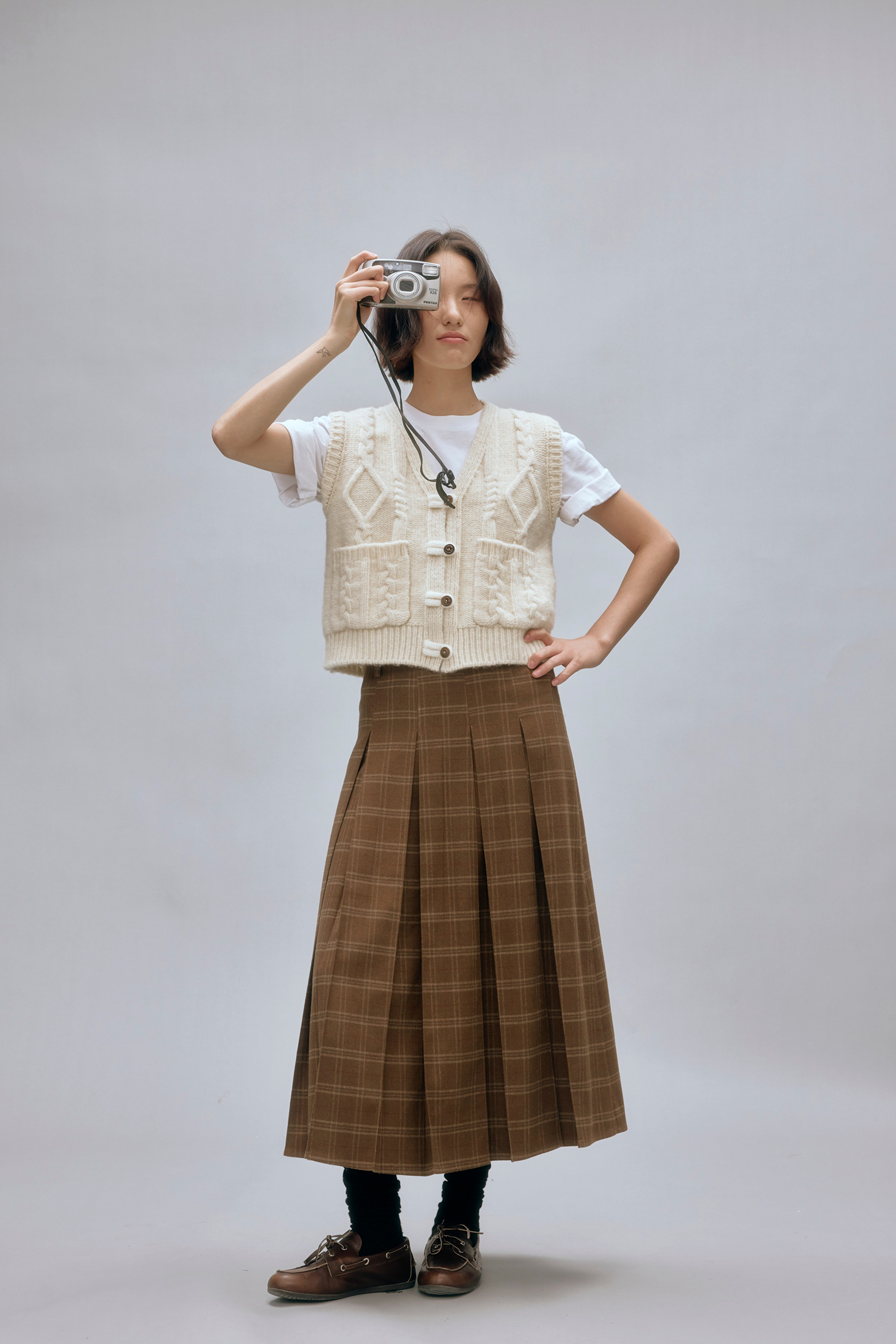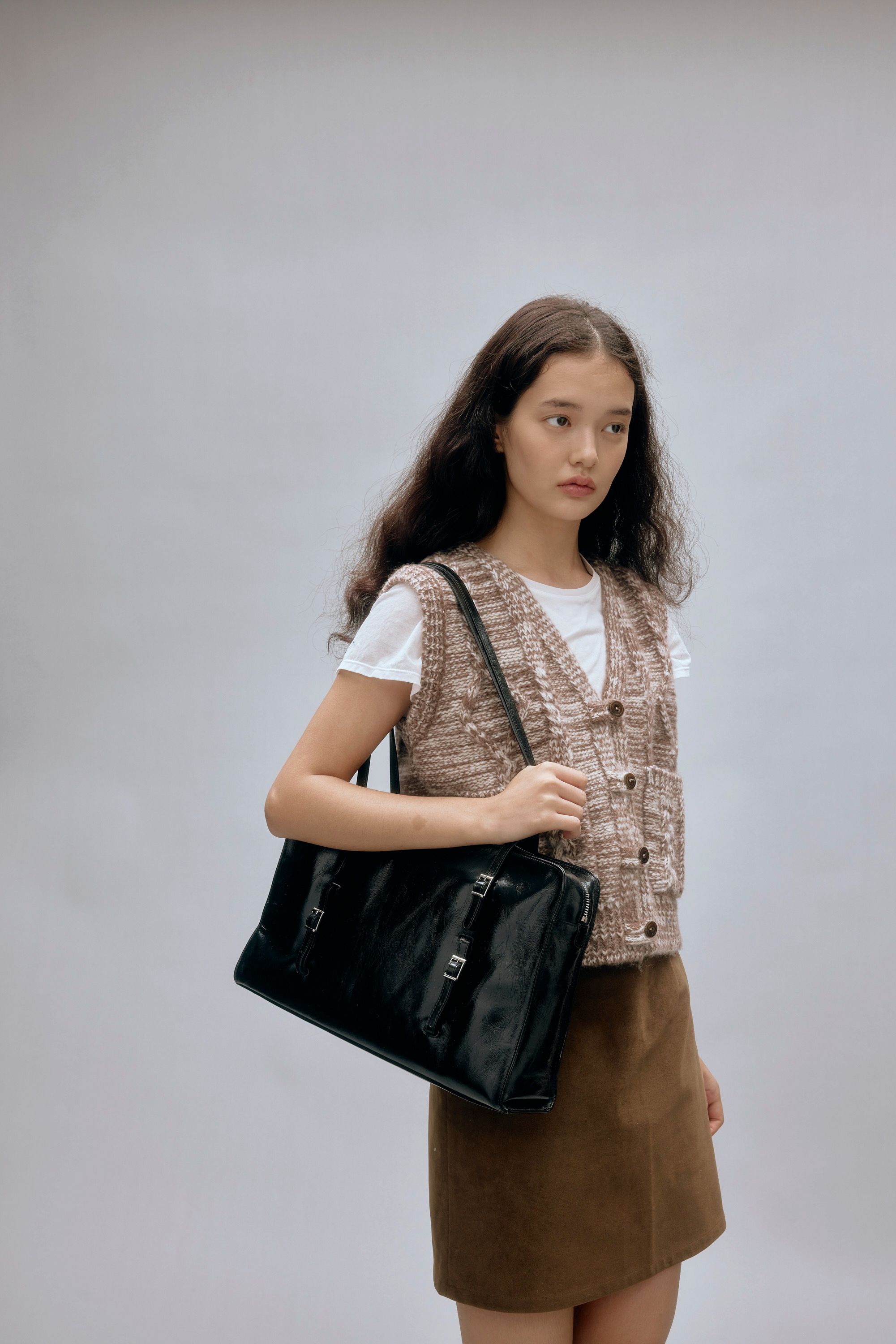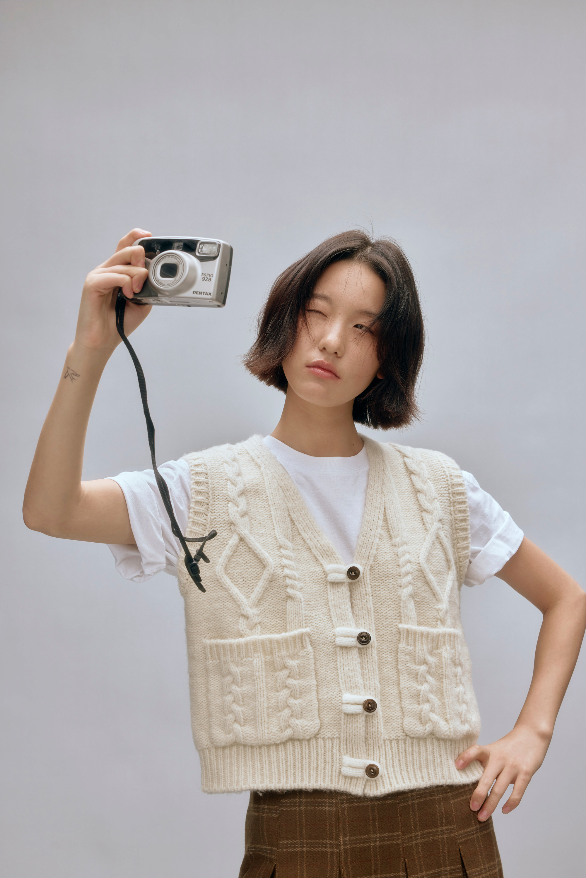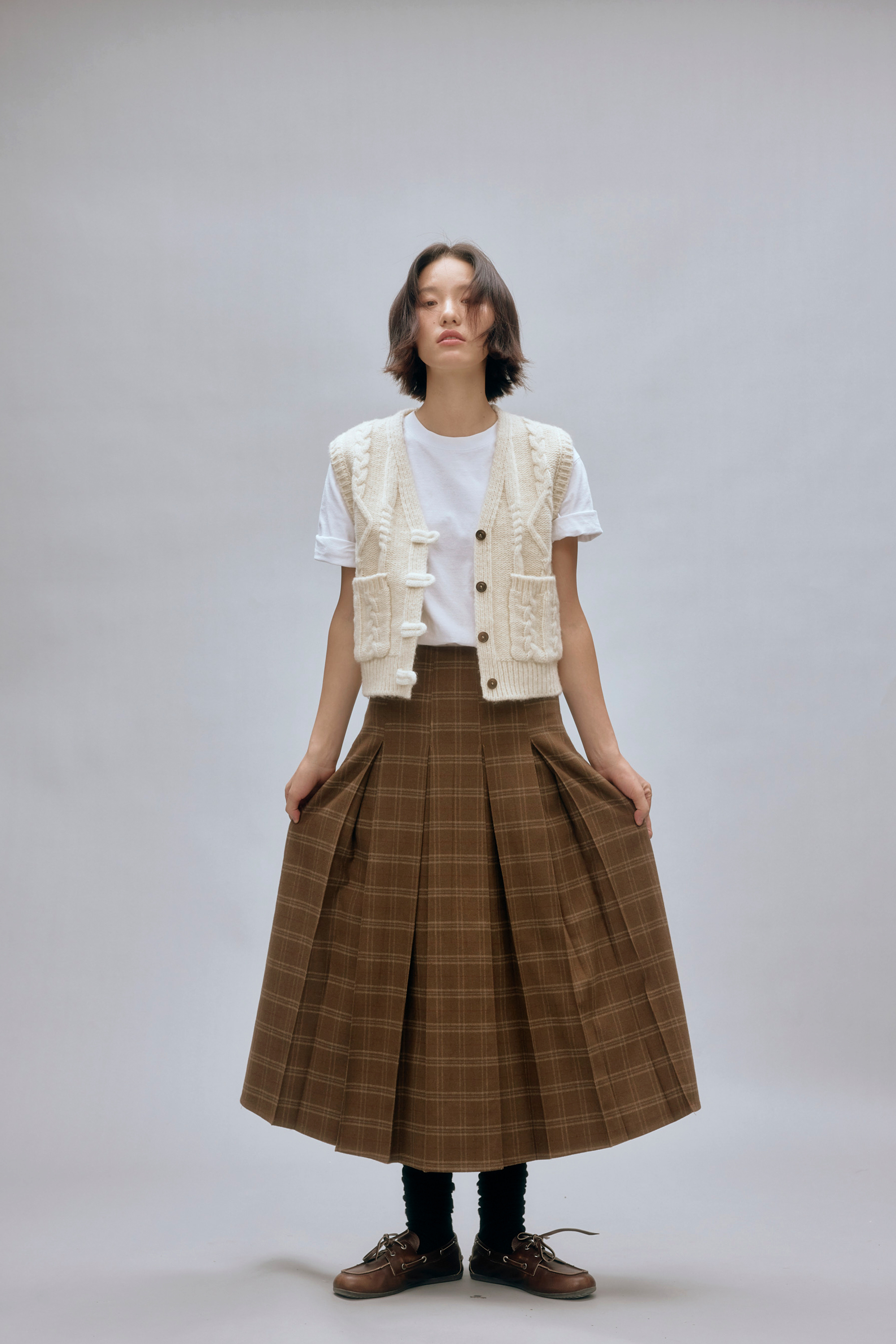 shyshystill/shy202408044/羊毛v领叠穿绞花设计重工小马甲开衫背心