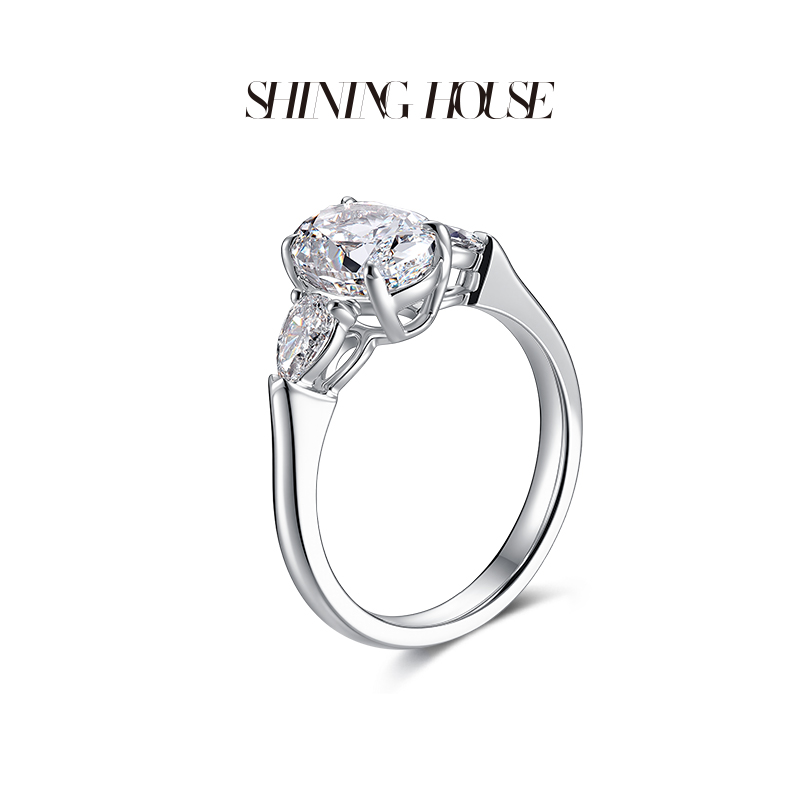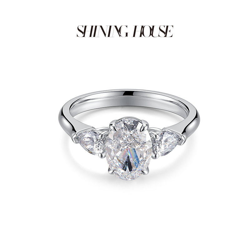 【预售】ShiningHouse[培育] 18k金钻石戒指 椭圆形2克拉钻人工真钻人造钻石K金戒指悦己送礼臻选【此商品不支持7天无理由退货退款】预计3日发货