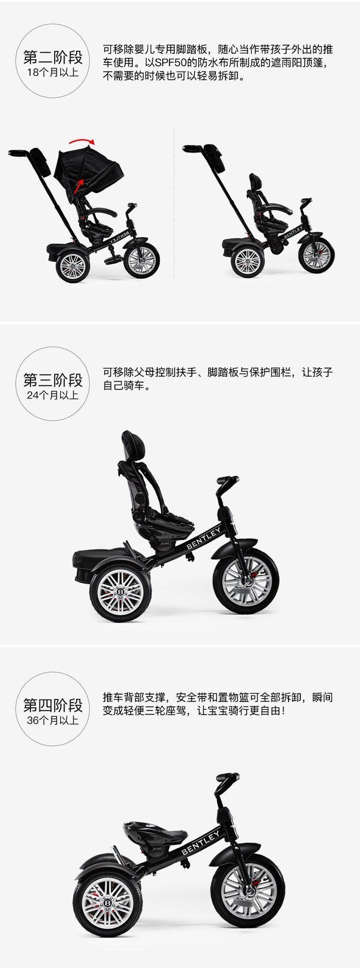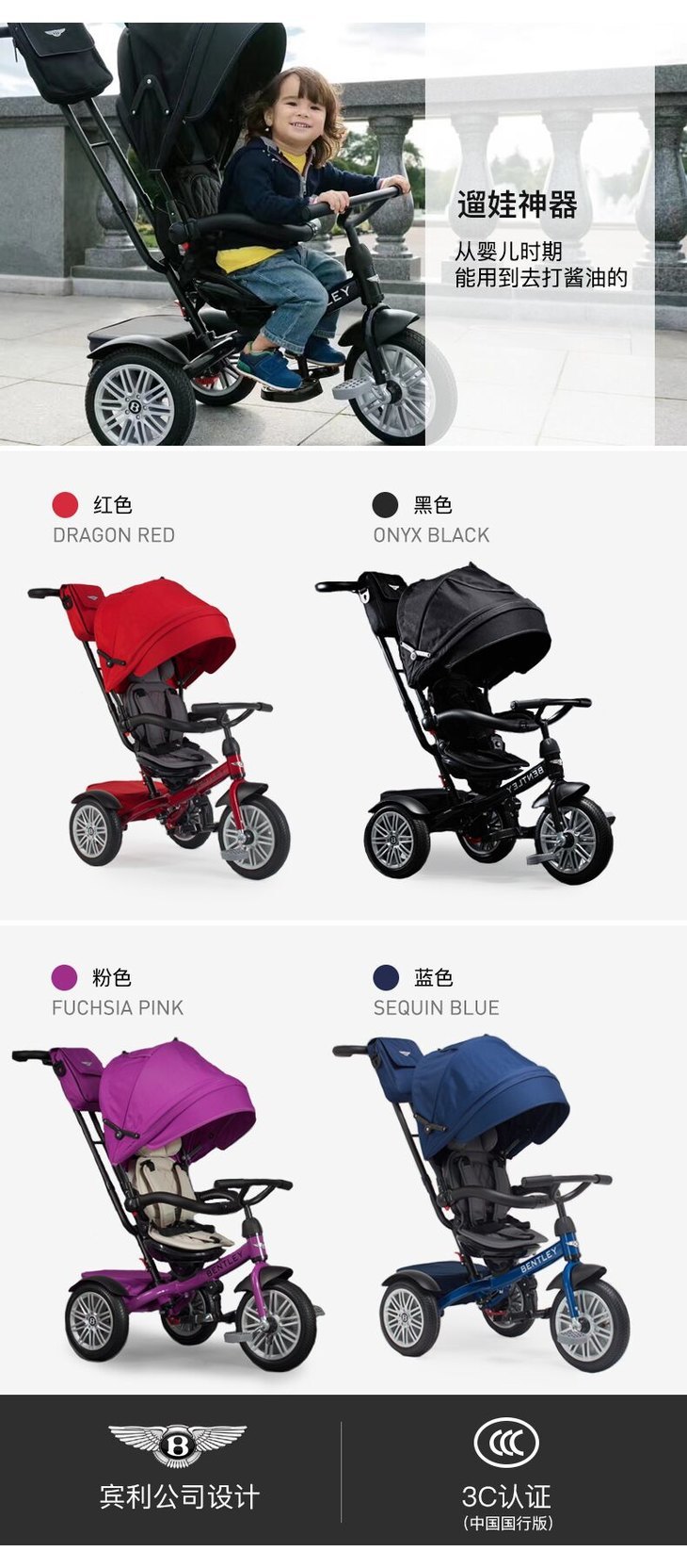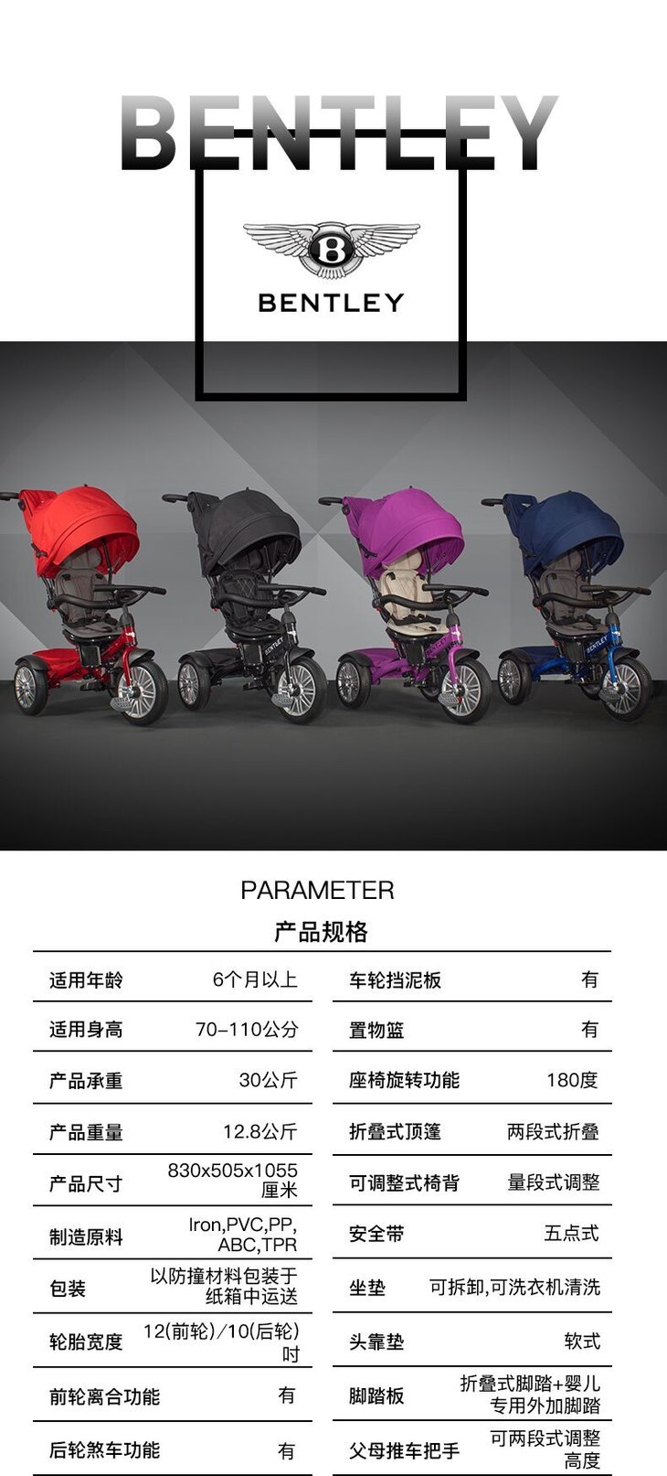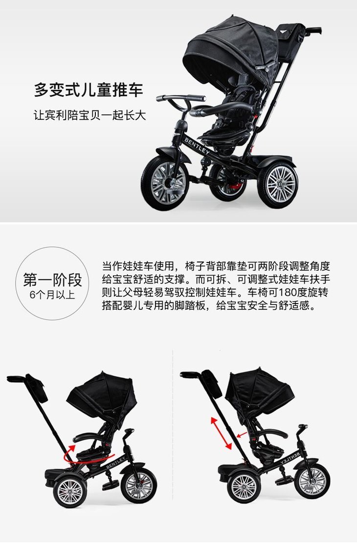 Bentley宾利多功能三轮童车1-2-5岁 自行车多功能手推车三轮脚踏车