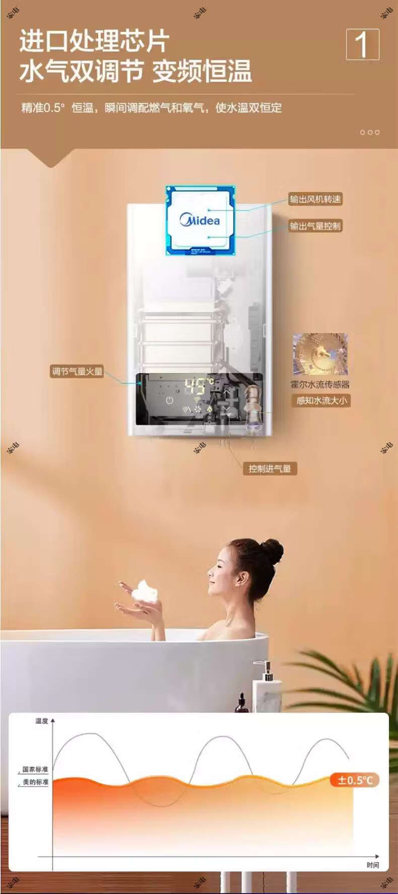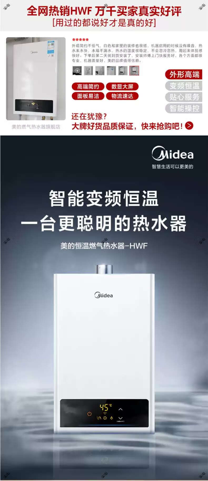 Z美的厨卫大电燃气热水器JSQ27-HWA Pro14升燃气热水器天然气家用智能变频恒温节能低水压启动