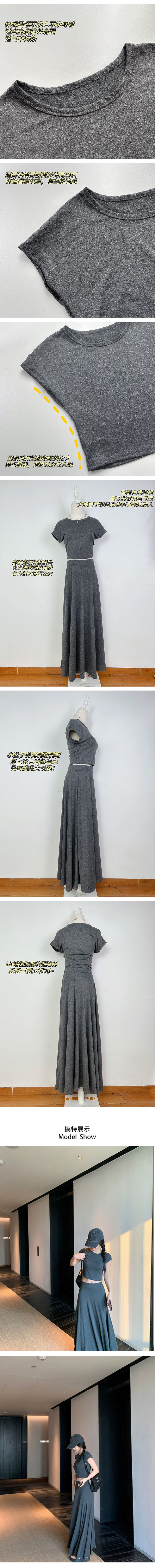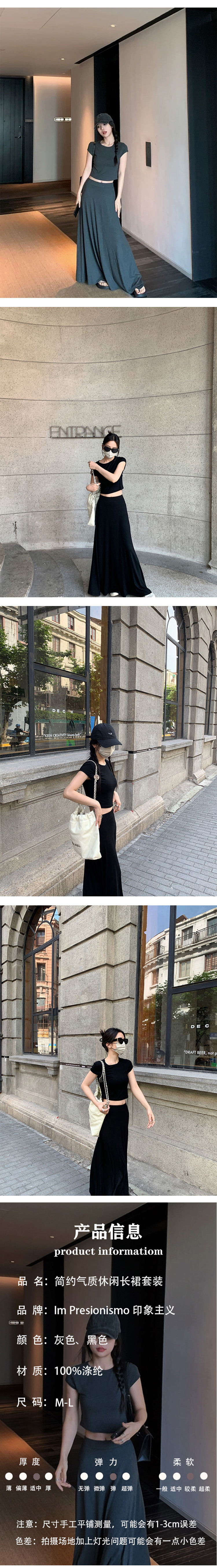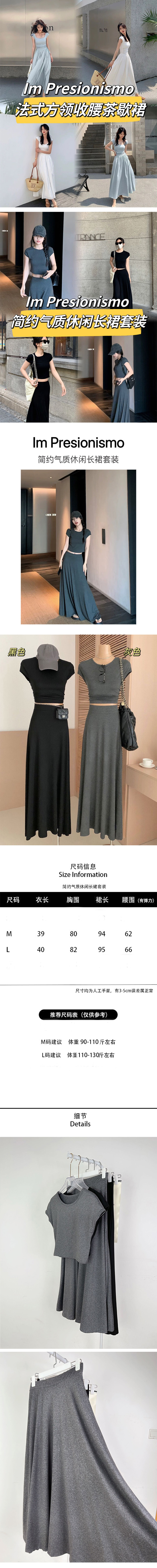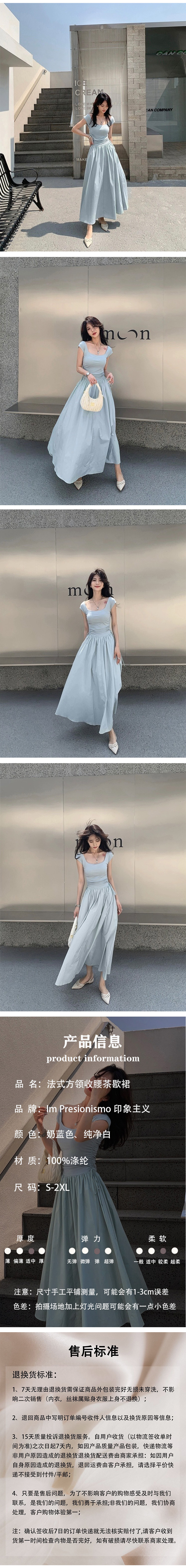 Im Presionismo简约气质休闲长裙套装/法式方领收腰茶歇裙