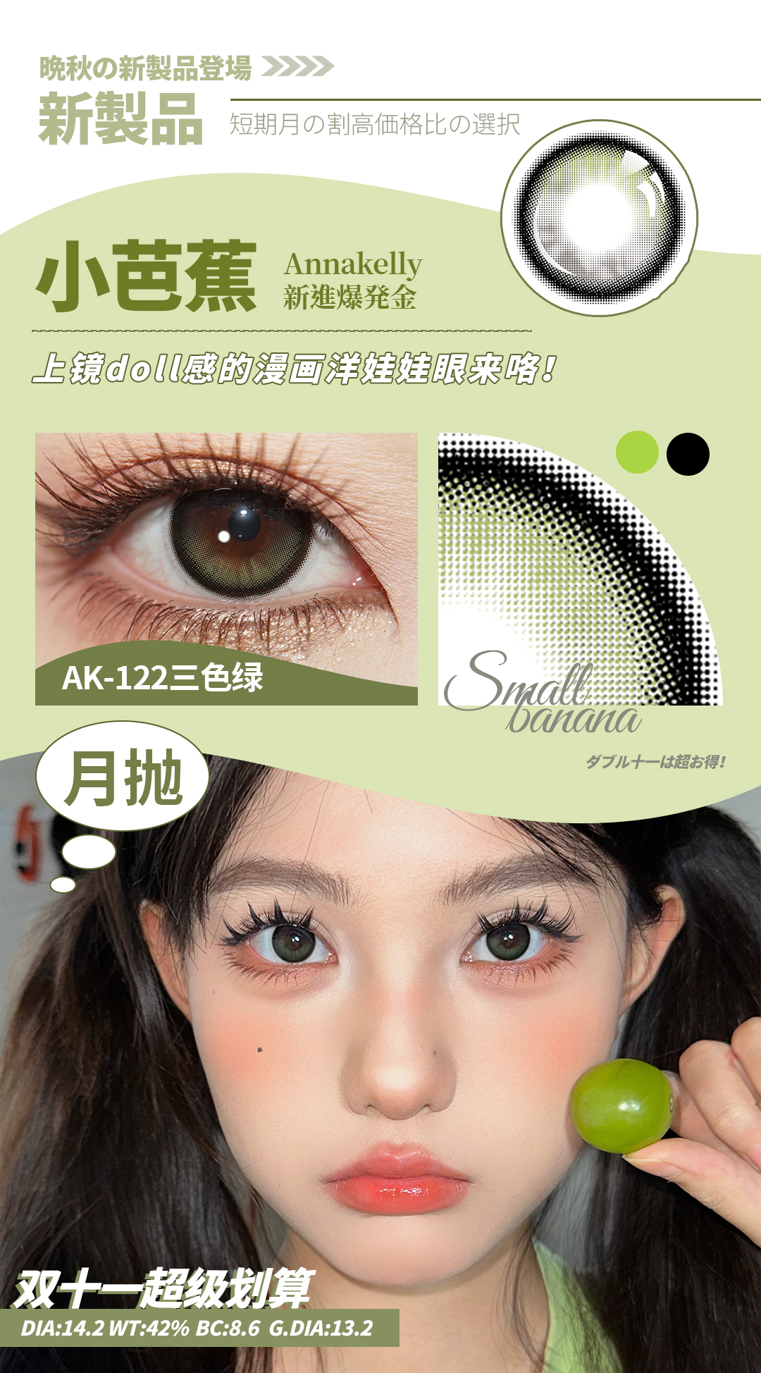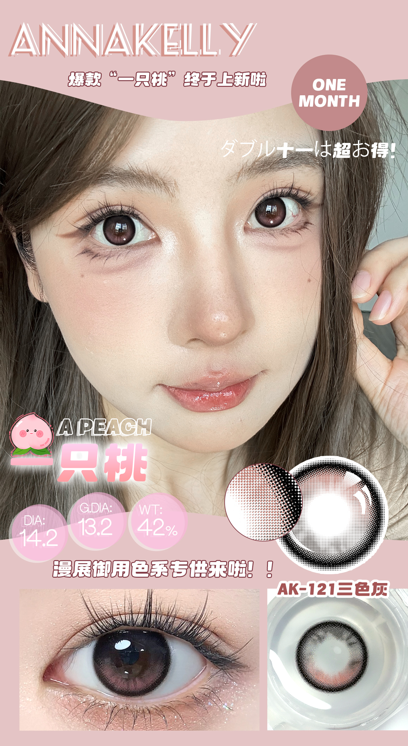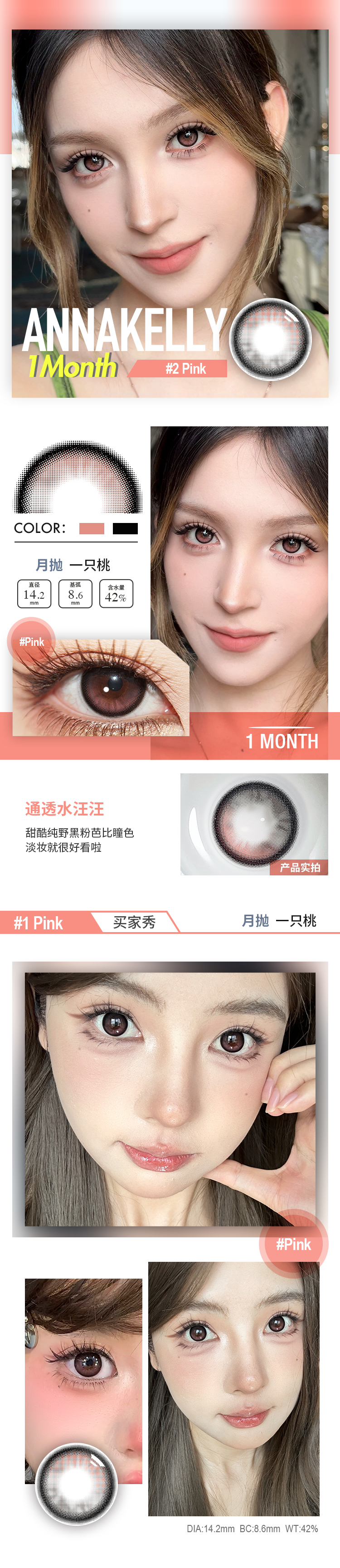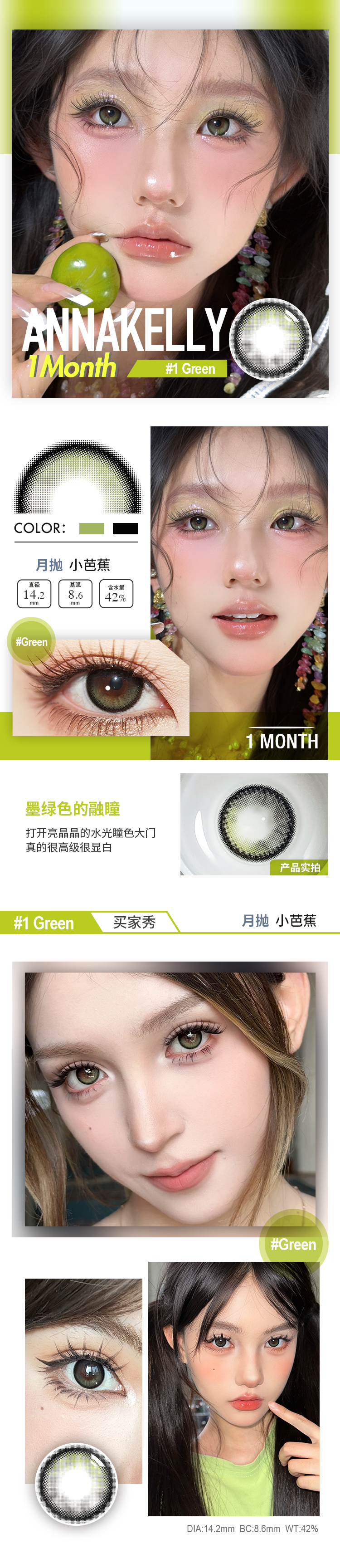 AnnaKelly AK 月抛 小芭蕉/一只桃 (棕绿/粉 14.2mm 最高1000度)