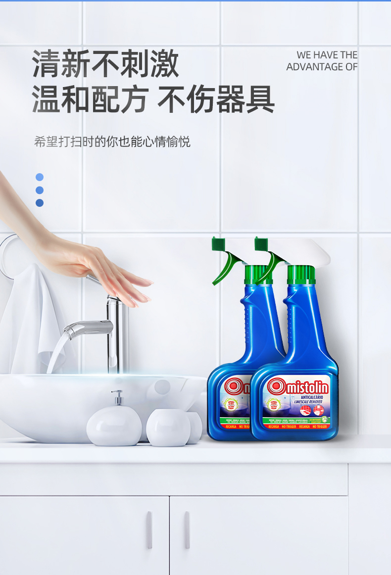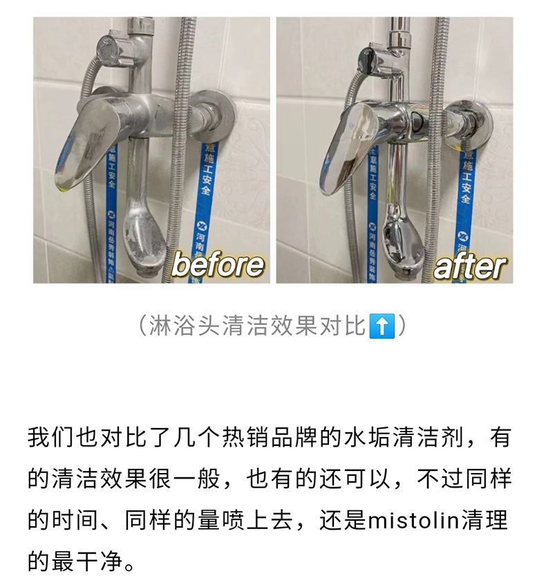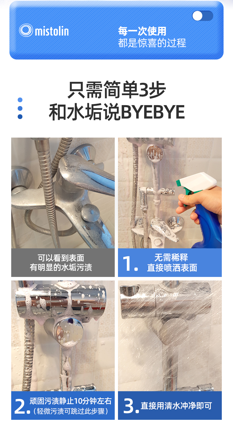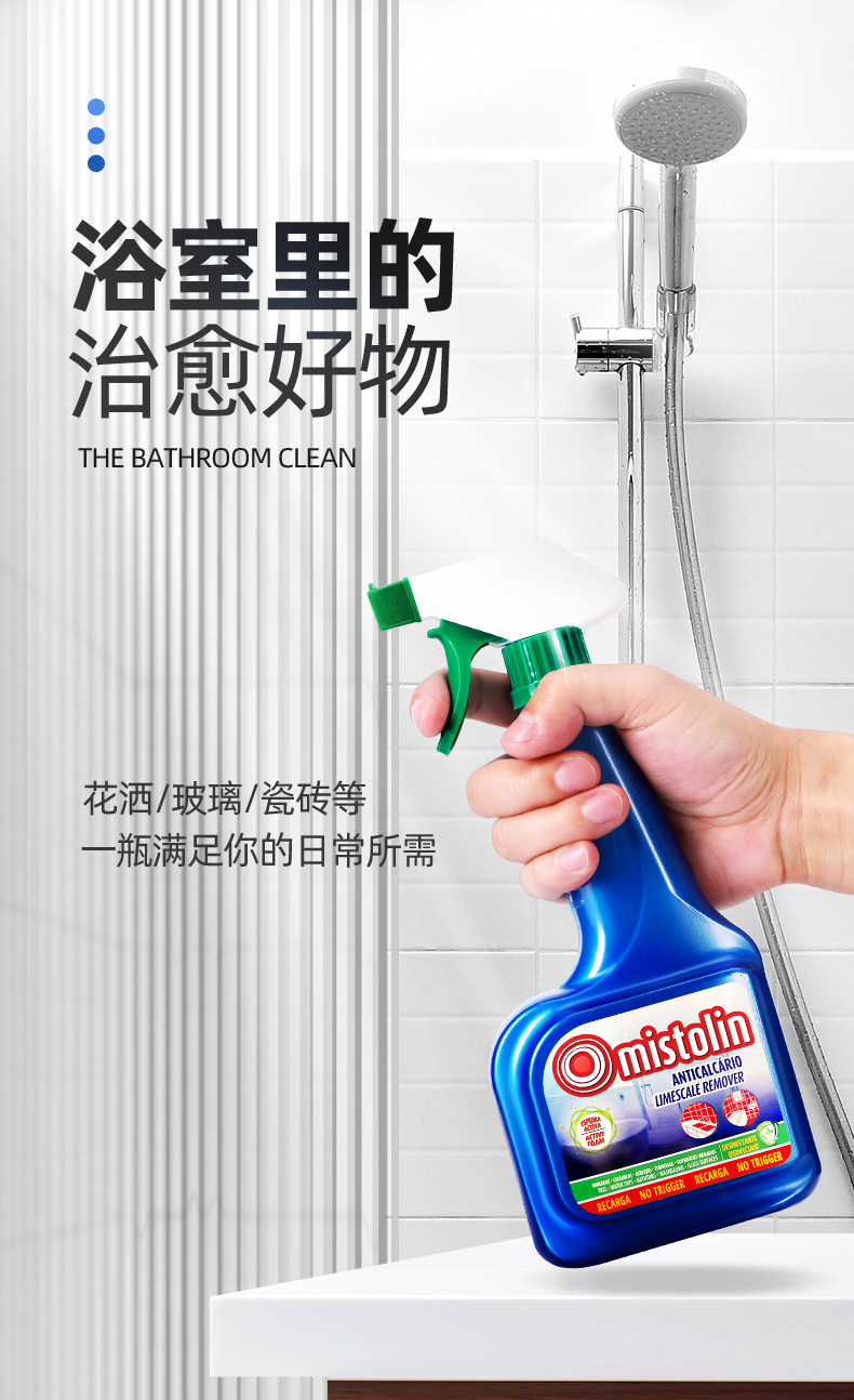 mistolin水垢清除剂淋浴房浴室清洁剂玻璃水渍瓷砖除水垢清洗神器