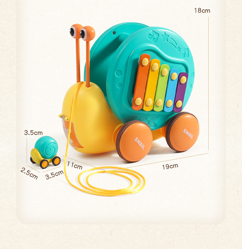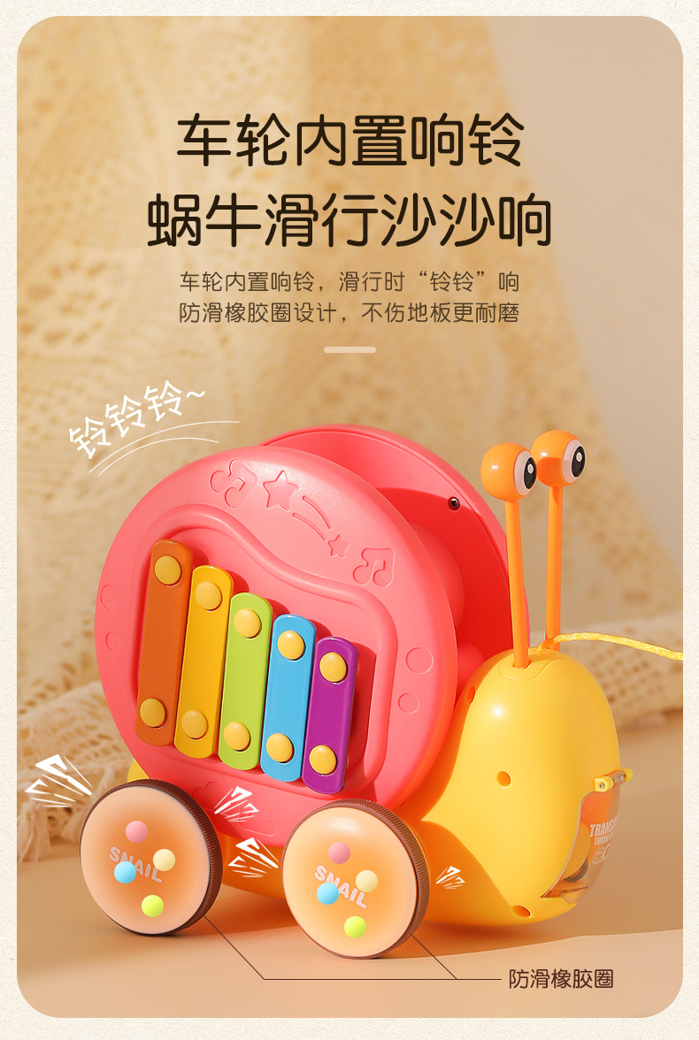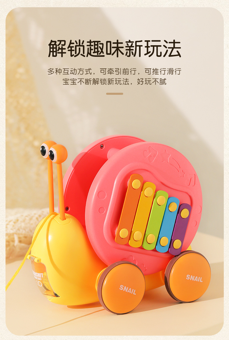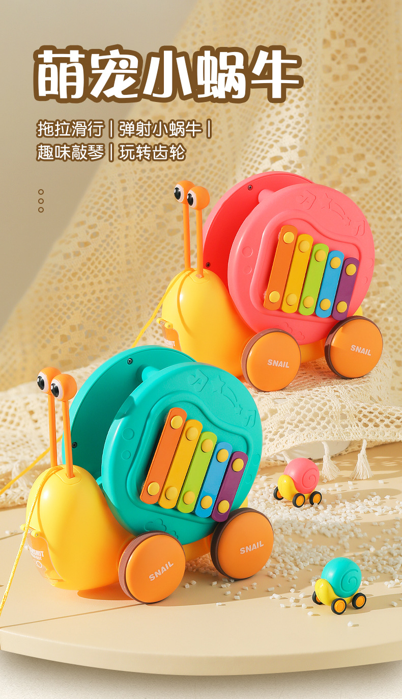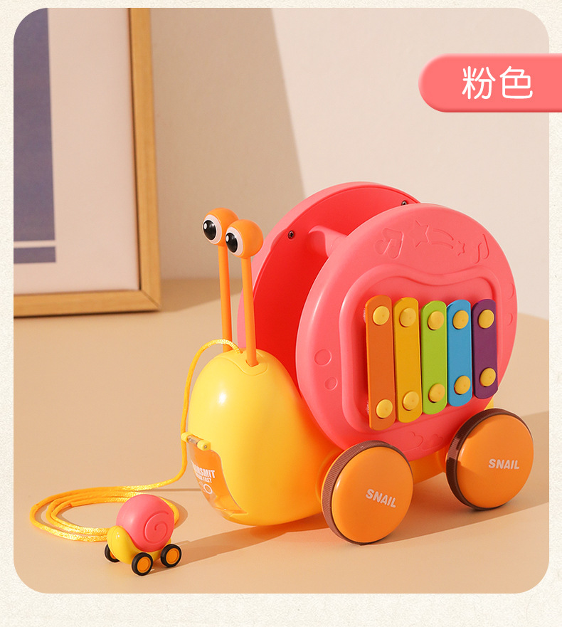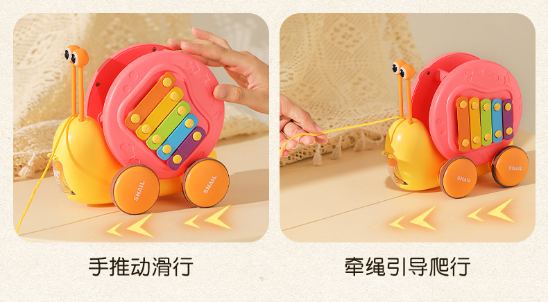 网红牵绳蜗牛敲琴玩具拖线牵引纤绳宝宝拉线学步0-3岁玩具车