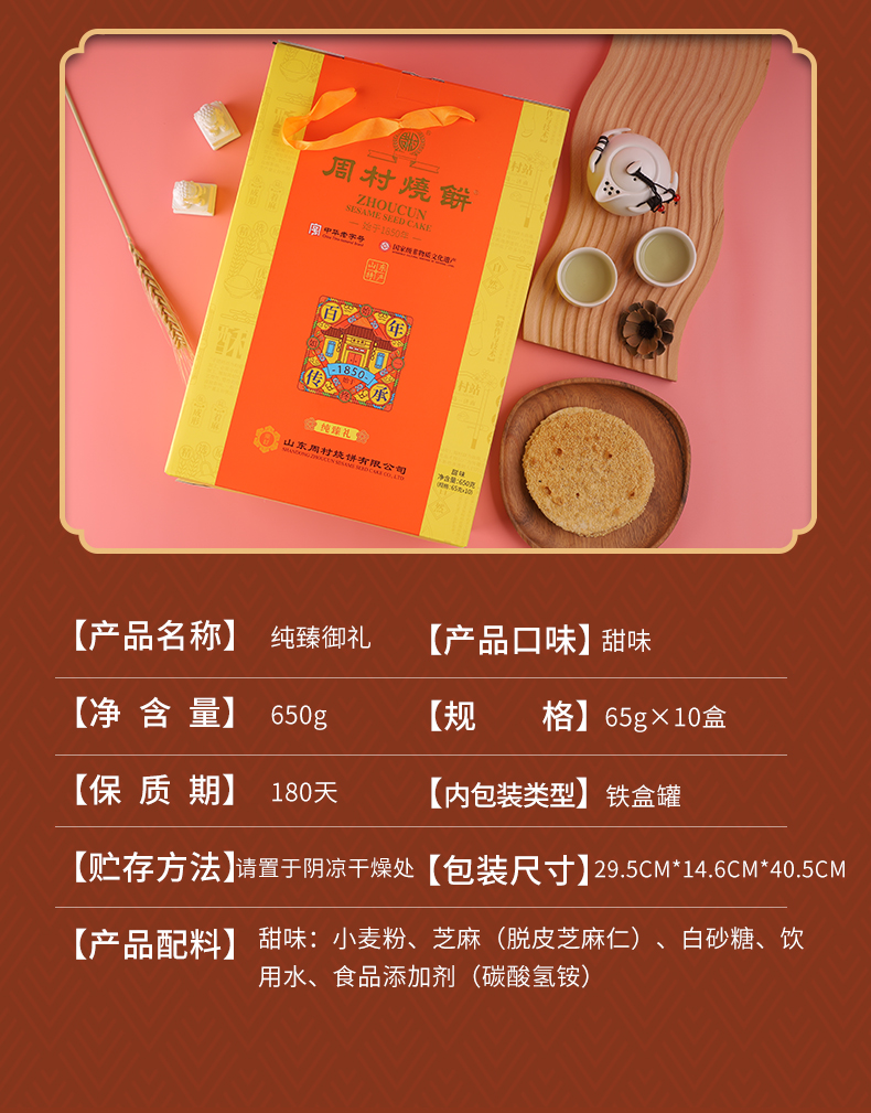 周村牌周村烧饼山东特产纯脆御礼80g*9盒甜味手工零食孕妇可以吃