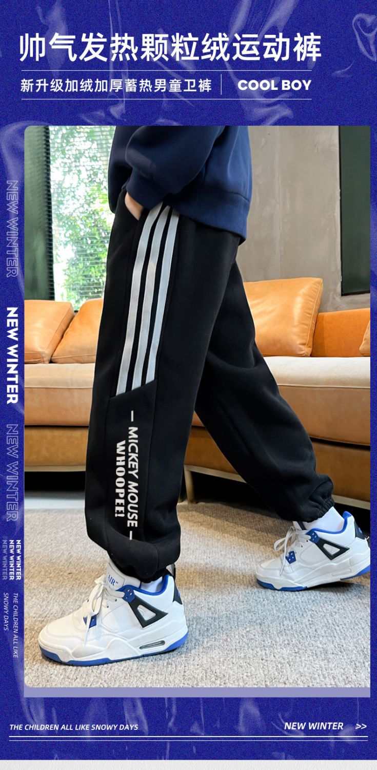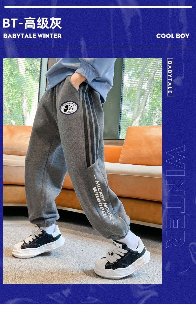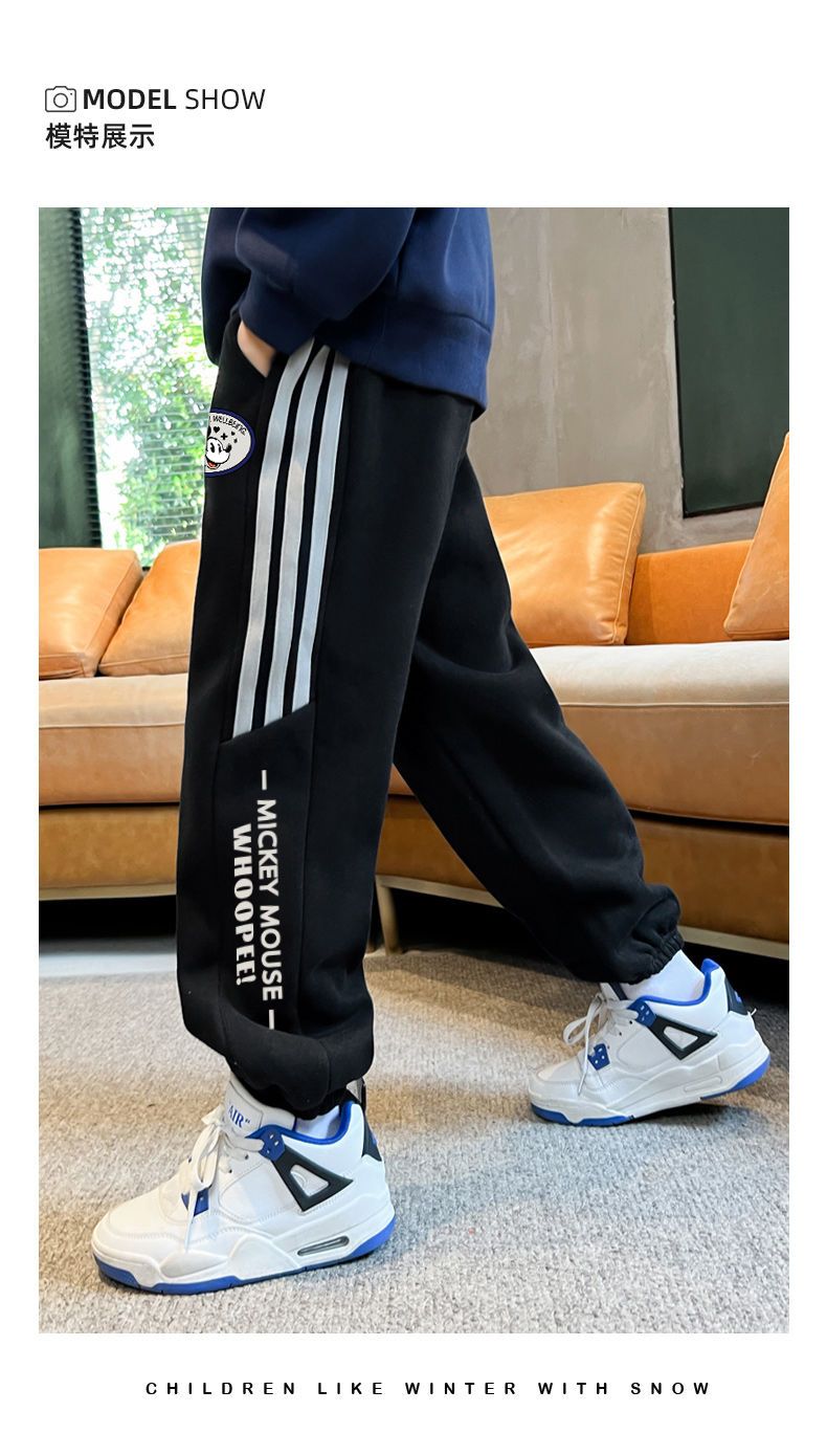 迪士尼男童加绒裤子一体绒儿童加绒裤子加厚男孩保暖裤大童卫裤酷