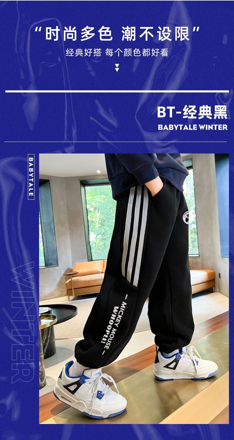 贝田2024新款秋冬款男童裤子加绒加厚冬季儿童酷帅男孩冬装运动裤
