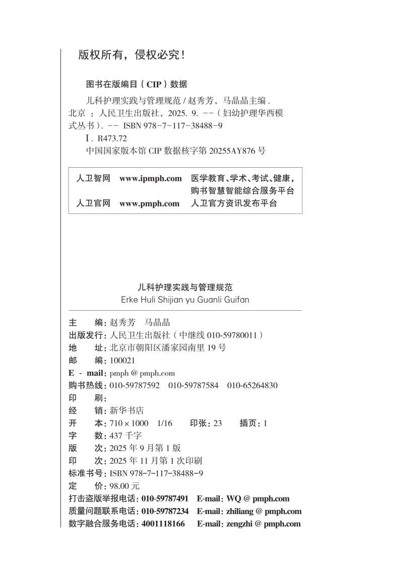 书名:儿科护理实践与管理规范