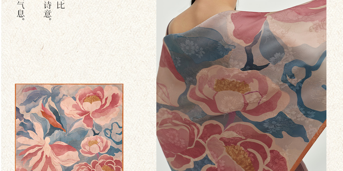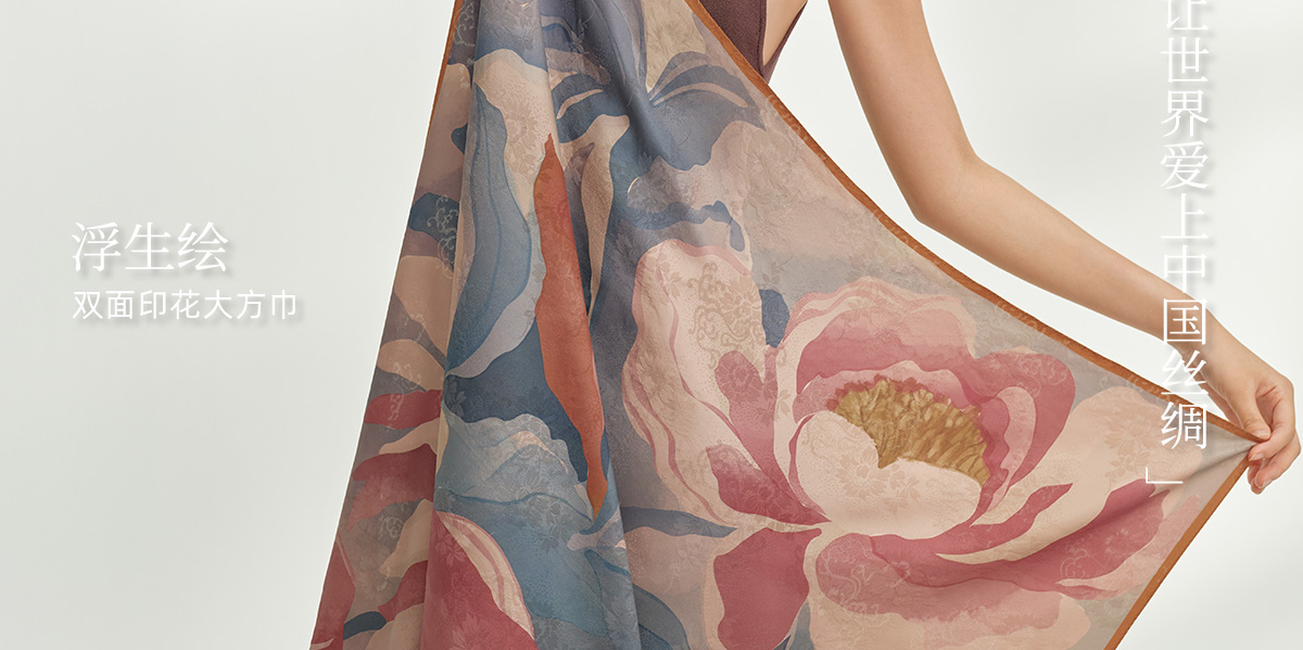 万事利双面印花大方巾-浮生绘