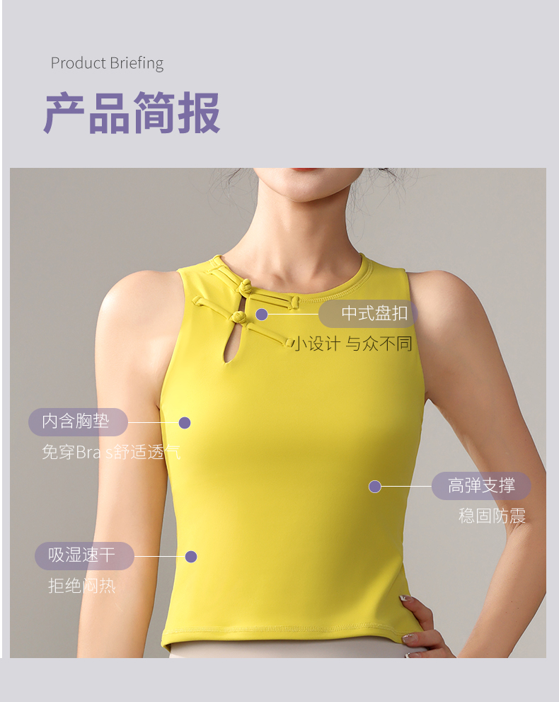 F2023712(梵蒂欧)中国风新款瑜伽背心(含胸垫)F2023712