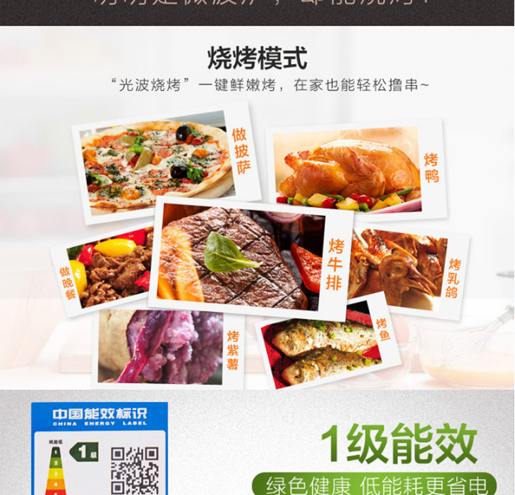 格兰仕 微波炉 光波炉 烤箱一体 HC-83210FB 家用 23L平板易清洗智能解冻组合烧烤加热快