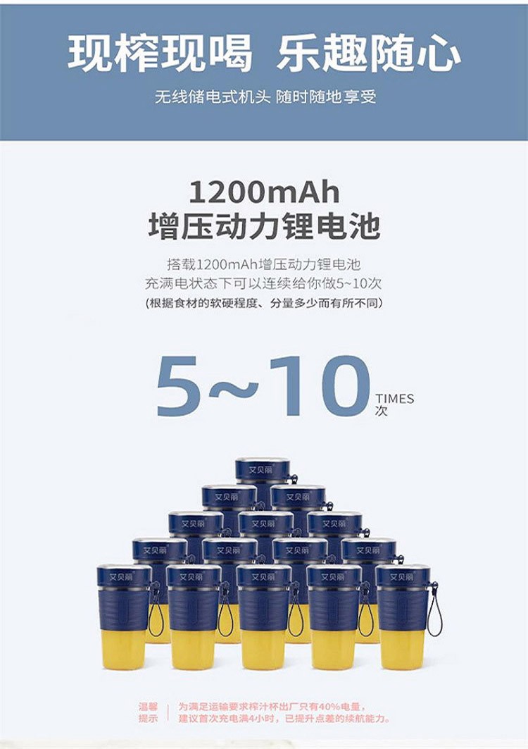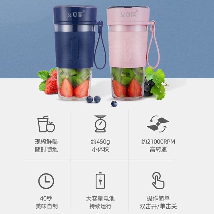 Abereve 家用充电便携式榨汁机果汁杯PW-08 蓝色