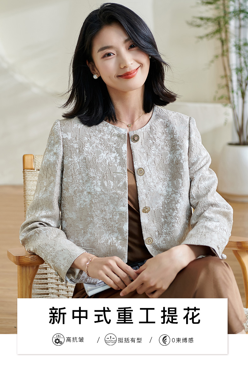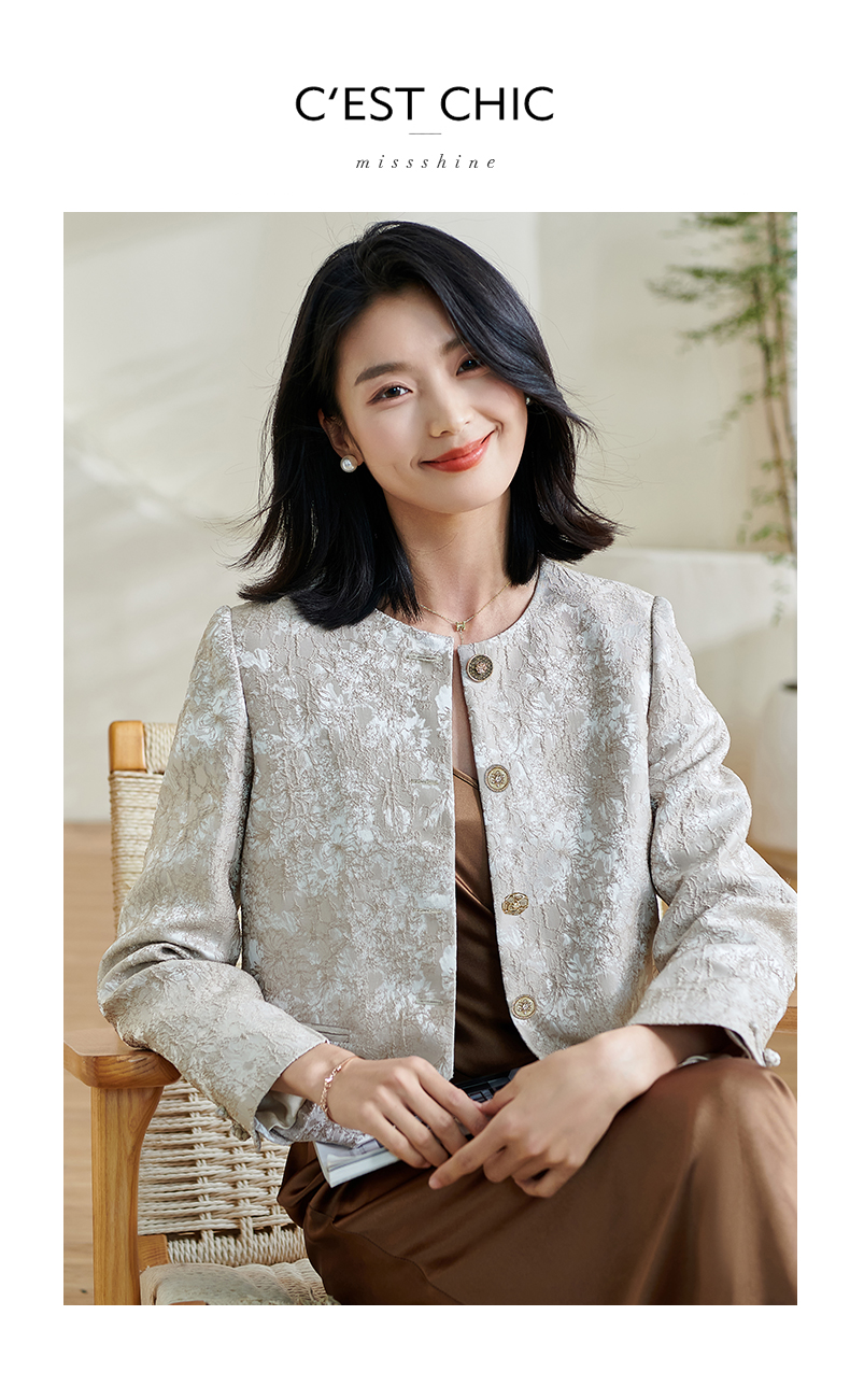 剩XXL 米思阳2026春季新款中式国风高级感定制提花短外套圆领宽松上衣女0212