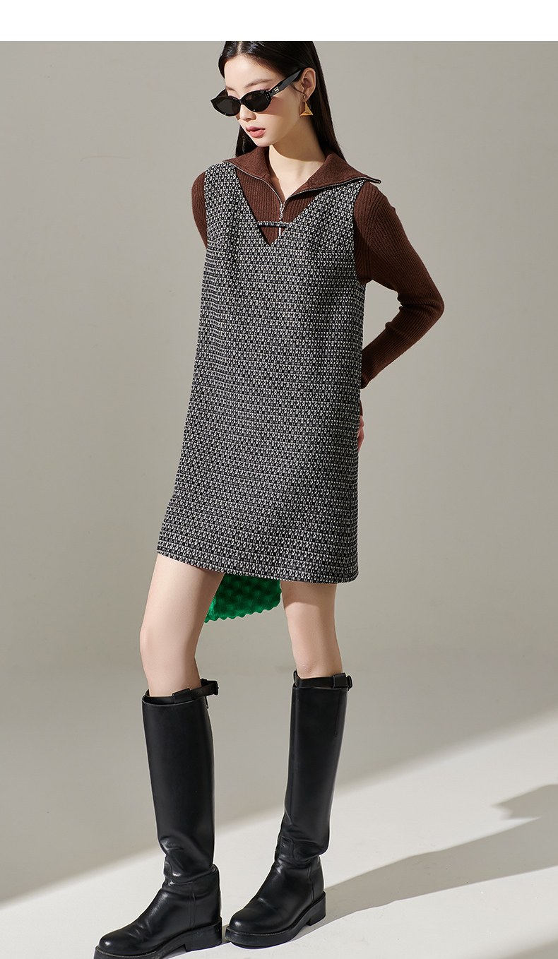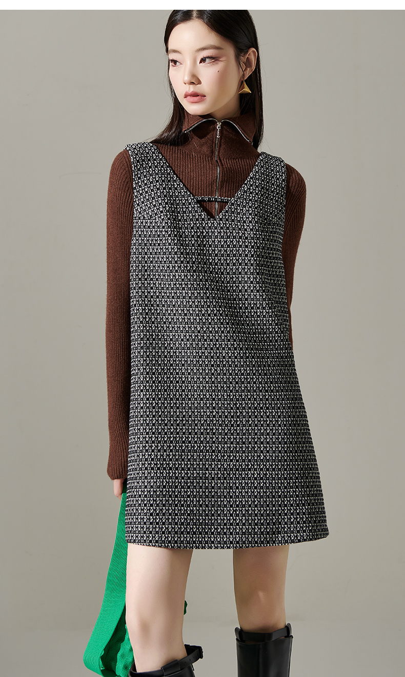 剩M/L 芳外2025时尚气质无袖连衣裙v领针织搭配宽松背心一步裙女士1515