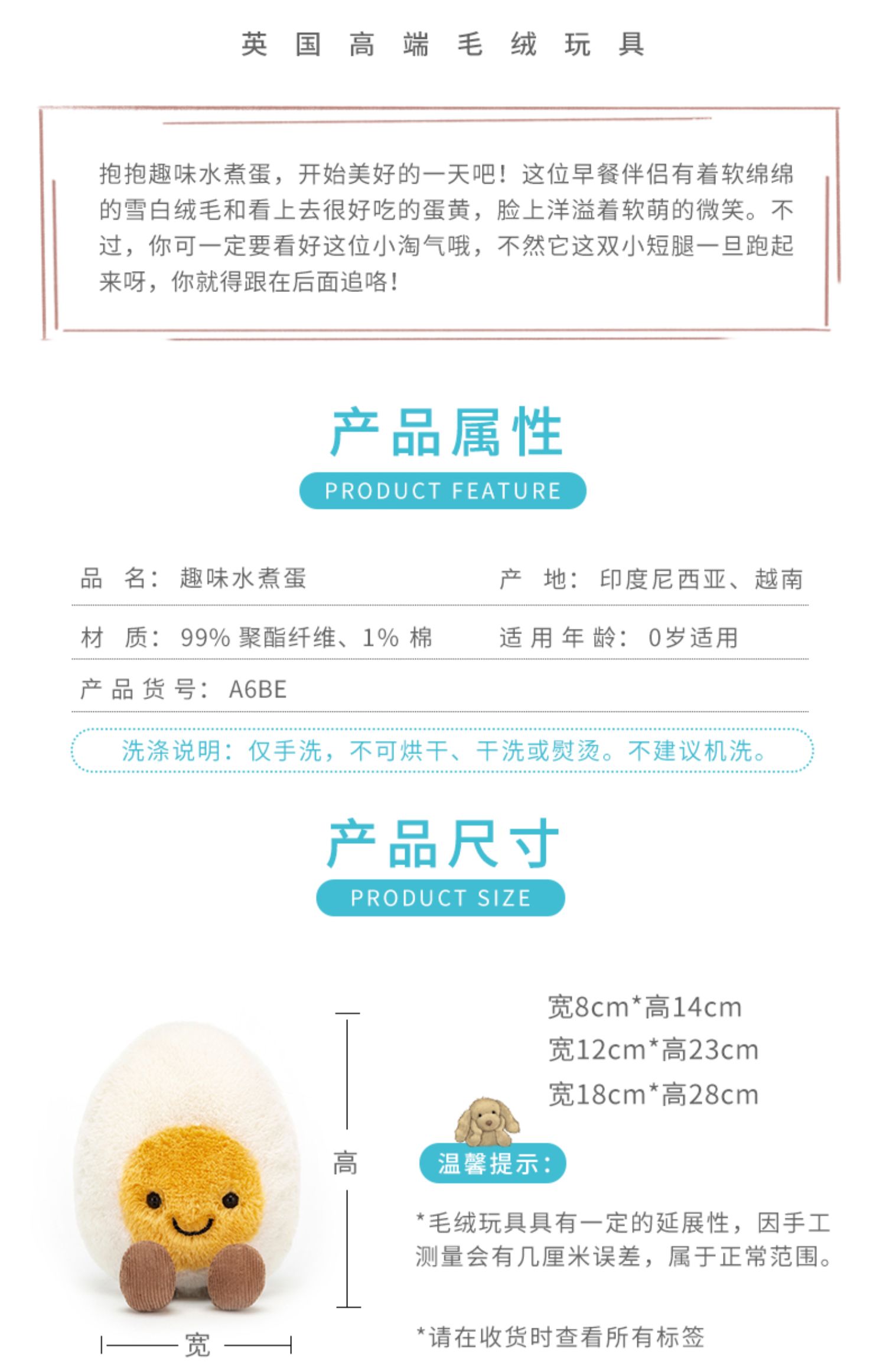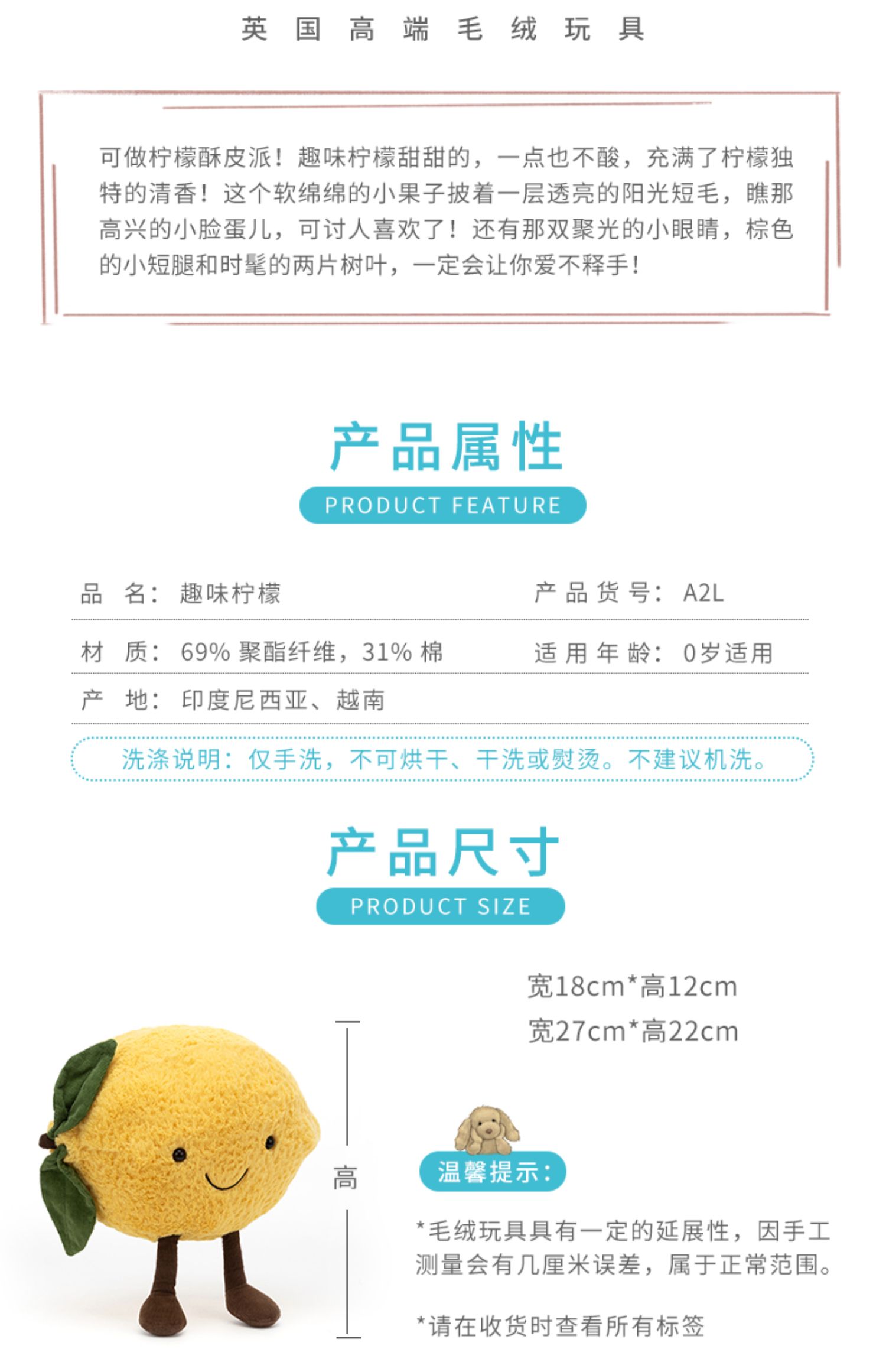 Jellycat 趣味小柑橘/甜甜圈 /水煮蛋/牛油果/柠檬/魔鬼蛋