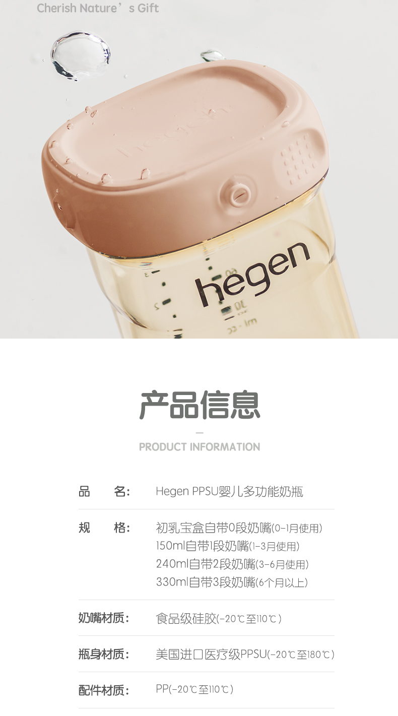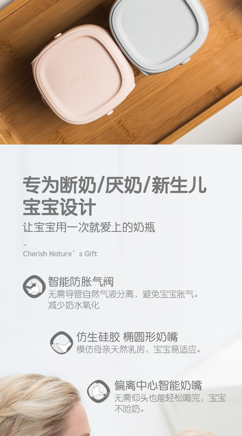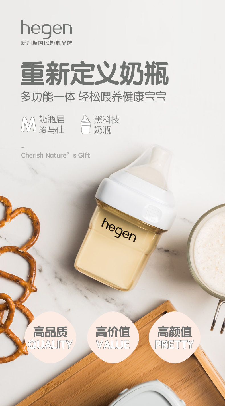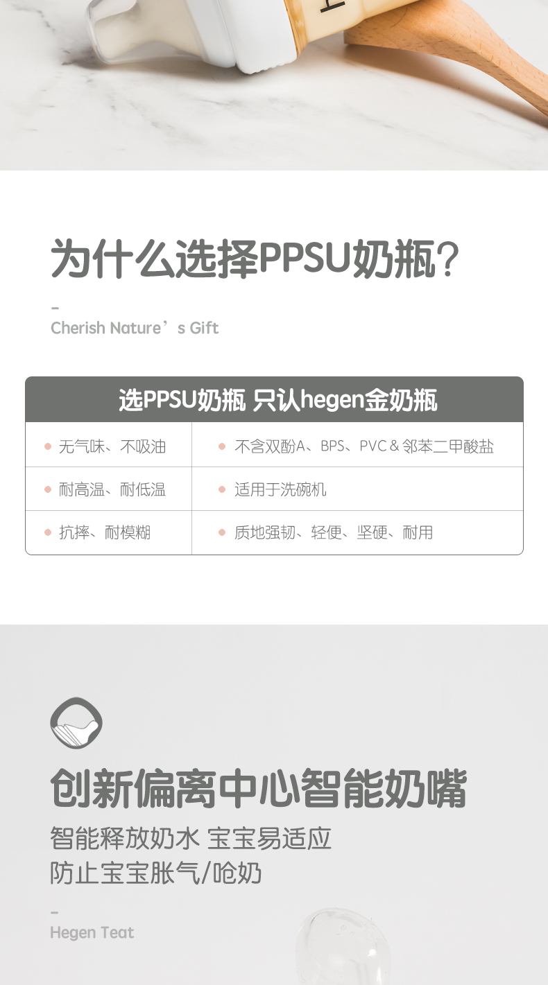 Hegen新生儿宽口奶瓶PPSU婴儿断奶神器大宝宝仿母乳耐摔