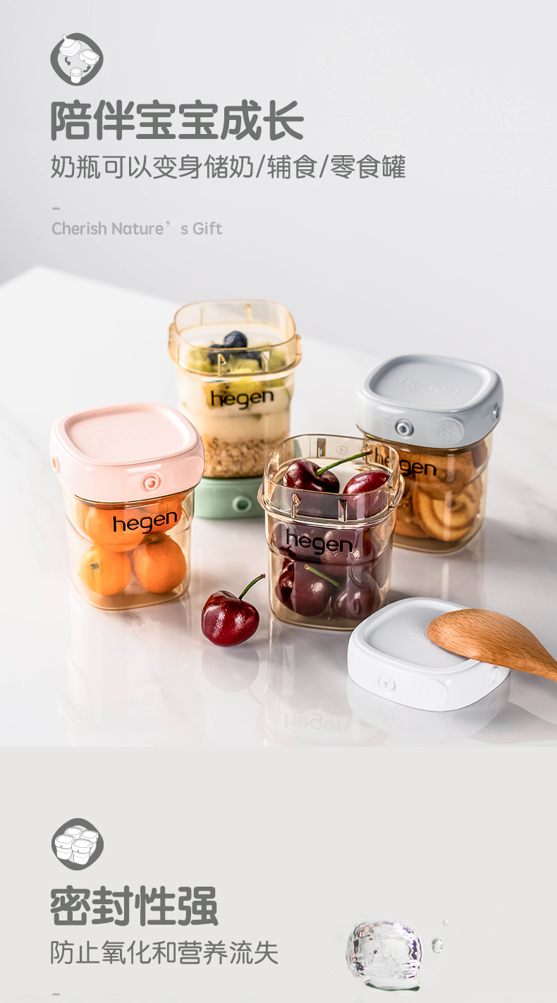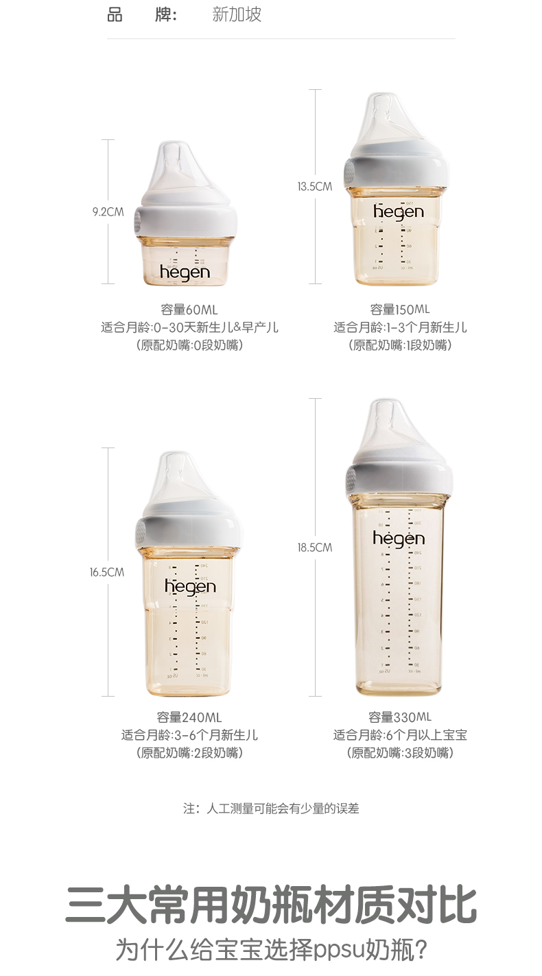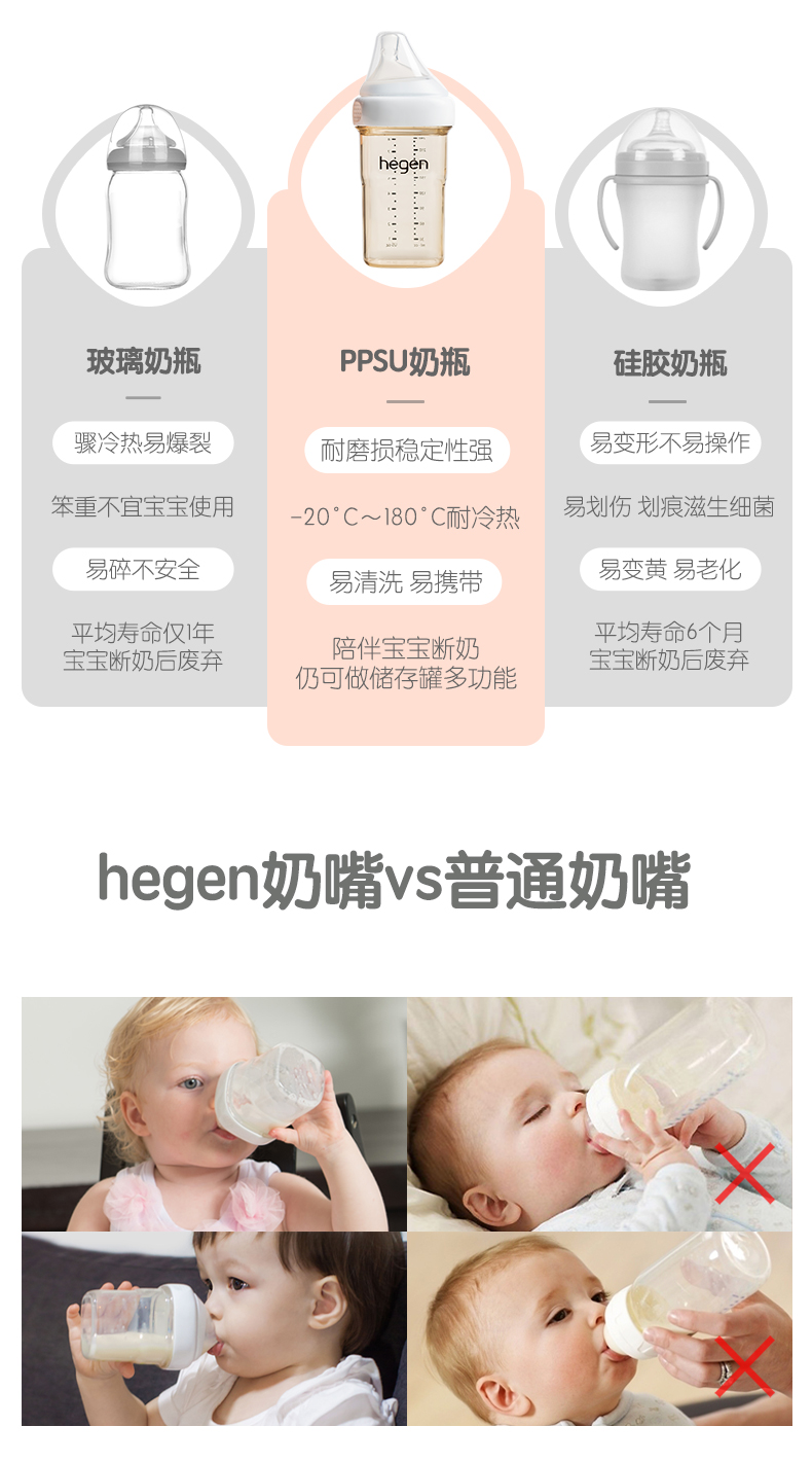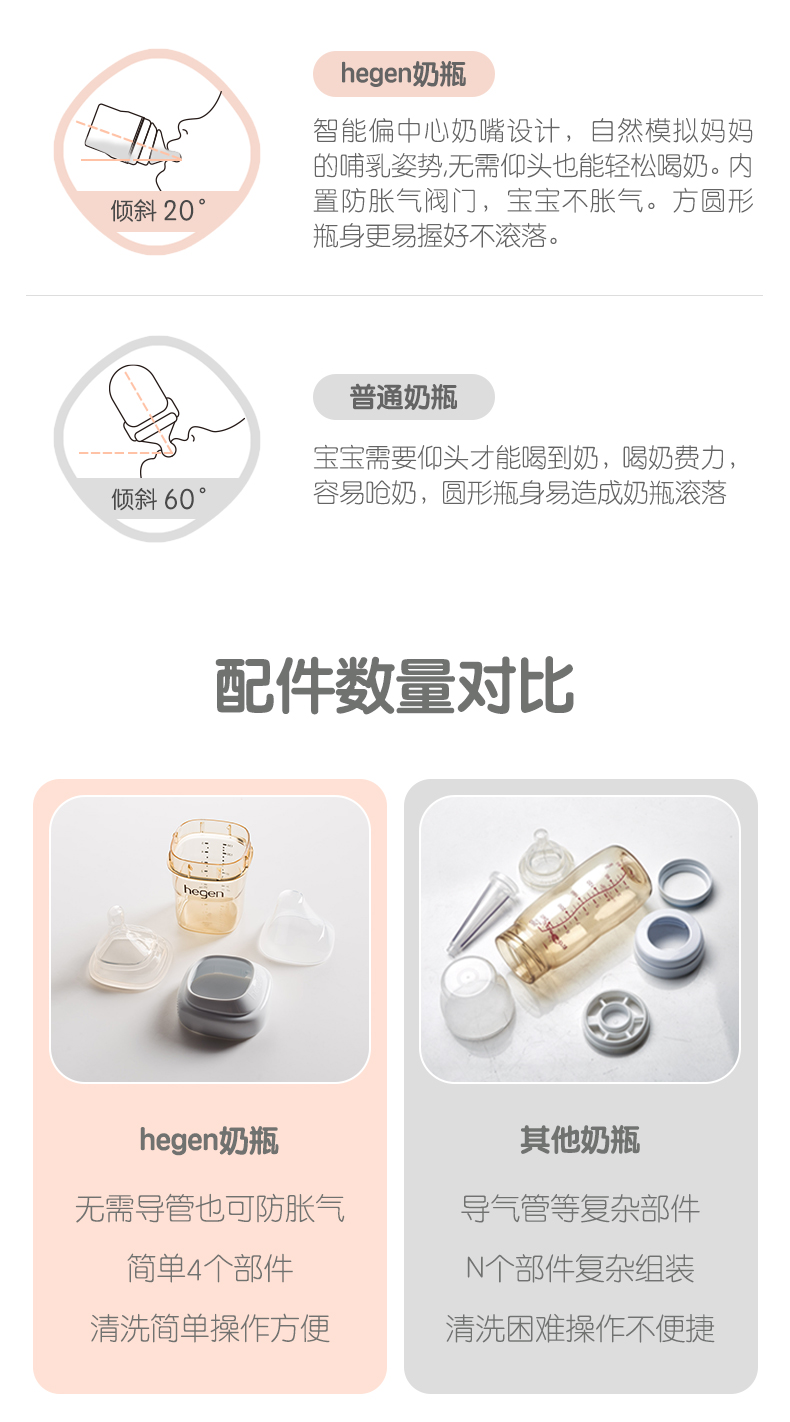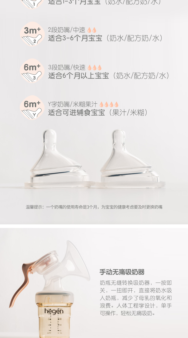 Hegen新生儿宽口奶瓶PPSU婴儿断奶神器大宝宝仿母乳耐摔