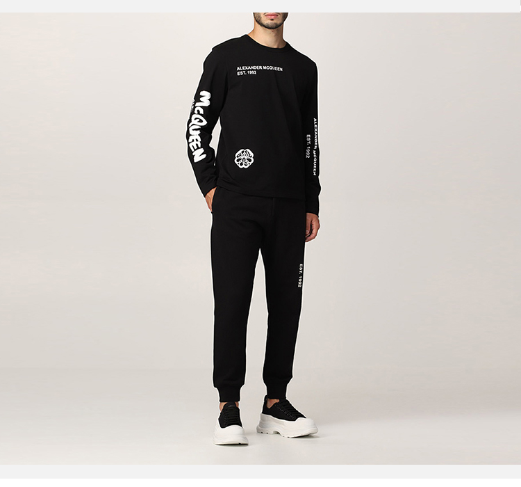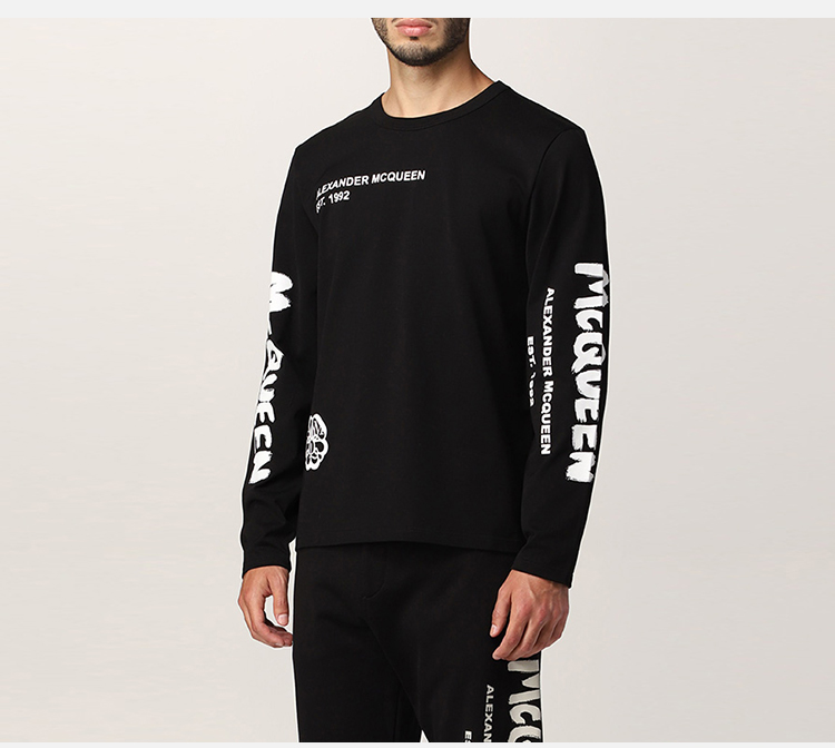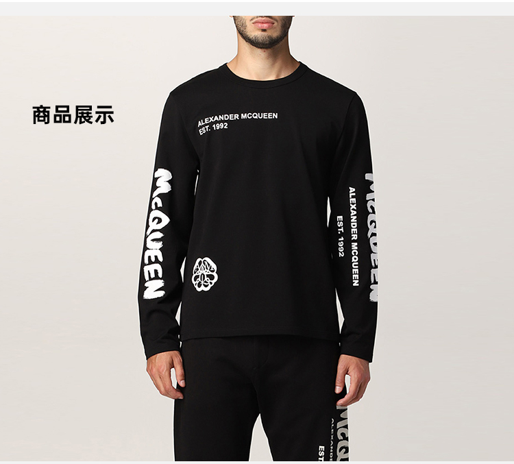 ALEXANDER MCQUEEN 亚历山大·麦昆 男士圆领长袖T恤 黑色 662564 QRZ67 0901