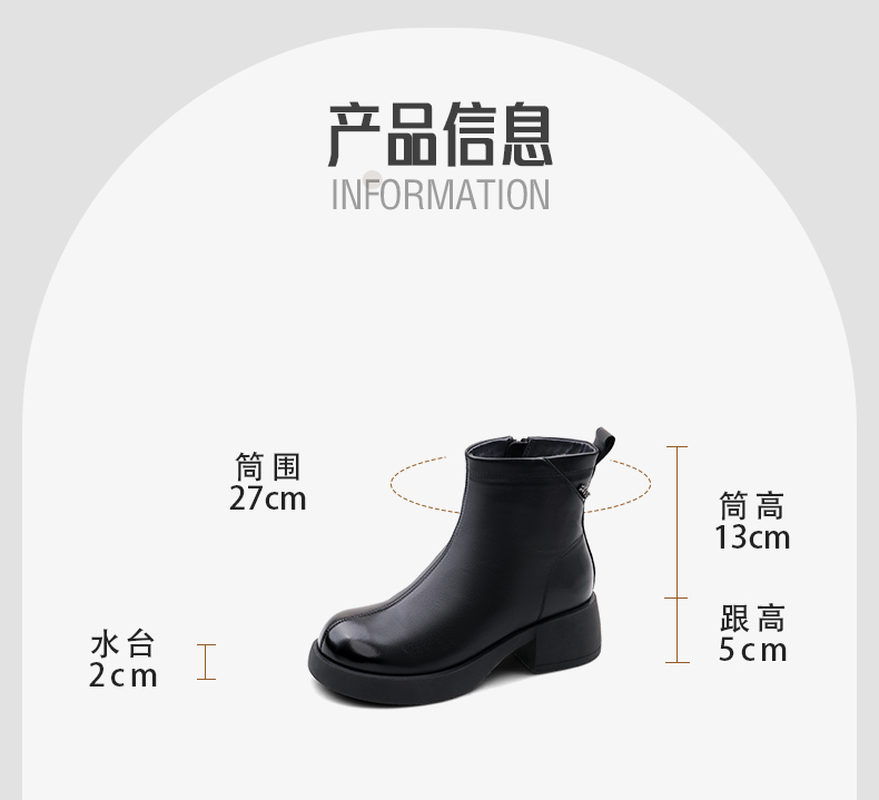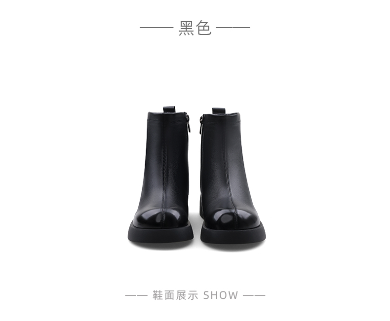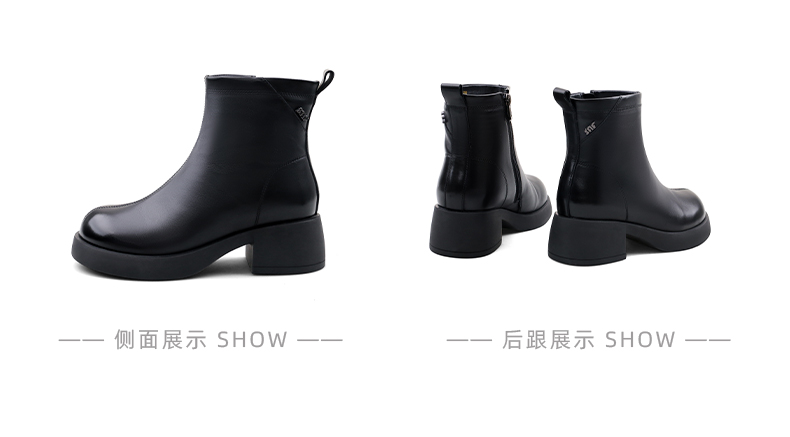 Safiya/索菲娅2024冬真皮复古英伦风时尚厚底粗跟套筒加绒短靴 SF4411A206