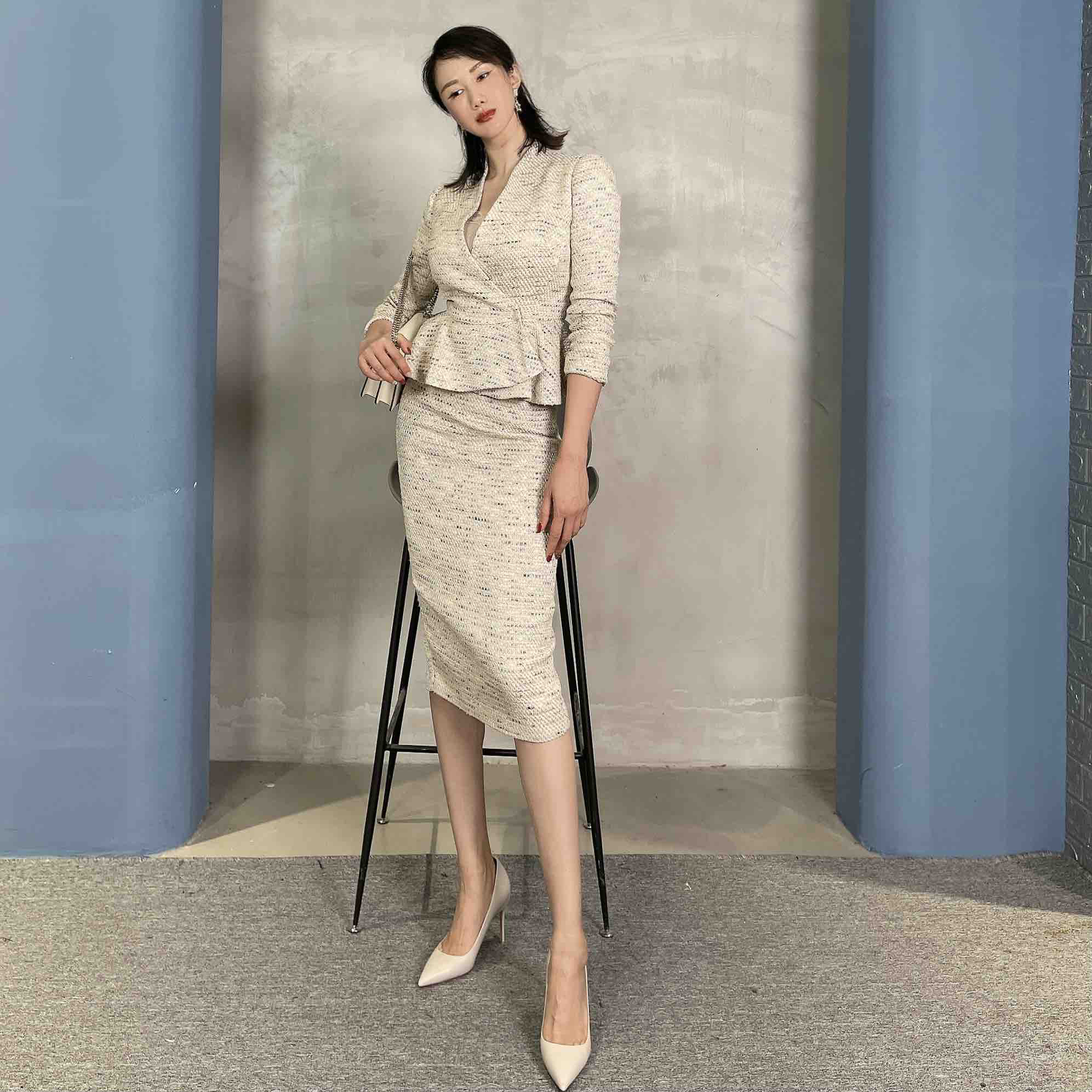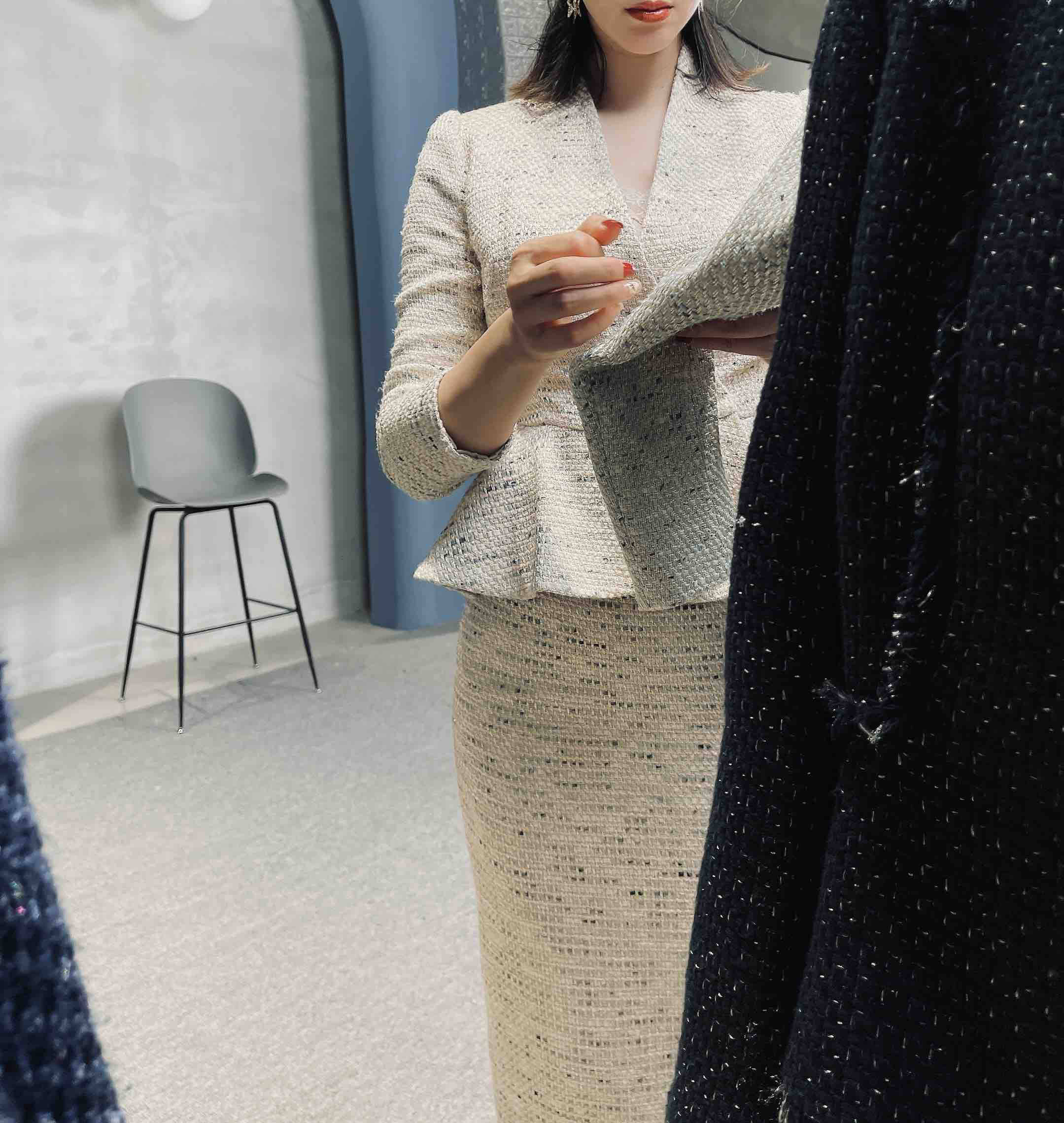 孤品-8303193B 荷叶边小香套裙颈袖添香()不退可换