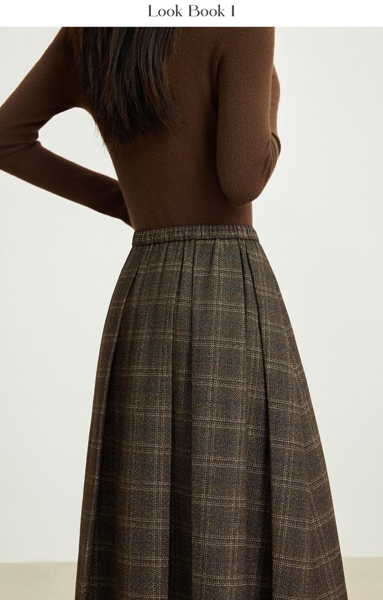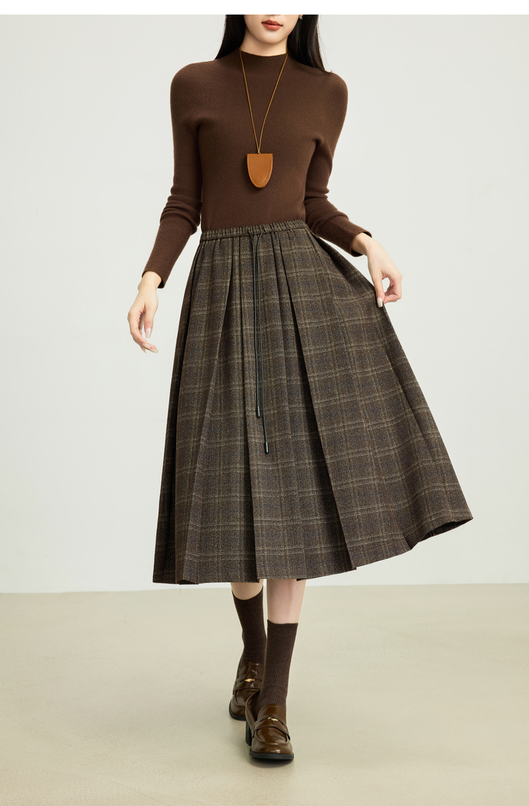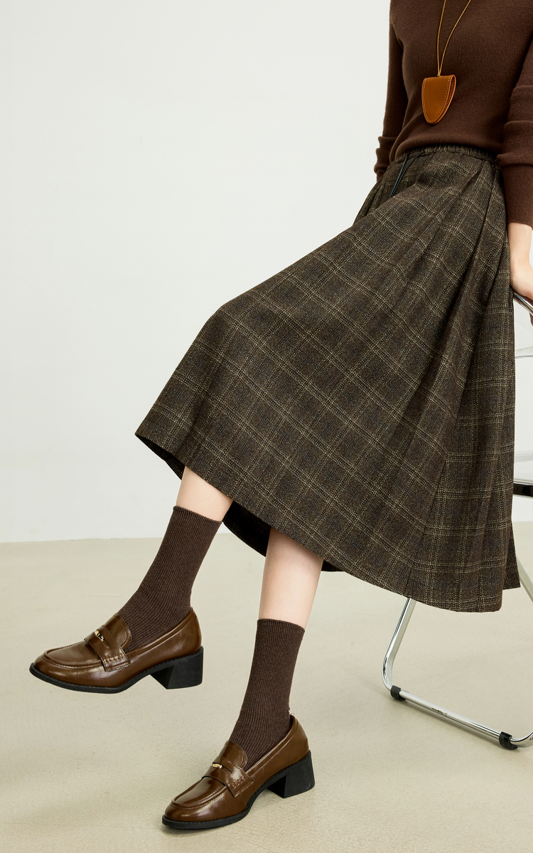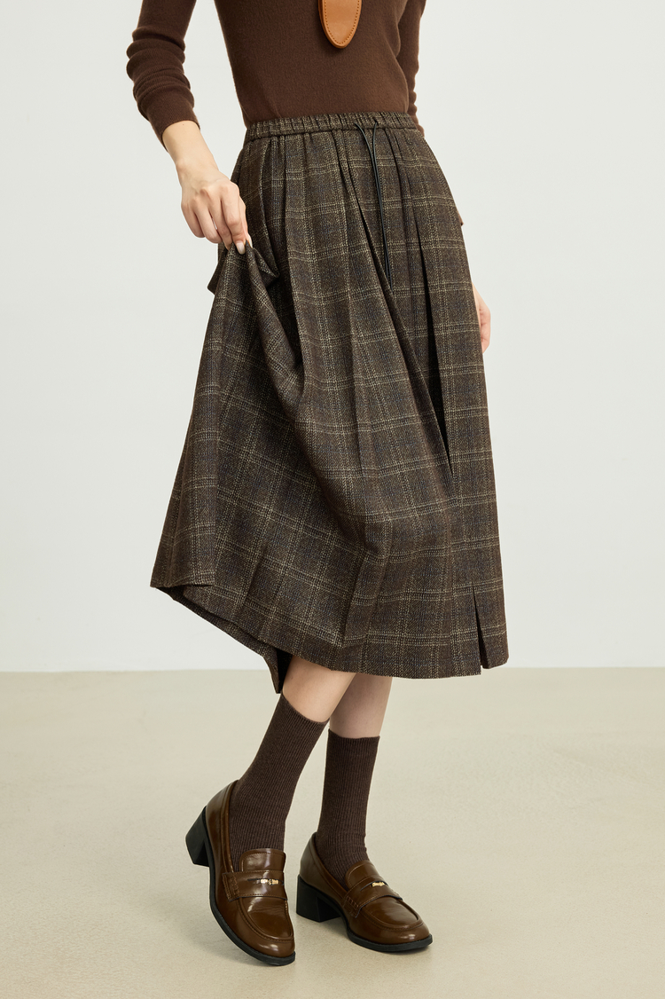 【10/29新品】熙世界复古格纹百褶半身裙女秋冬2025年新款高腰毛呢伞裙中长裙子