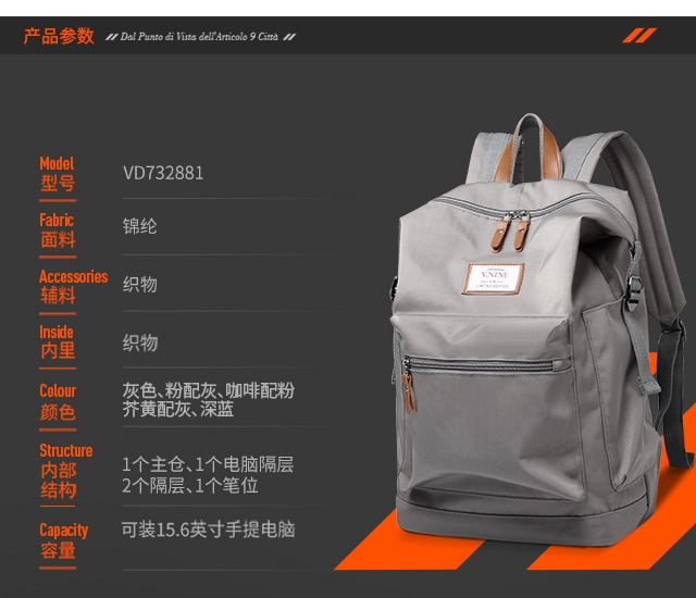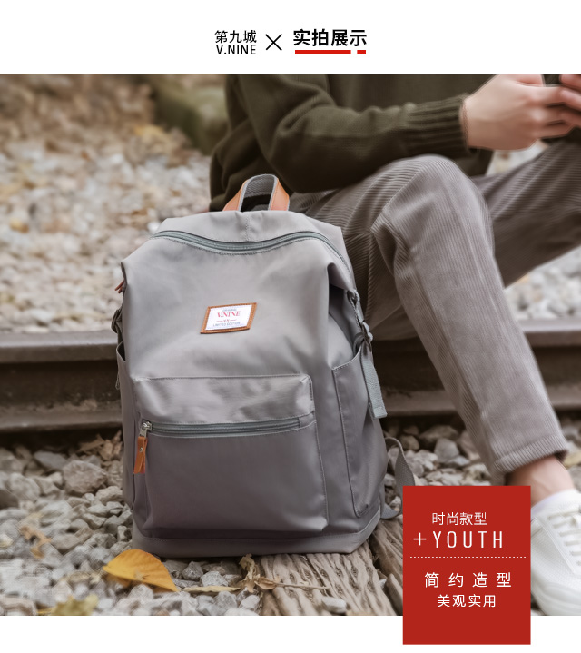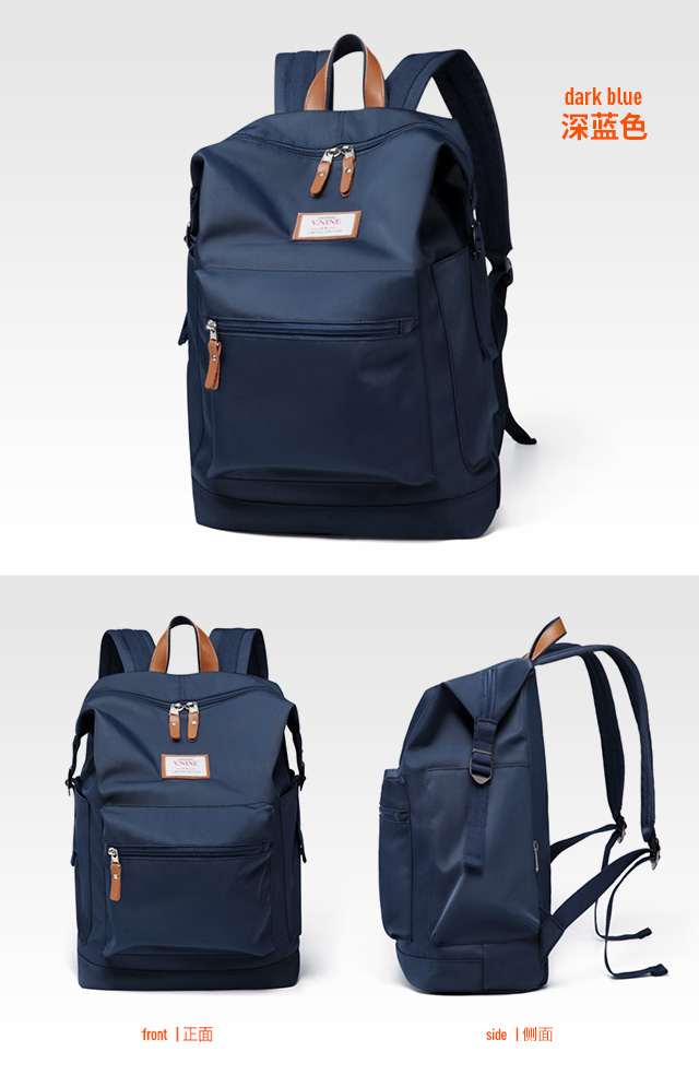 第九城V.NINE 双肩包男防泼水原宿风旅行背包大容量15.6英寸电脑包校园情侣款大中学生书包 VD7BV32881J 深蓝