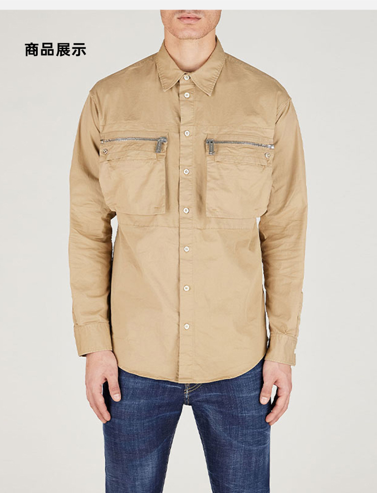 DSQUARED2 男士工装口袋纽扣长袖衬衫 卡其色 S74DM0841 S35175 121
