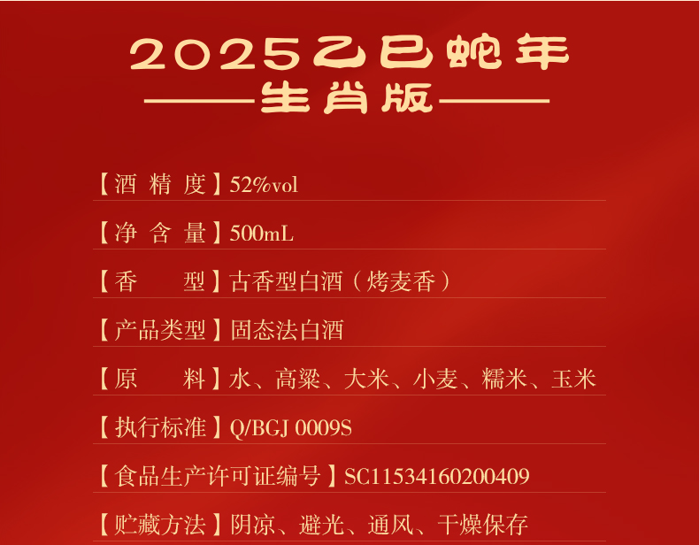 52度500ml古井贡酒年三十-2025蛇年