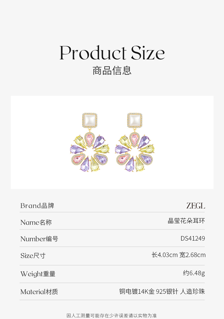 ZEGL设计师秘密花园系列花朵耳环女2023新款爆款耳钉925银针耳饰