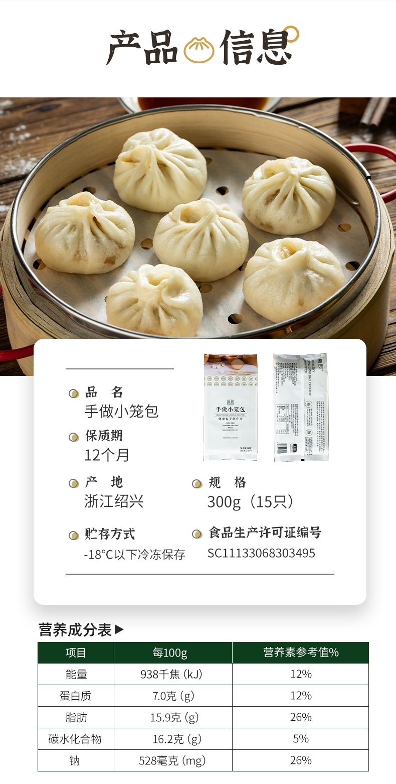【零添加】手做发面小笼包300g/袋(15只)*4袋