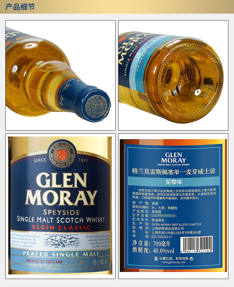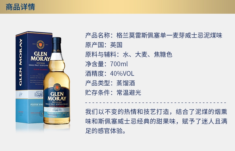 【有税版】格兰莫雷单一麦芽威士忌 泥煤味 700ml 苏格兰